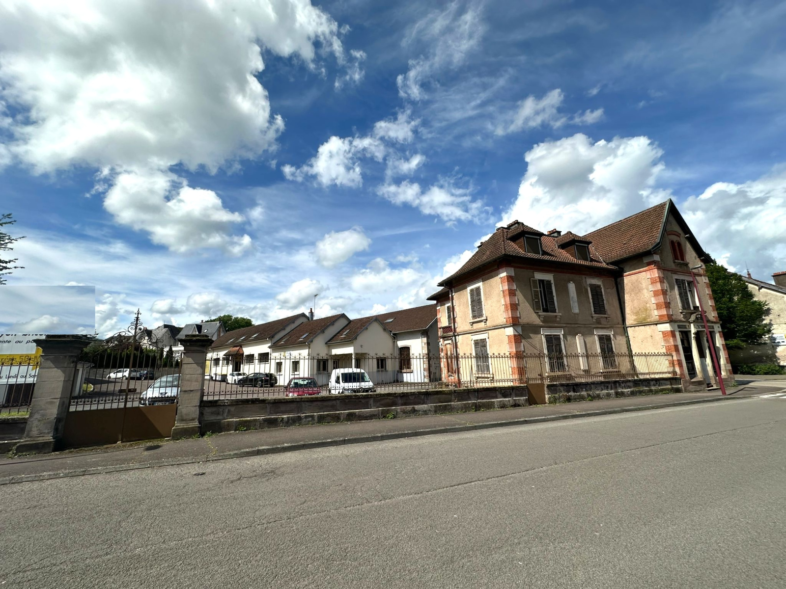 Aurélien vous invite à découvrir cet ensemble immobilier composé d'une belle maison de maître à rénover et ses grands bâtiments de stockage, sur un terrain de 2690 m2 :