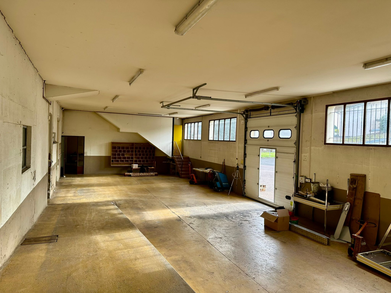 Un 1er bâtiment comprend une entrée (21 m2 env), 2 bureaux (13 et 27 m2 env), 2 wc, magasin (225 m2 env), pièces de stockage (123 m2 et 40 m2 env). grand grenier aménageable (env 400 m2).