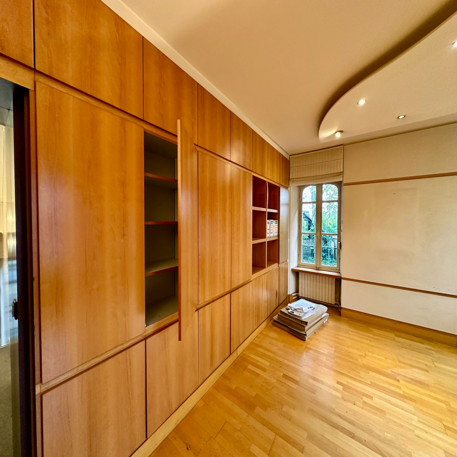 Au rez-de-chaussée (surélevé) : hall d'entrée (13 m2 env), 5 bureaux (12, 13, 14, 15 m2 env) dont 3 avec placards, une autre pièce avec placards (10 m2 env), toilette avec lave-mains.