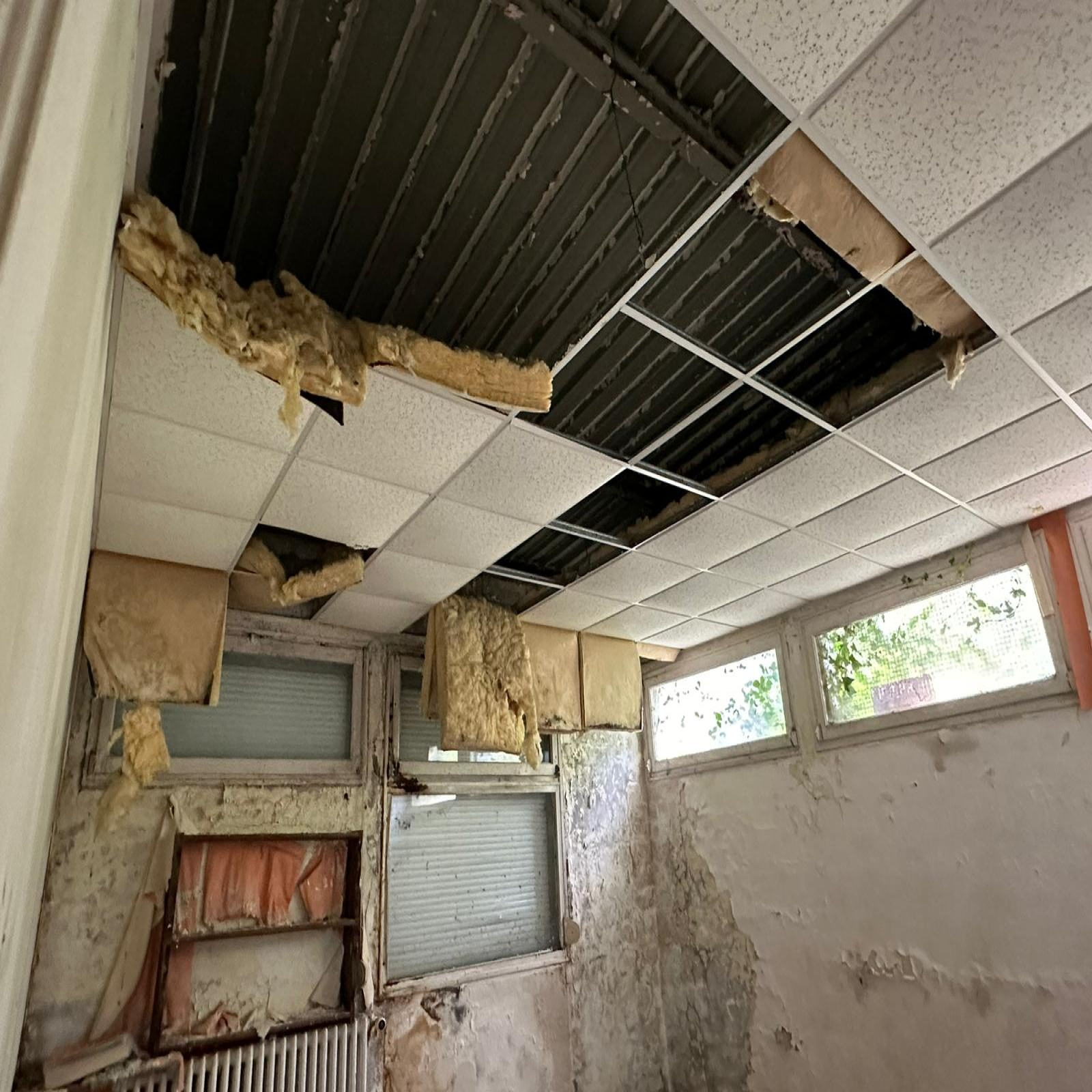 Surface totale de bâtiment en mauvais état 5700 m2, aujourd'hui seulement 800 m2 sont hors d'eau, le reste est à démolir.