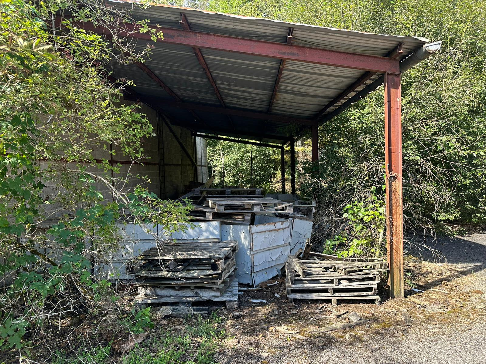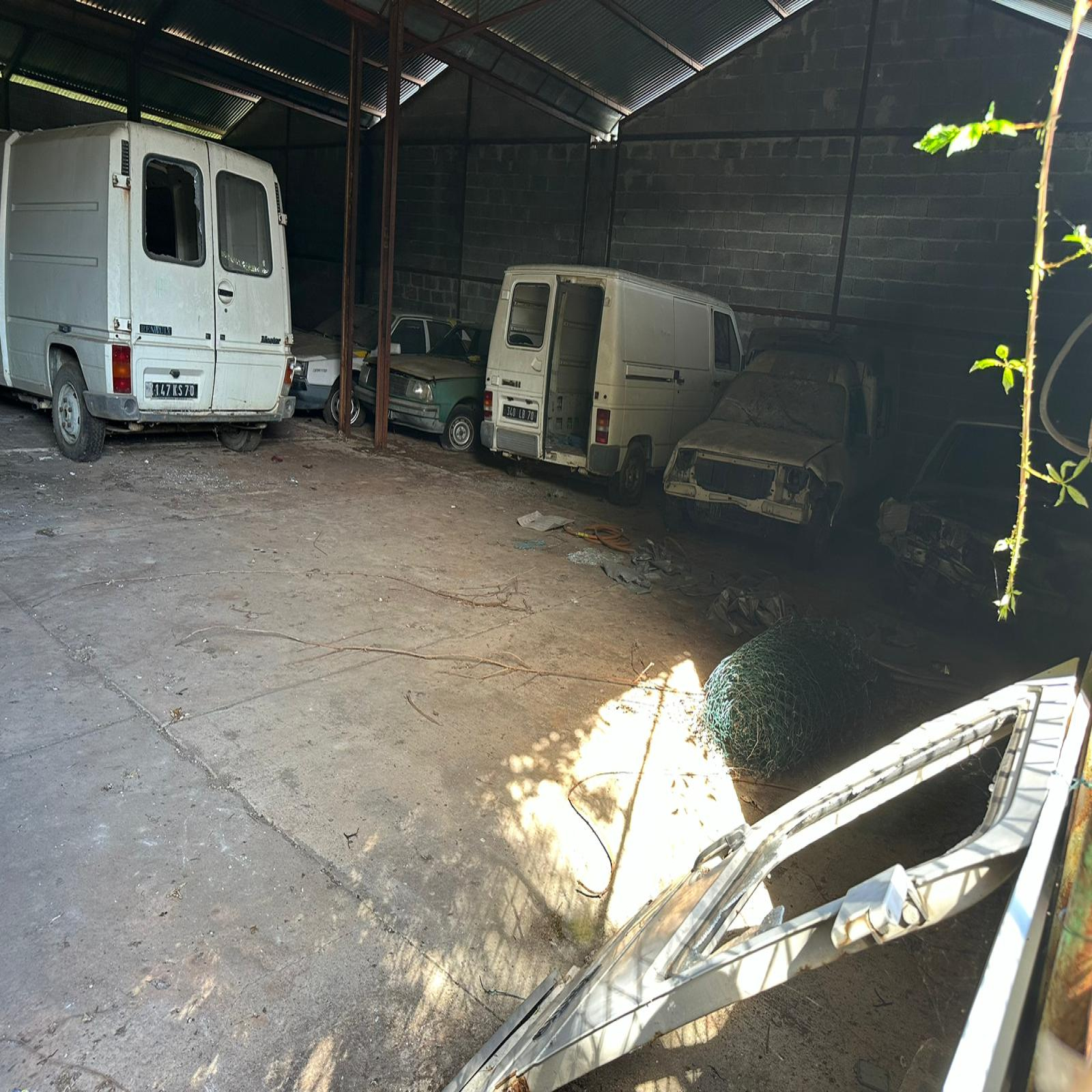 Bâtiment industriel (ancien garage automobile), bureaux, sanitaires, ancienne station service, station de peinture.