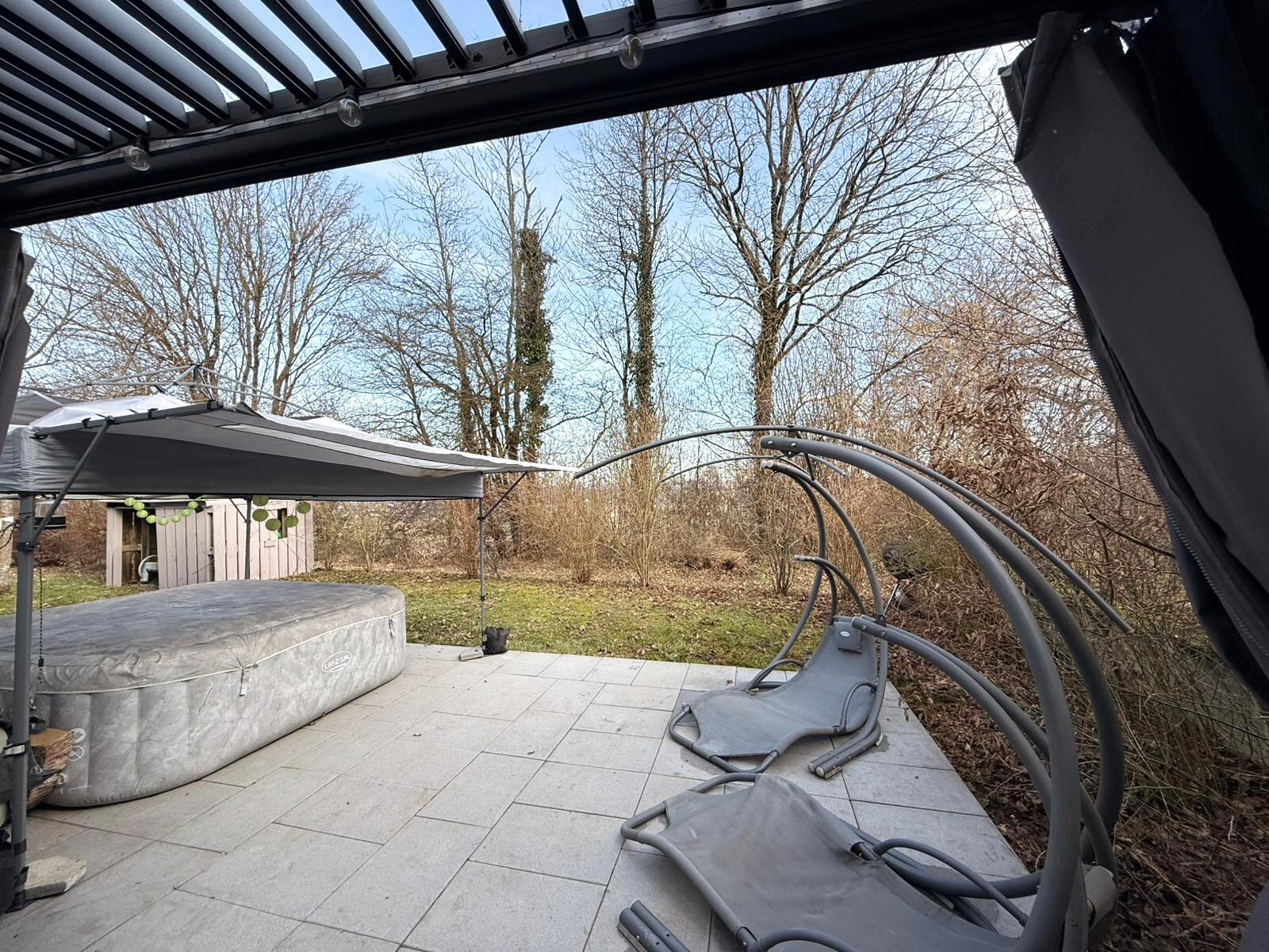 Au rez-de-chaussée : entrée sur dégagement (9 m2 env), salle à manger / salon ouvert sur cuisine équipée (30 m2 env) avec accès terrasse (40 m2 env) avec pergola bioclimatique, une chambre (9 m2 env), salle d'eau (4 m2 env), wc, buanderie (10 m2 env).