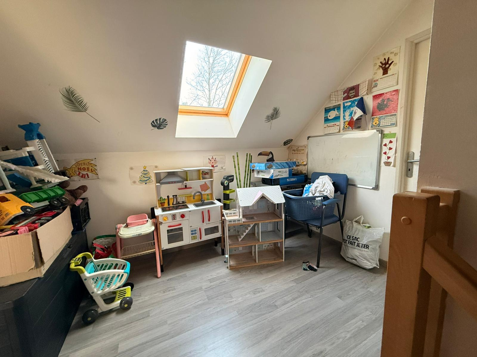 A l'étage : mezzanine (4 m2 env), 2 chambres (12 m2 env), débarras (3 m3 env).