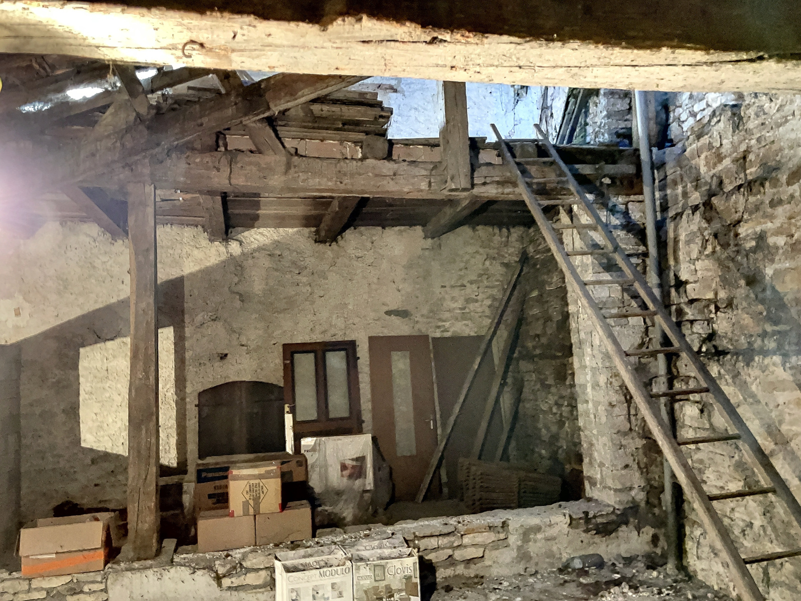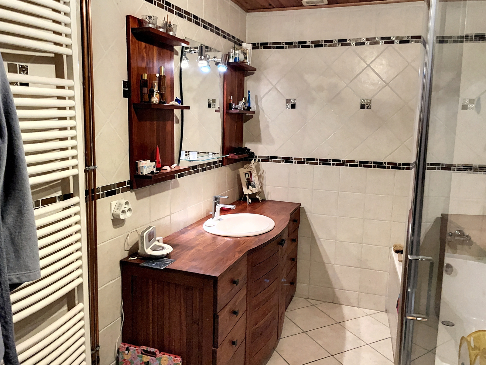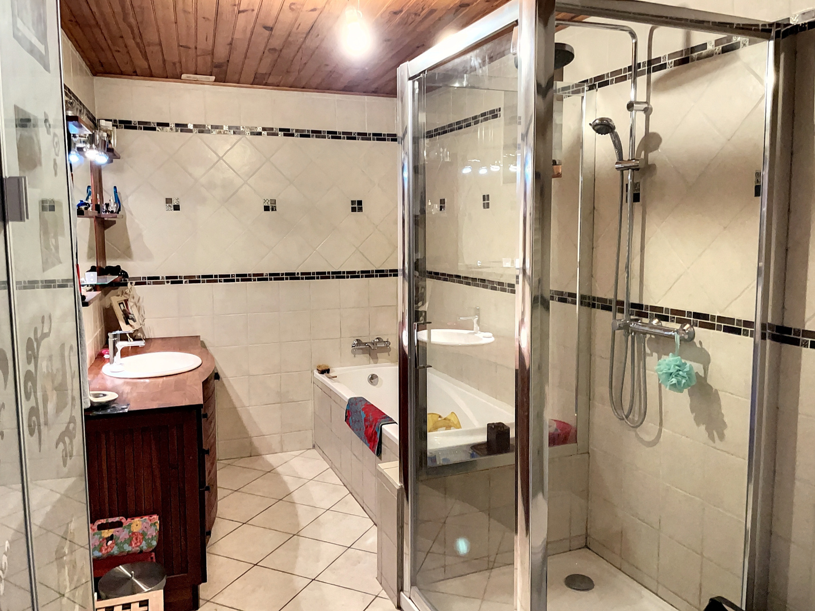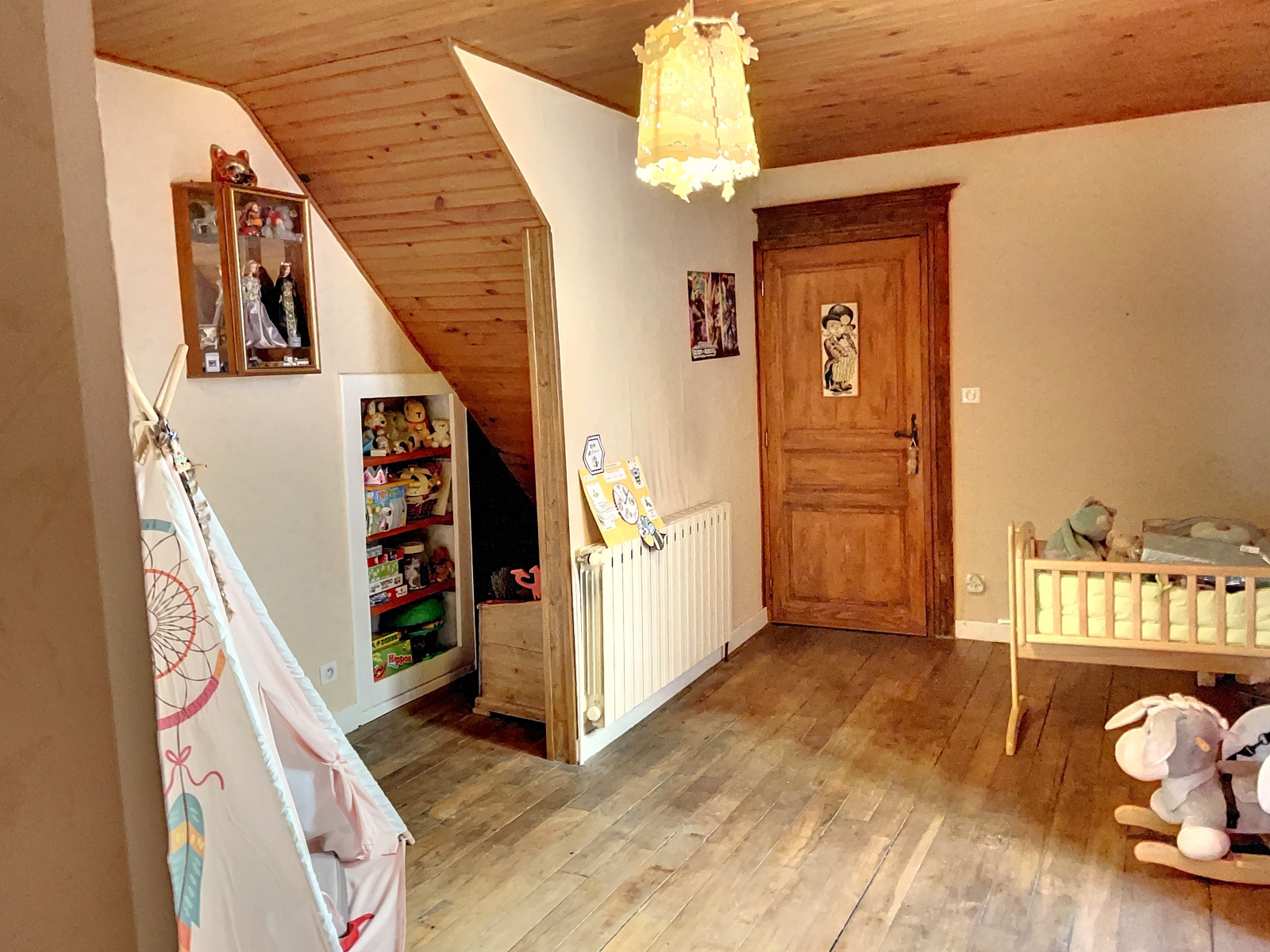 A l'étage : dégagement, 2 chambres (17 et 23 m2 env), salle de bains avec w.c (7 m2 env), une pièce (22 m2 env), greniers.