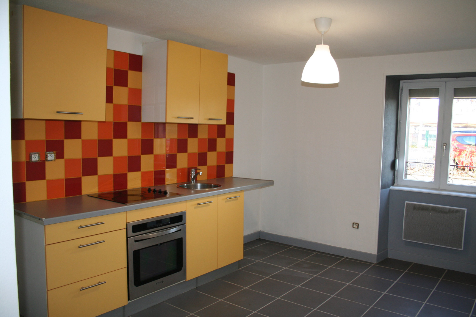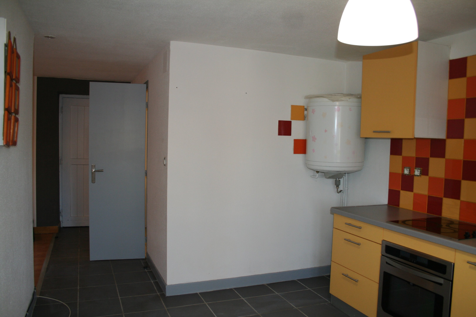 Cuisine équipée ouverte sur une pièce, salle d'eau avec wc.