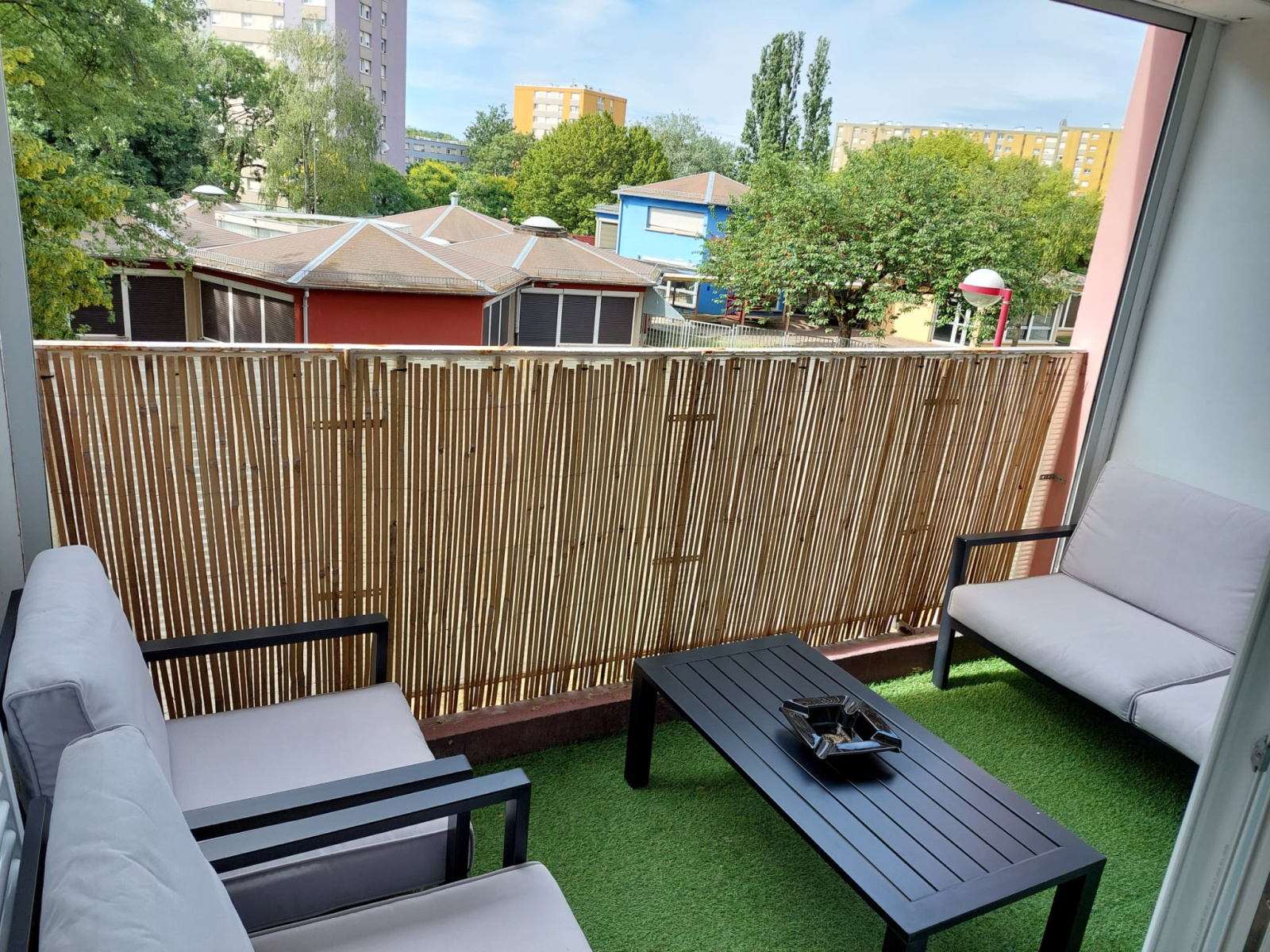 Entrée (7 m2 env) avec placard, cuisine équipée (10 m2 env), salle à manger / salon (19 m2 env) avec accès balcon / terrasse (4,9 m2 env), 2 chambres (10 et 11 m2 env), salle de bains (4 m2 env), wc.