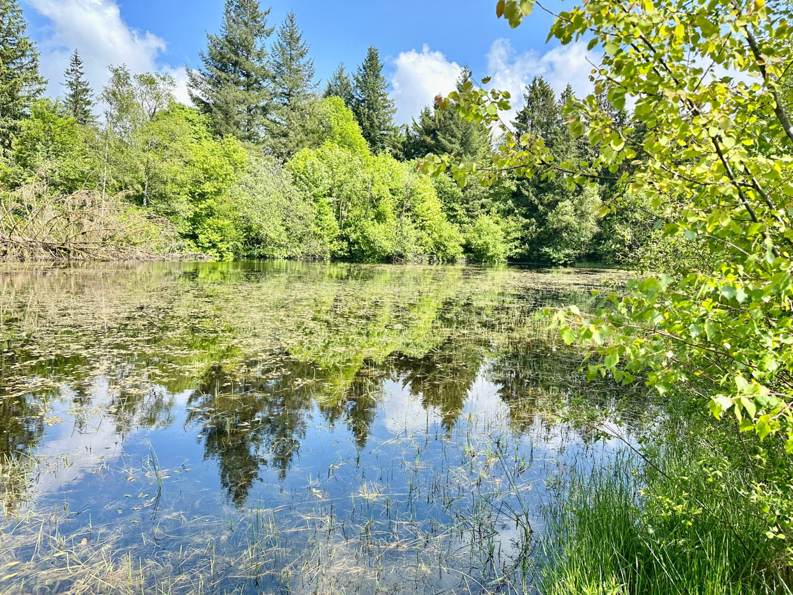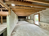 Au 1er étage : plateau à aménager d’environ 150 m² avec deux trémies, coin véranda avec jolie vue sur l’étang et les prairies.