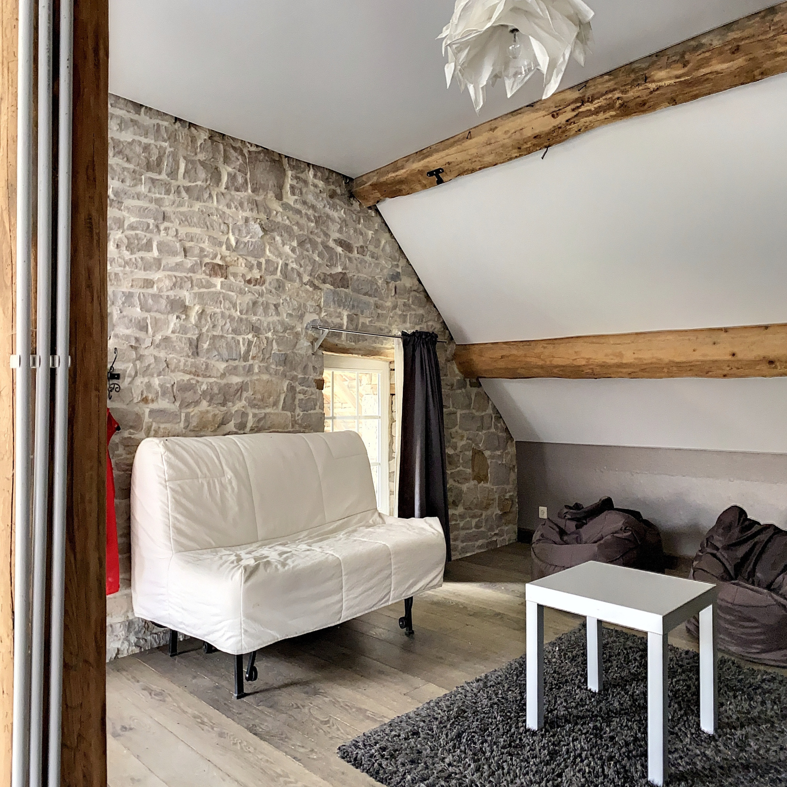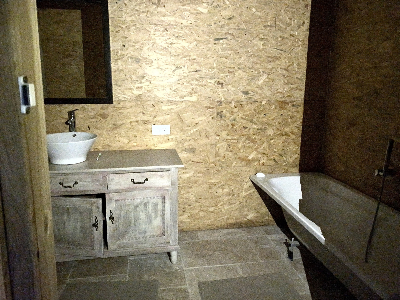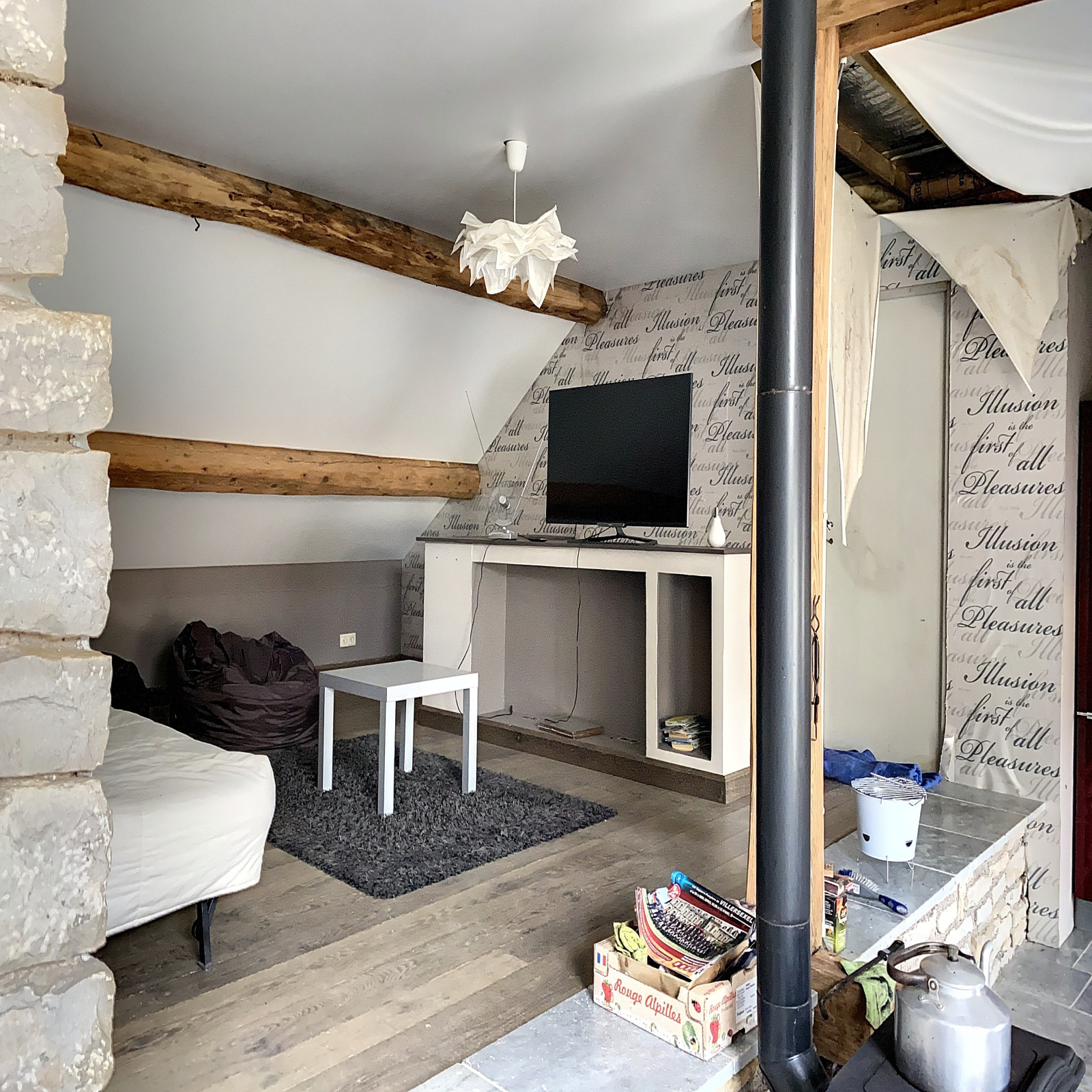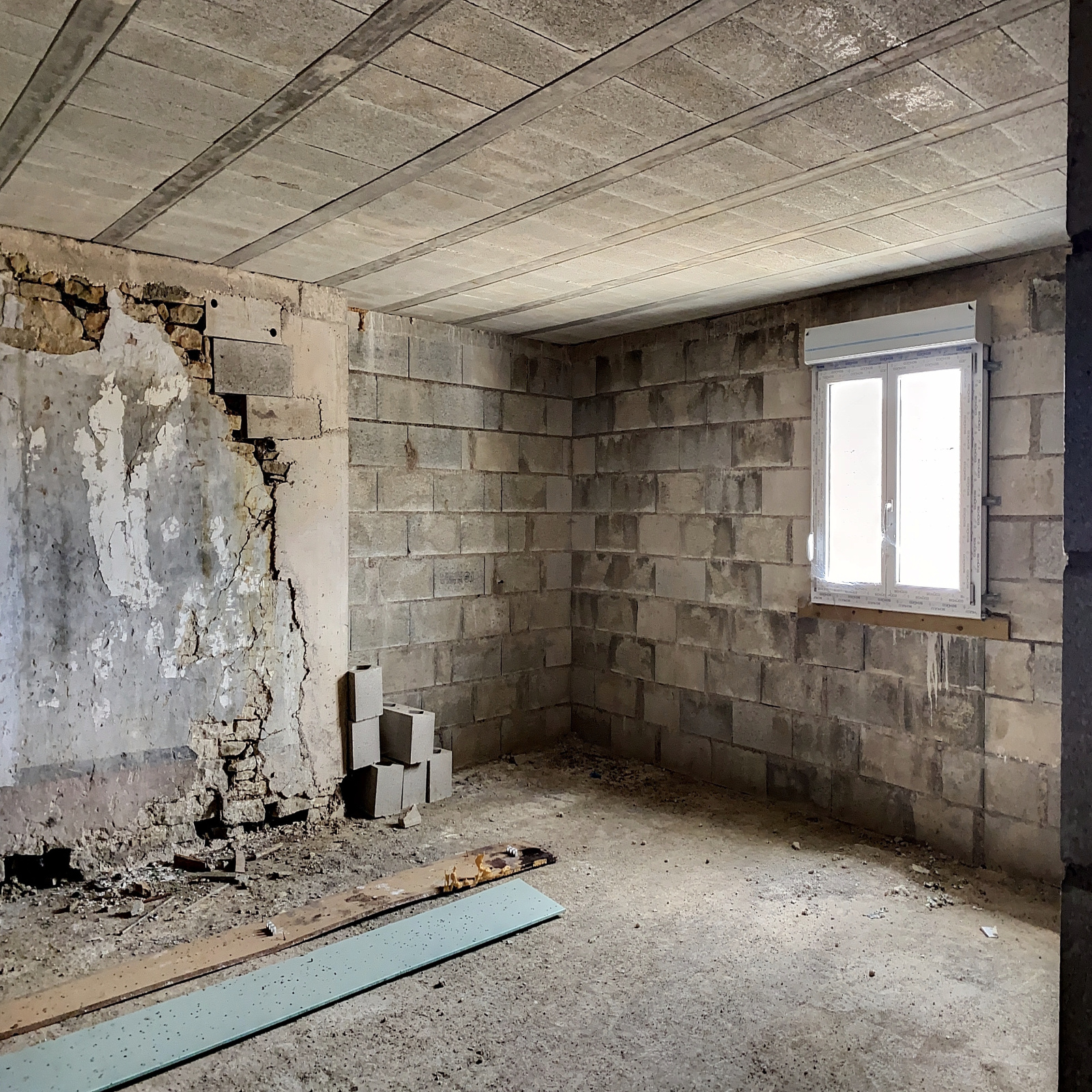 Niveau -1 : une chambre, salle de bains à finir, wc, 2 grandes pièces à aménager.