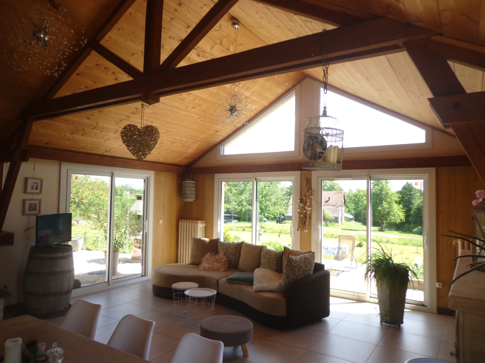 Notre agent Aurélien Cholley vous invite à découvrir en exclusivité cette charmante maison semi plain-pied, ossature bois, sur son grand terrain de 5559 m², elle comprend :