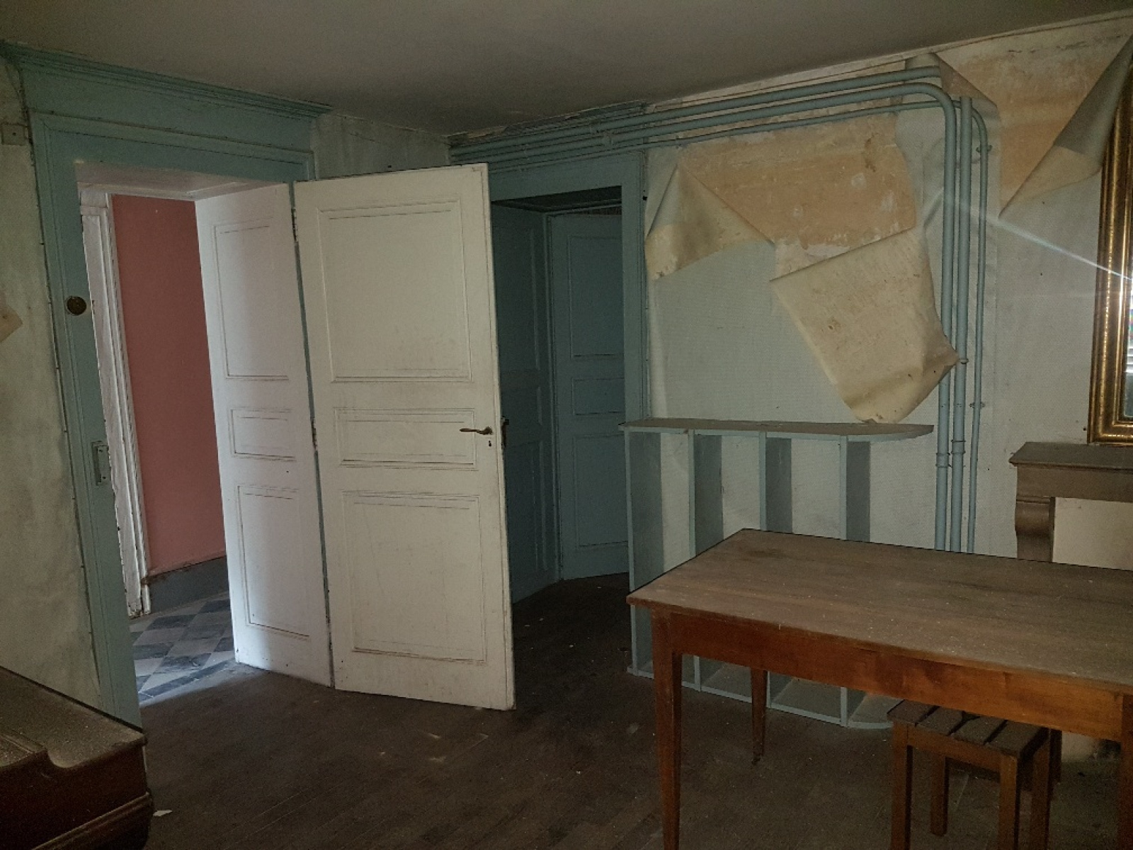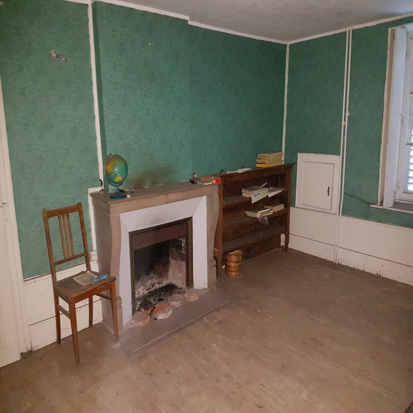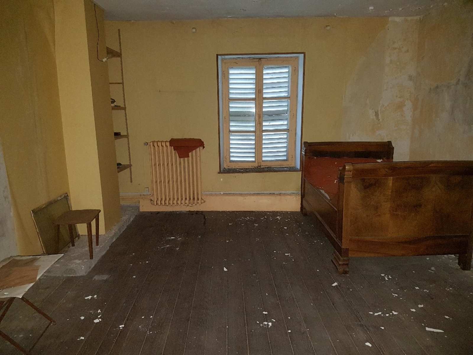 Maison de village en pierres à terminer de renover, mitoyenne d'un côté, sur terrain de 9 ares 78 centiares env comprenant : Au rez-de-chaussée : cuisine, 4 pièces, salle de bains/ w.c. A l'étage : 5 pièces. Cave, garage, bûcher. grenier aménageable. Sur terrain de 978 m² environ.