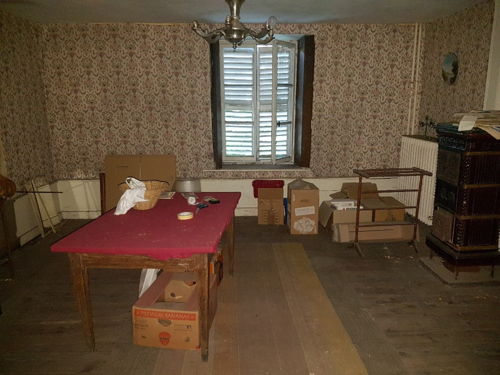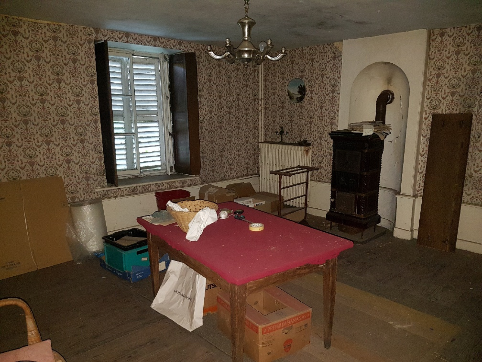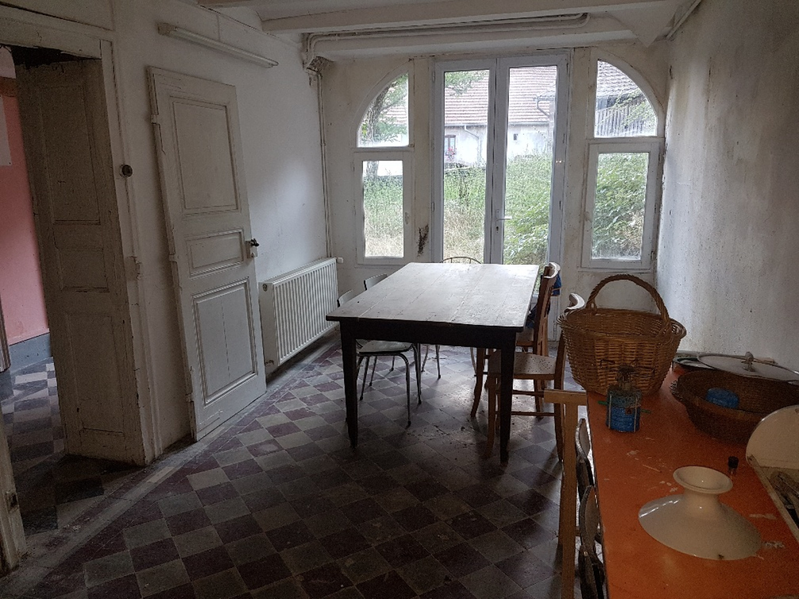 Maison de village en pierres à terminer de renover, mitoyenne d'un côté, sur terrain de 9 ares 78 centiares env comprenant : Au rez-de-chaussée : cuisine, 4 pièces, salle de bains/ w.c. A l'étage : 5 pièces. Cave, garage, bûcher. grenier aménageable. Sur terrain de 978 m² environ.