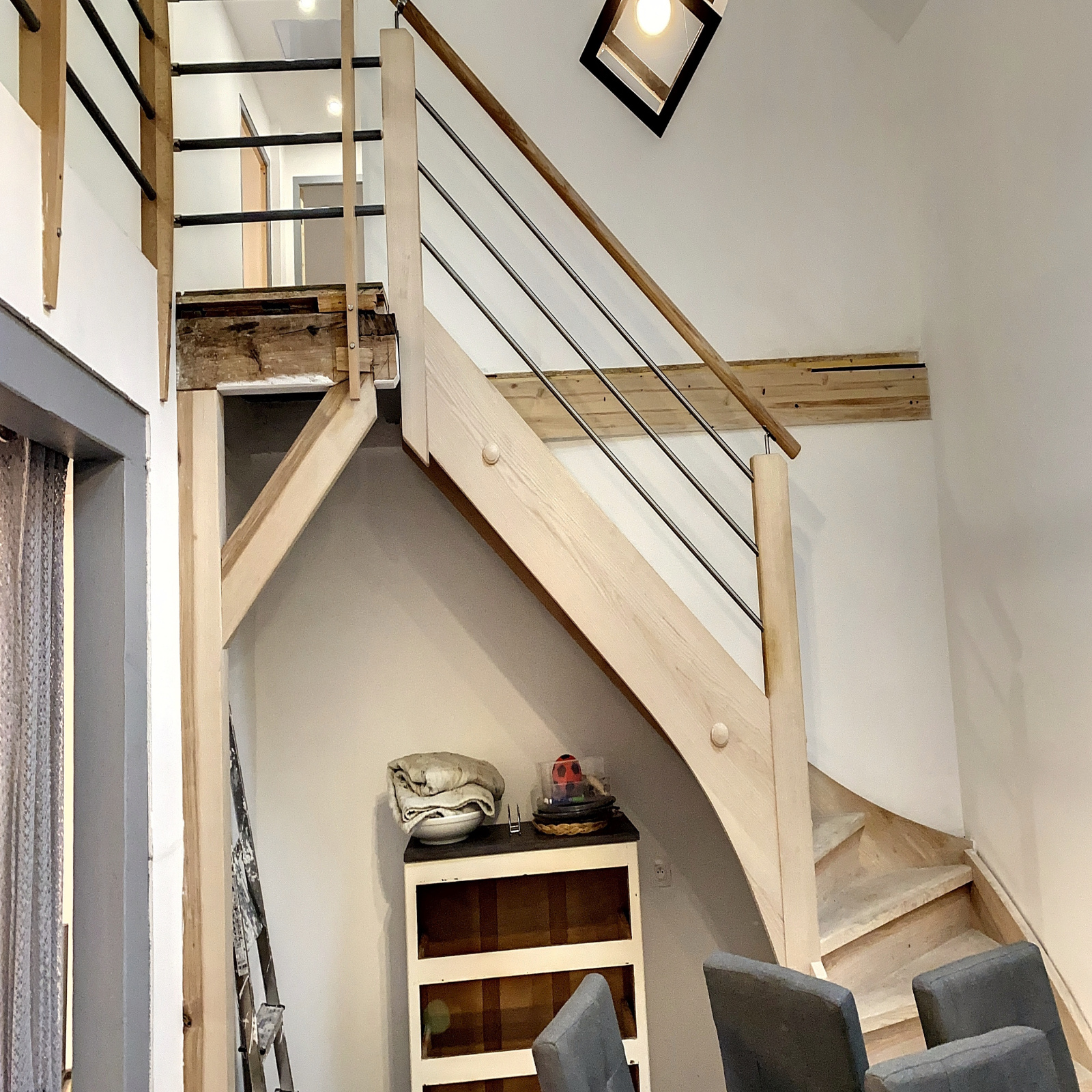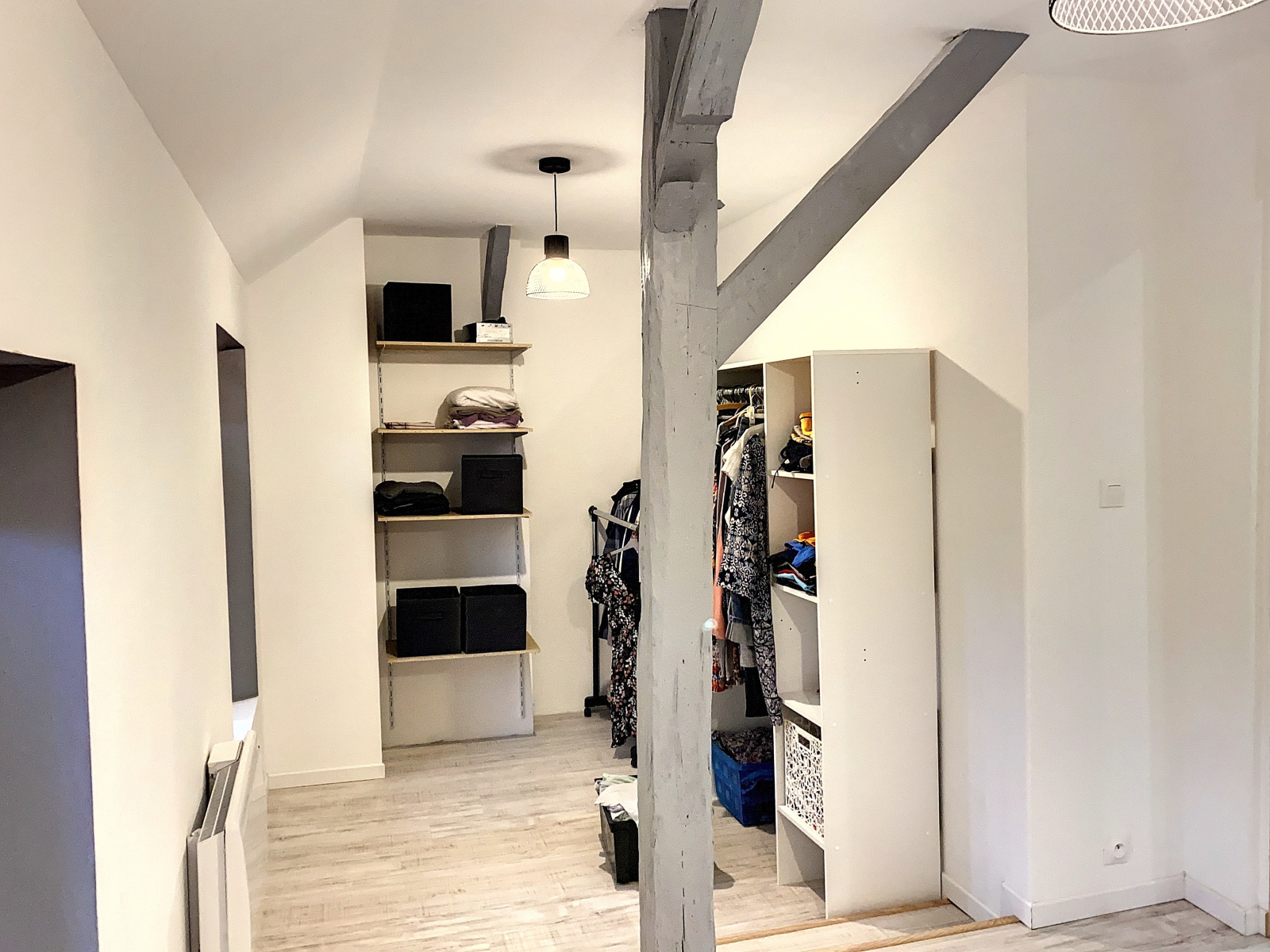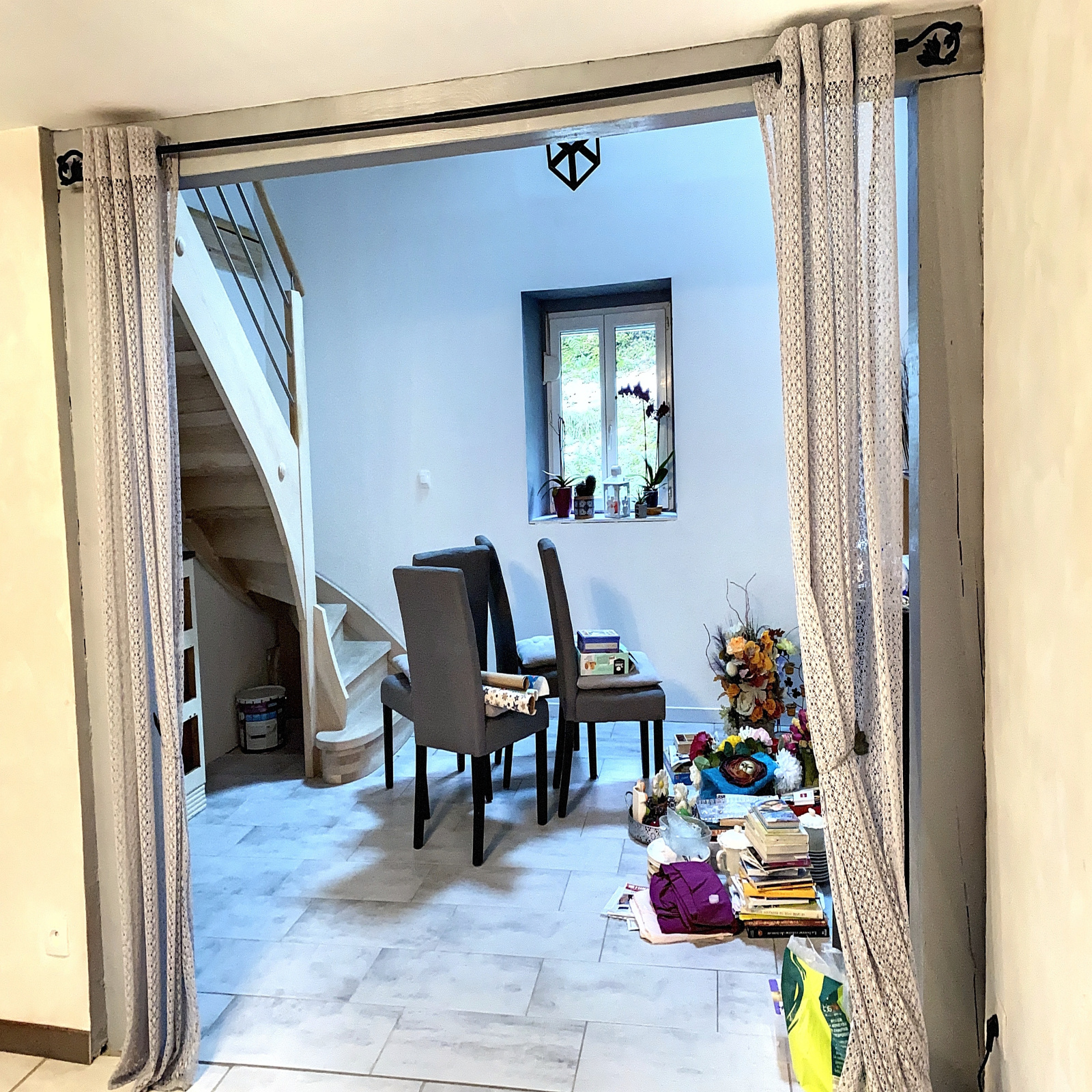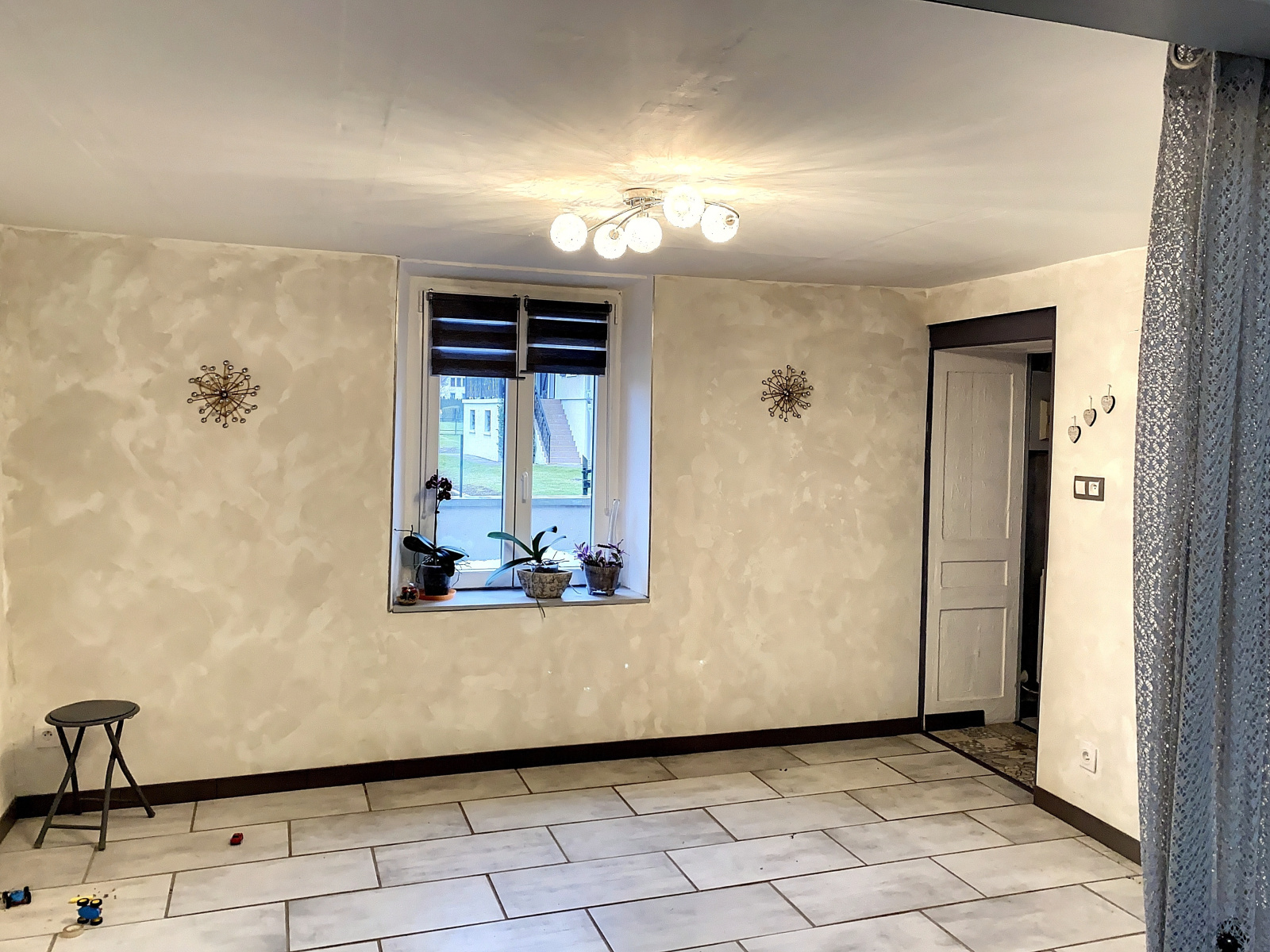 Au rez-de-chaussée : une entrée, cuisine aménagée, salon/salle à manger (possibilité poêle à pellets), salle d'eau, wc.
