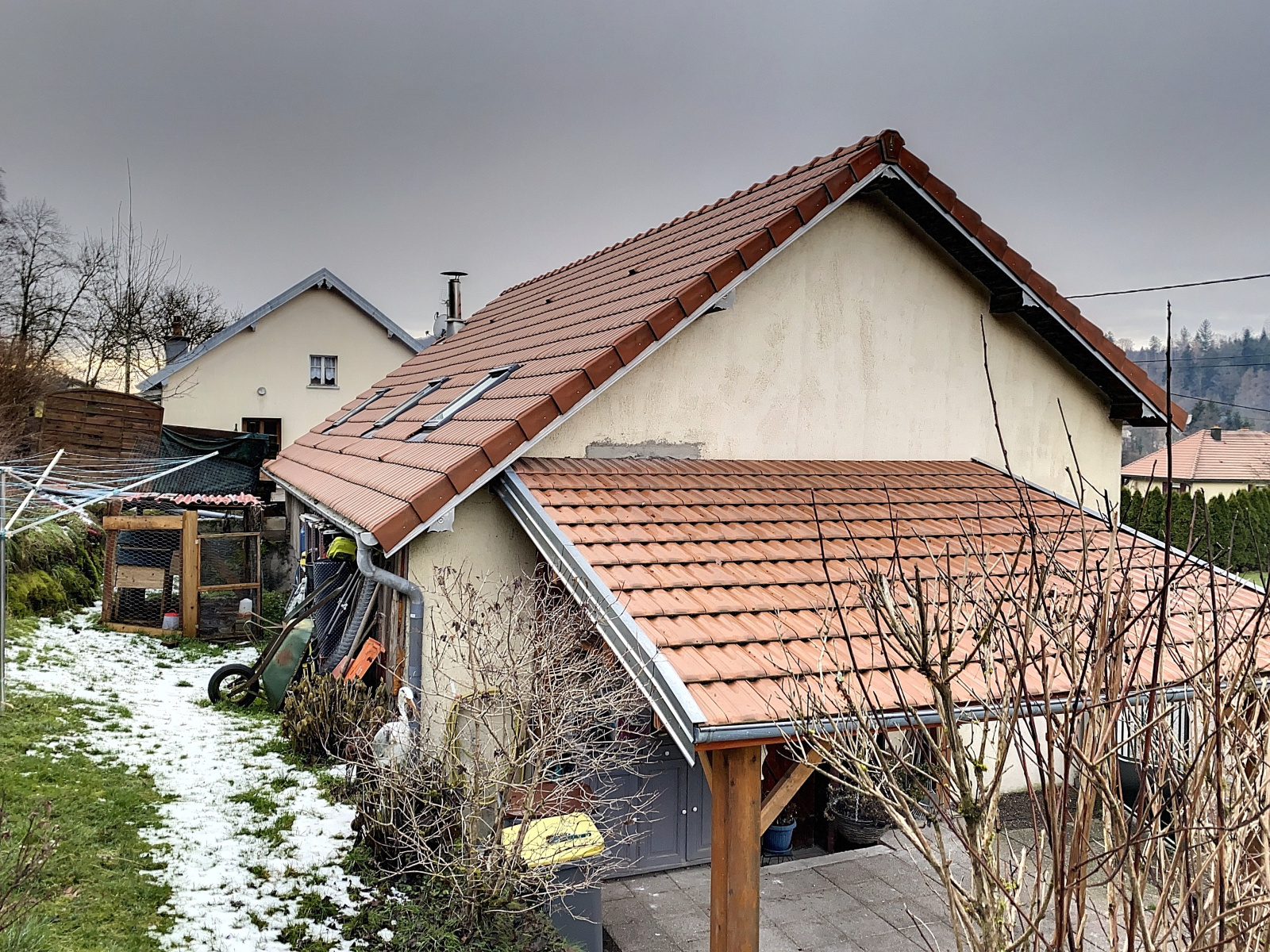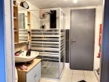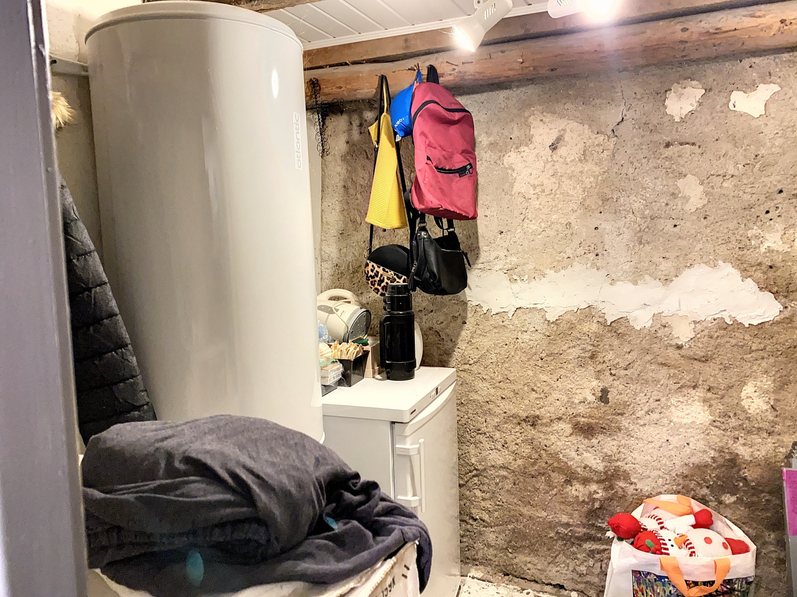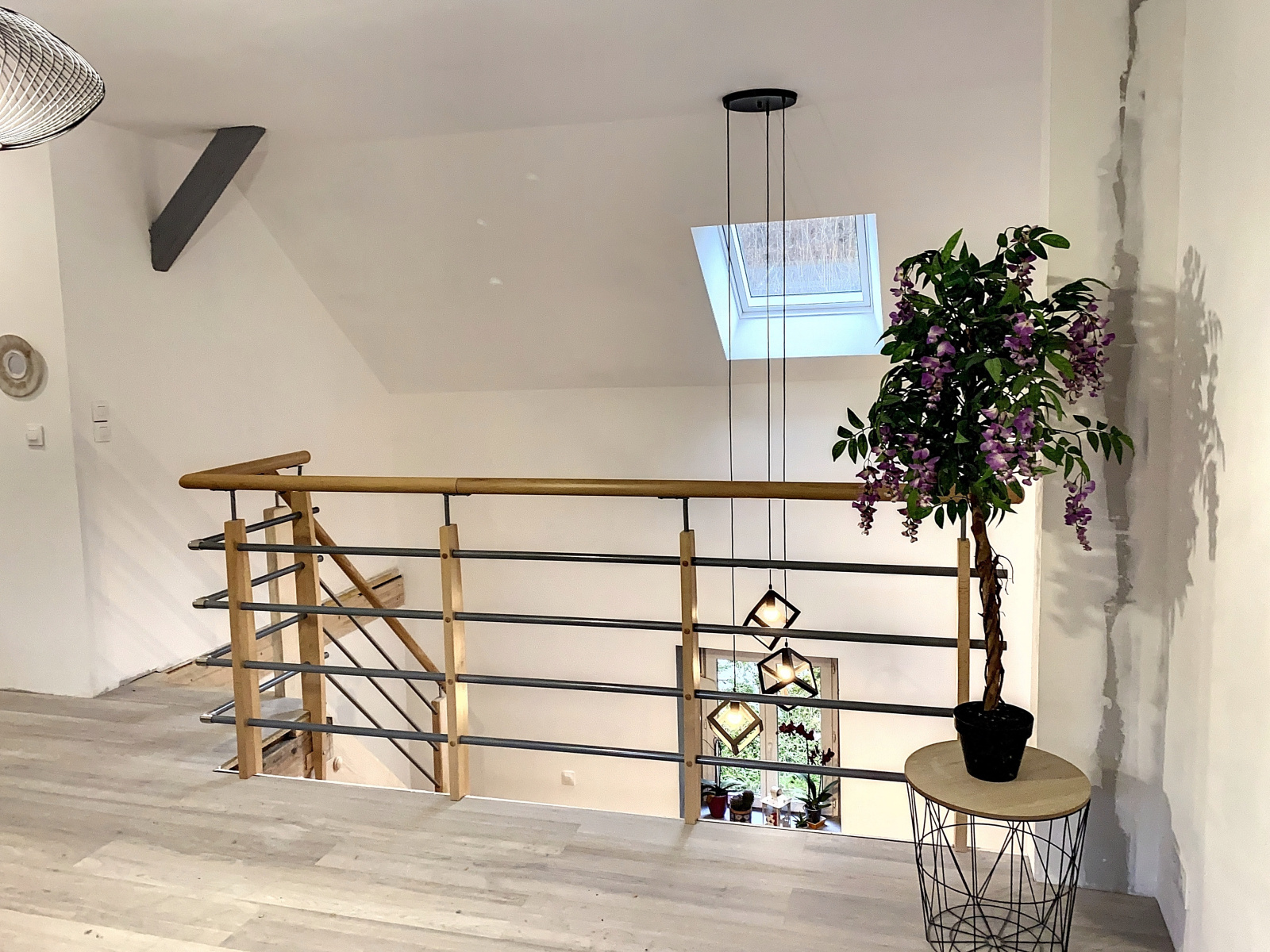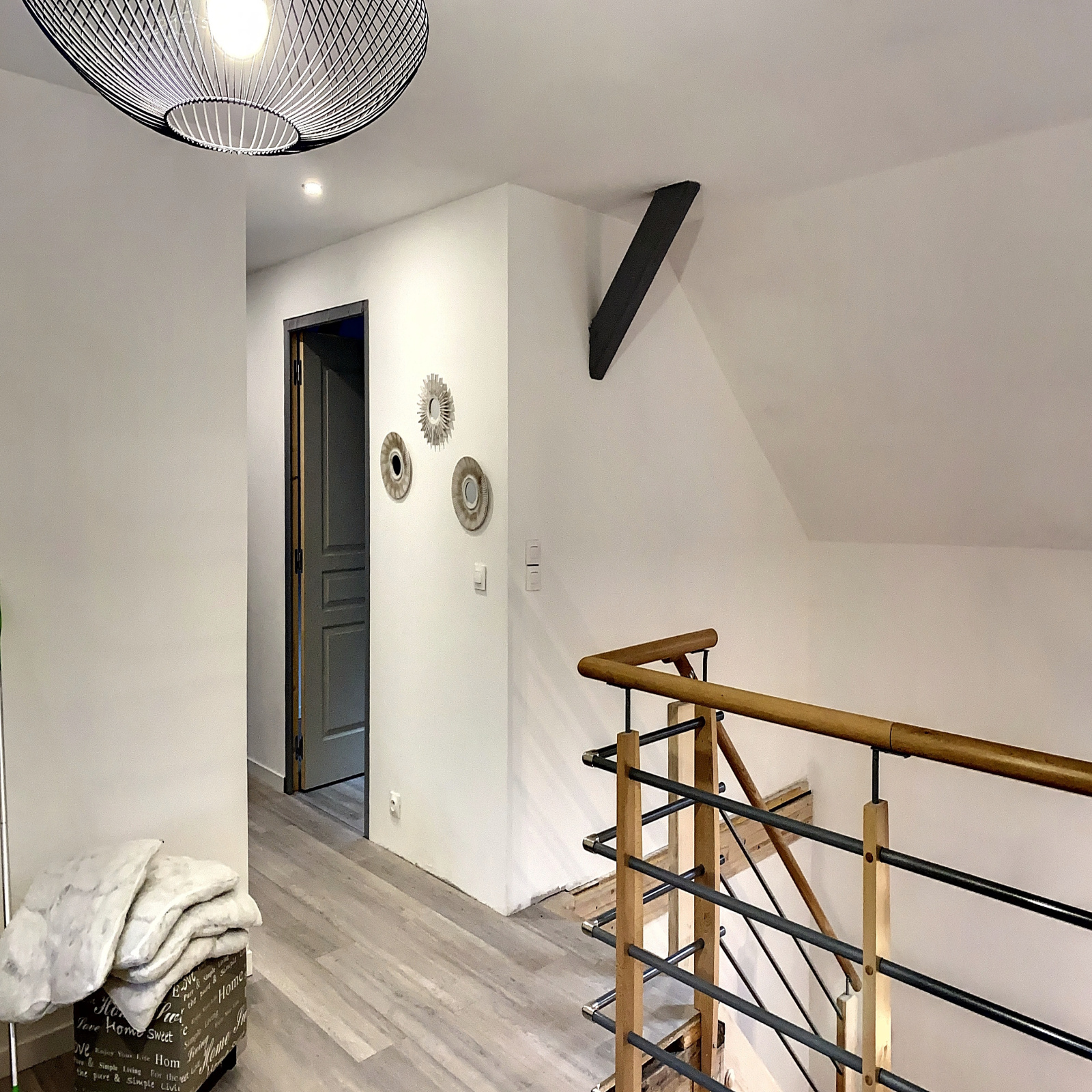 Au rez-de-chaussée : une entrée, cuisine aménagée, salon/salle à manger (possibilité poêle à pellets), salle d'eau, wc.