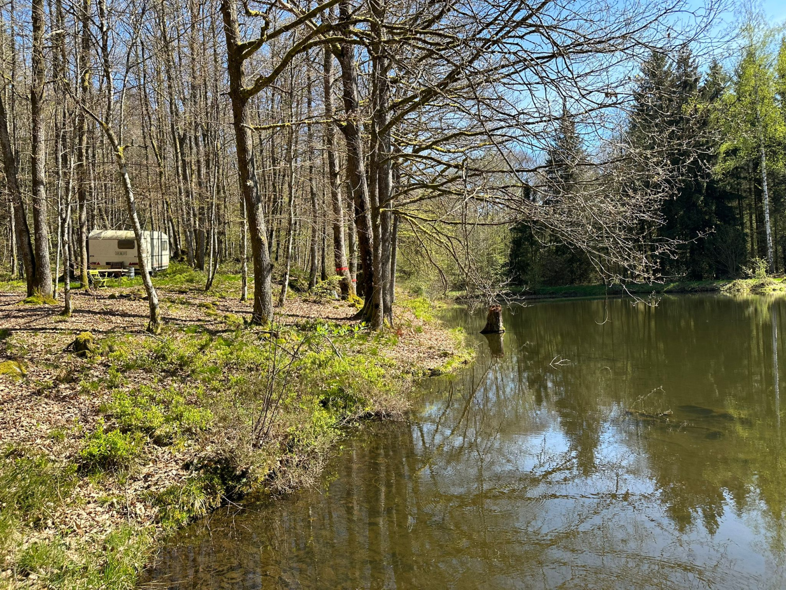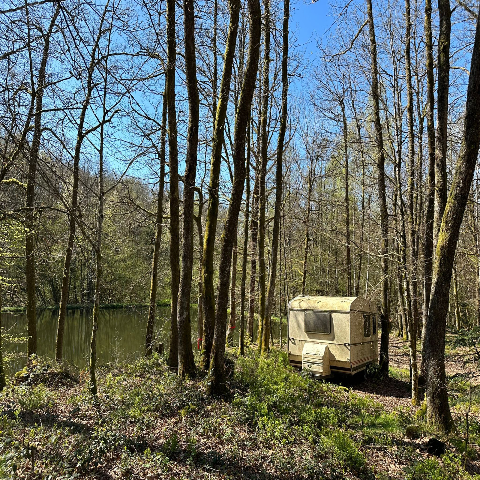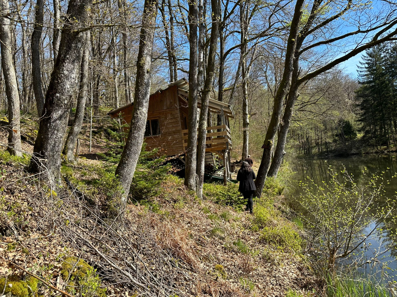 Abri de pêche surplombant un des étangs (pas d'eau courante, pas d'électricité)