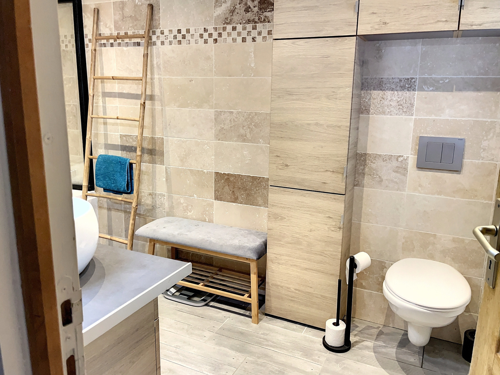 Au rez-de-chaussée : entrée (4,5 m2 env), cuisine avec cheminée en pierre (17 m2 env), salle à manger (22 m2 env), wc, cellier (5 m2 env), chaufferie / buanderie (5 m2 env), chaufferie/atelier (25 m2 env).