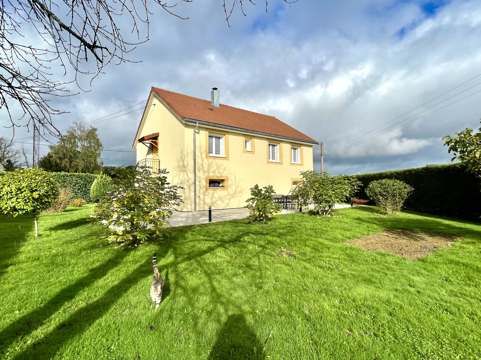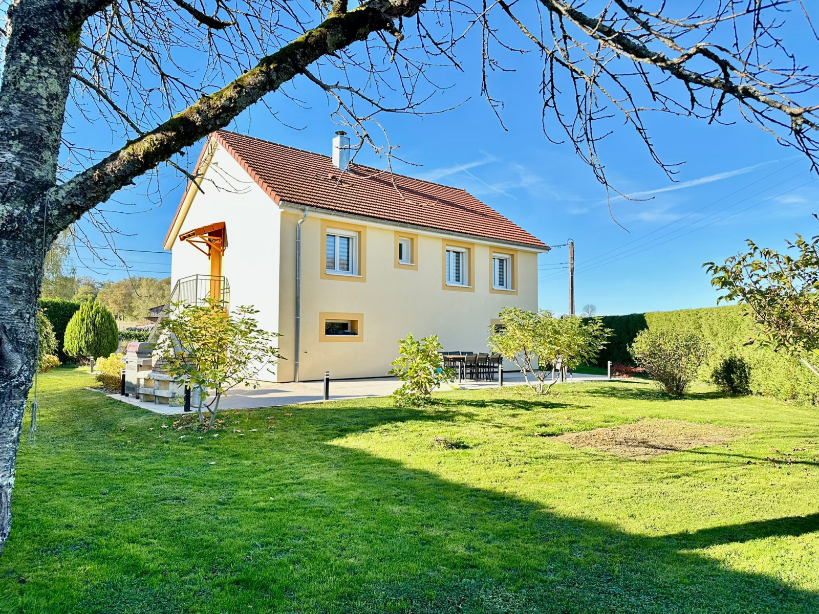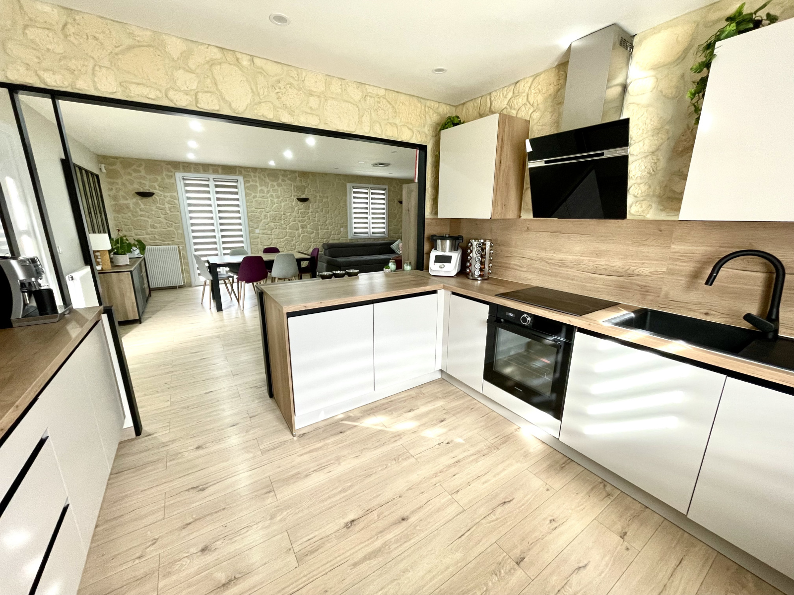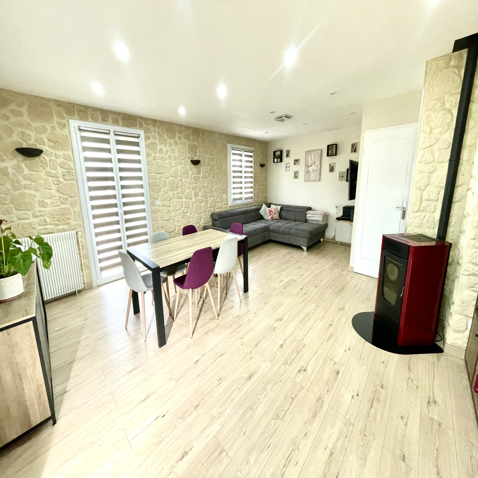 Solène est heureuse de vous présenter en exclusivité cette maison sur sous-sol, entièrement rénovée, sur son terrain de 1168 m2 de terrain comprenant :