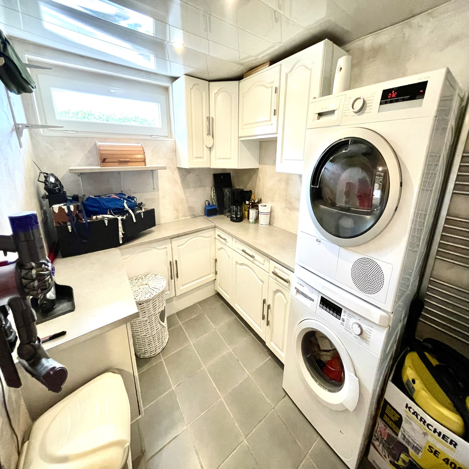 Au sous-sol : garage, chaufferie, cave, buanderie avec douche.