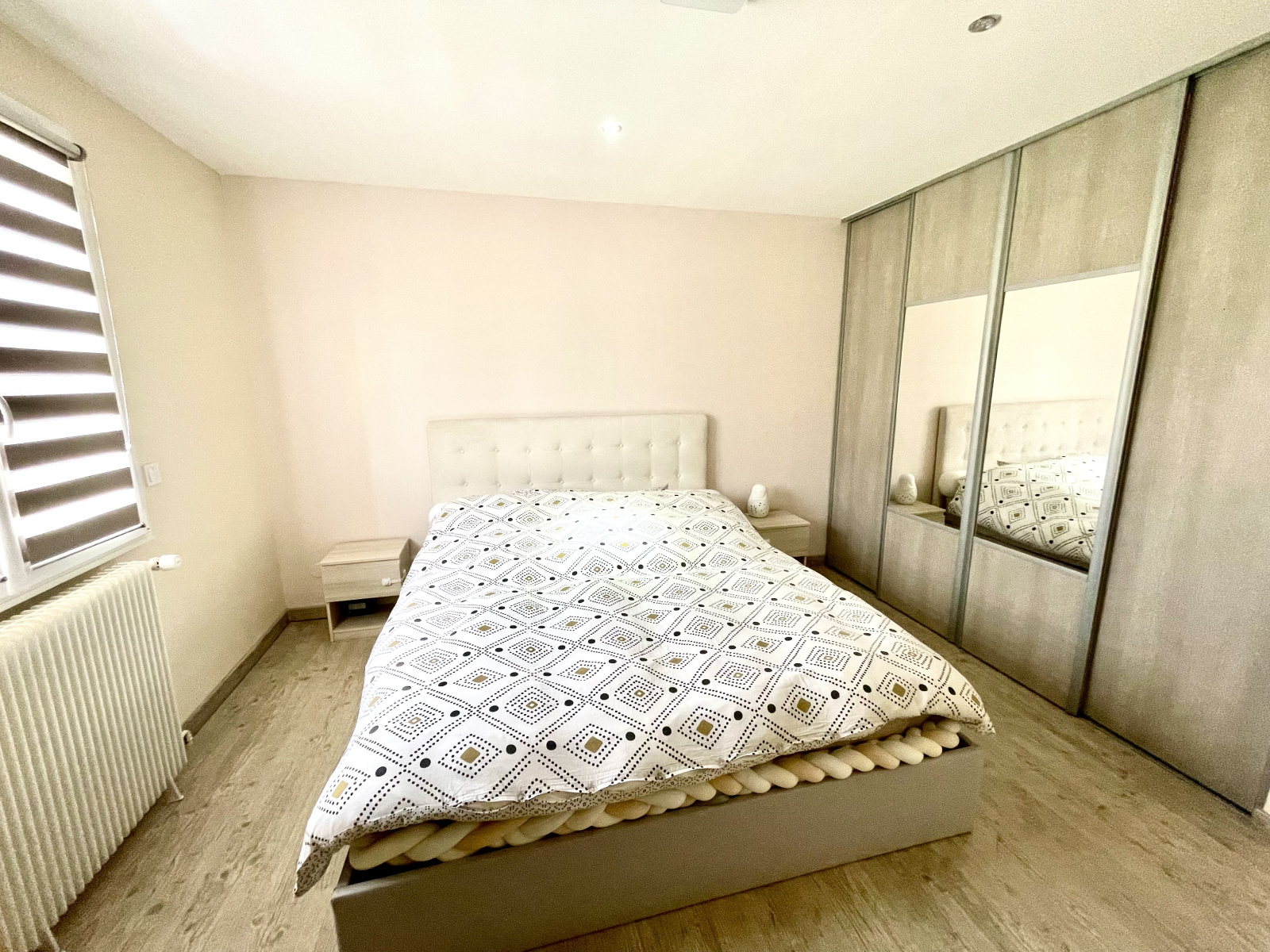 Au niveau de vie : entrée dans salon/séjour avec poêle à pellets ouvert sur cuisine équipée avec accès balcon, 2 chambres avec placards, salle d'eau, w.c.