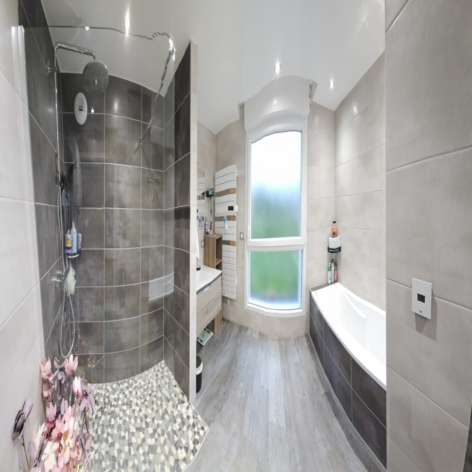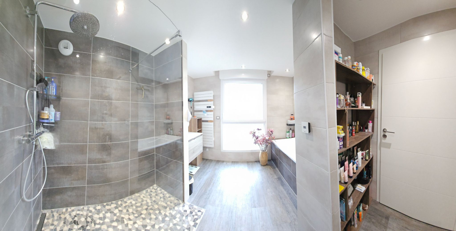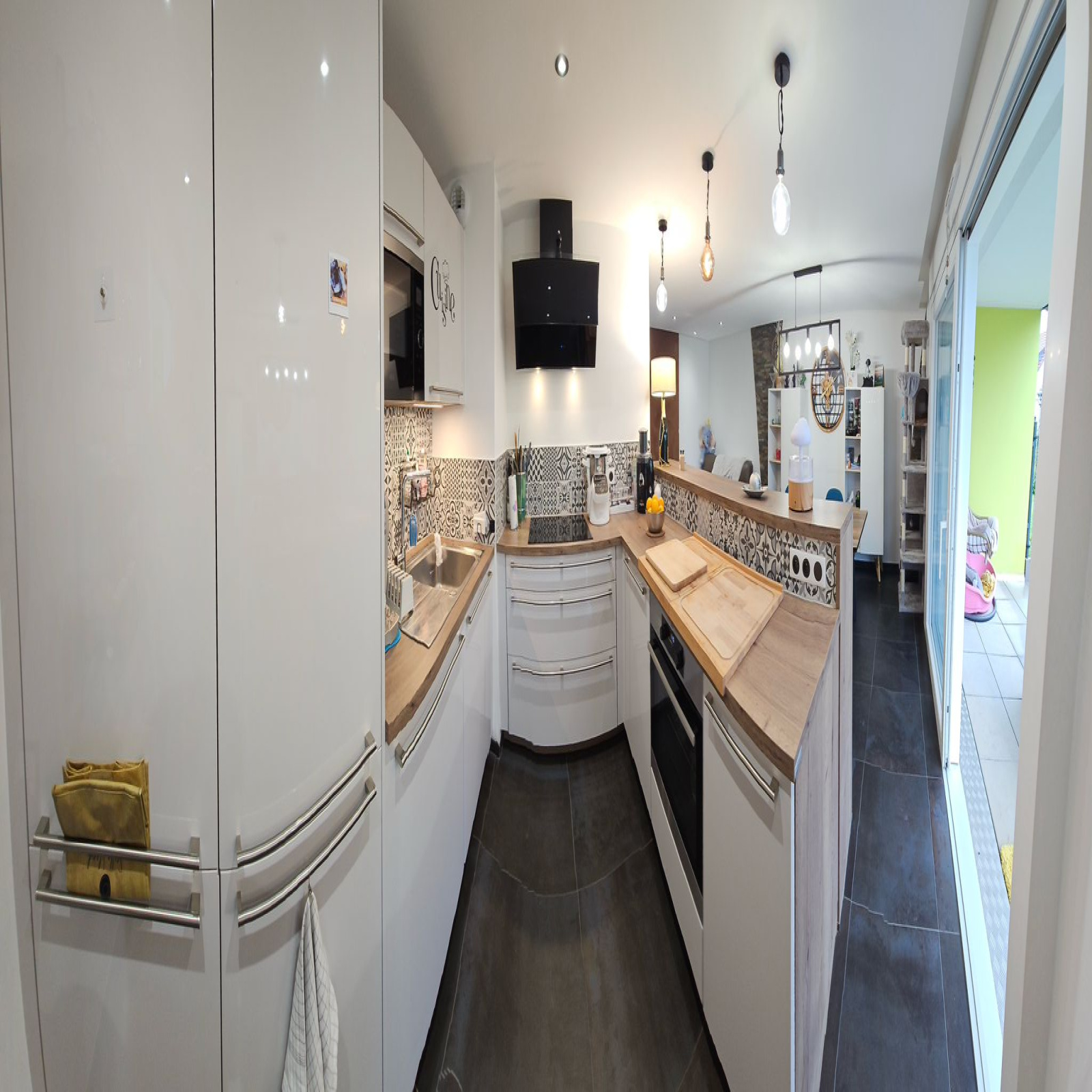 Un hall qui donne sur un salon/salle à manger ouvert sur une grande cuisine de qualité entièrement équipée, un dégagement type cellier, une suite parentale avec dressing et une salle de bain, une grande chambre avec placard de haute qualité, une salle d’eau avec buanderie, WC.