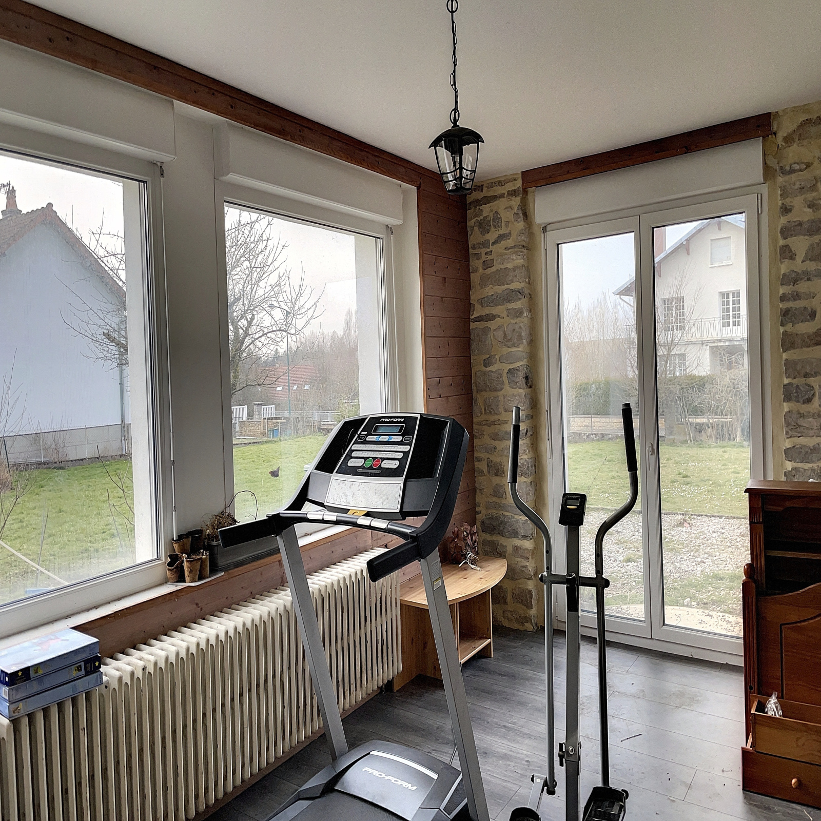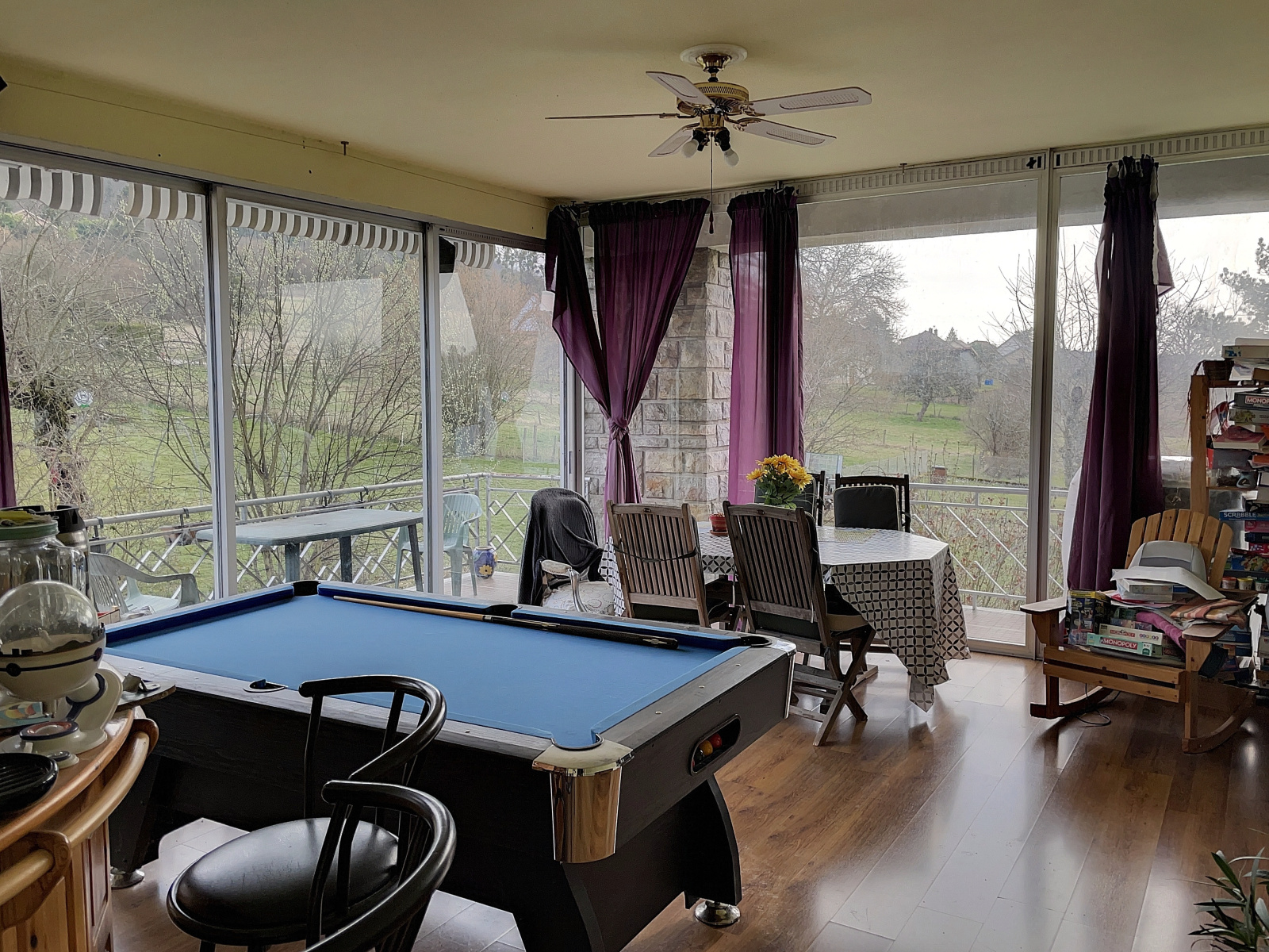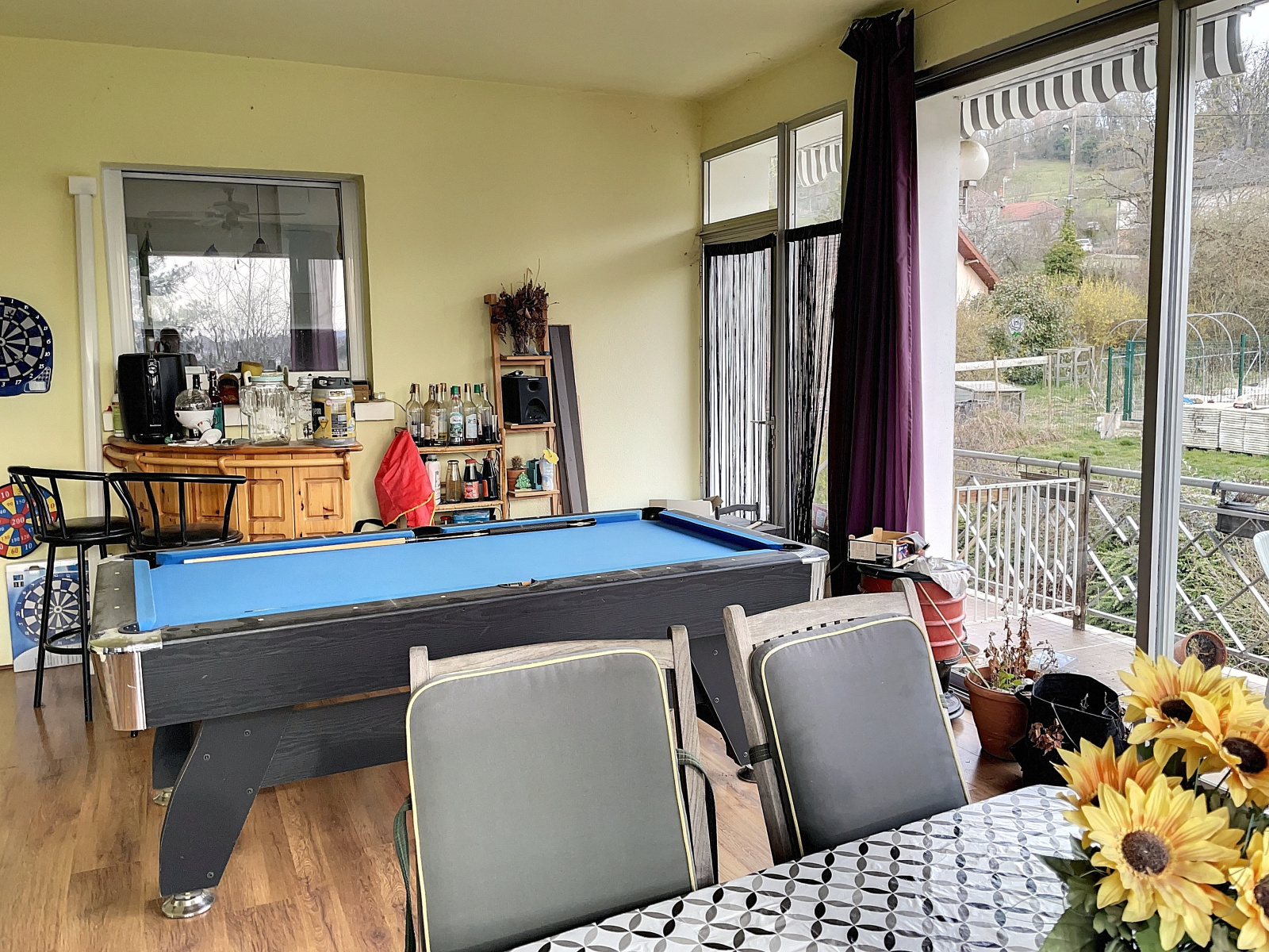 Au 1er étage : entrée sur cage d'escalier, dégagement (7 m² env), grand salon / séjour (42 m² env) avec poêle à bois,, véranda (28 m² env), cuisine équipée (12 m² env), 4 chambres (11, 14, 16 et 18 m² env), salle de bains (7 m² env), wc.