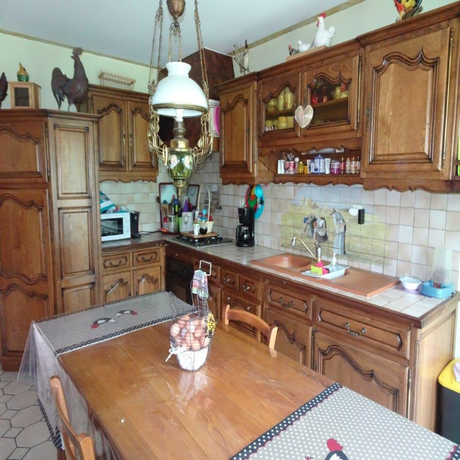 Au rez-de-chaussée : entrée avec cheminée, cuisine équipée avec terrasse , salle à manger/salon, 3 pièces, douche+wc, cuisine d'été / lingerie, wc.