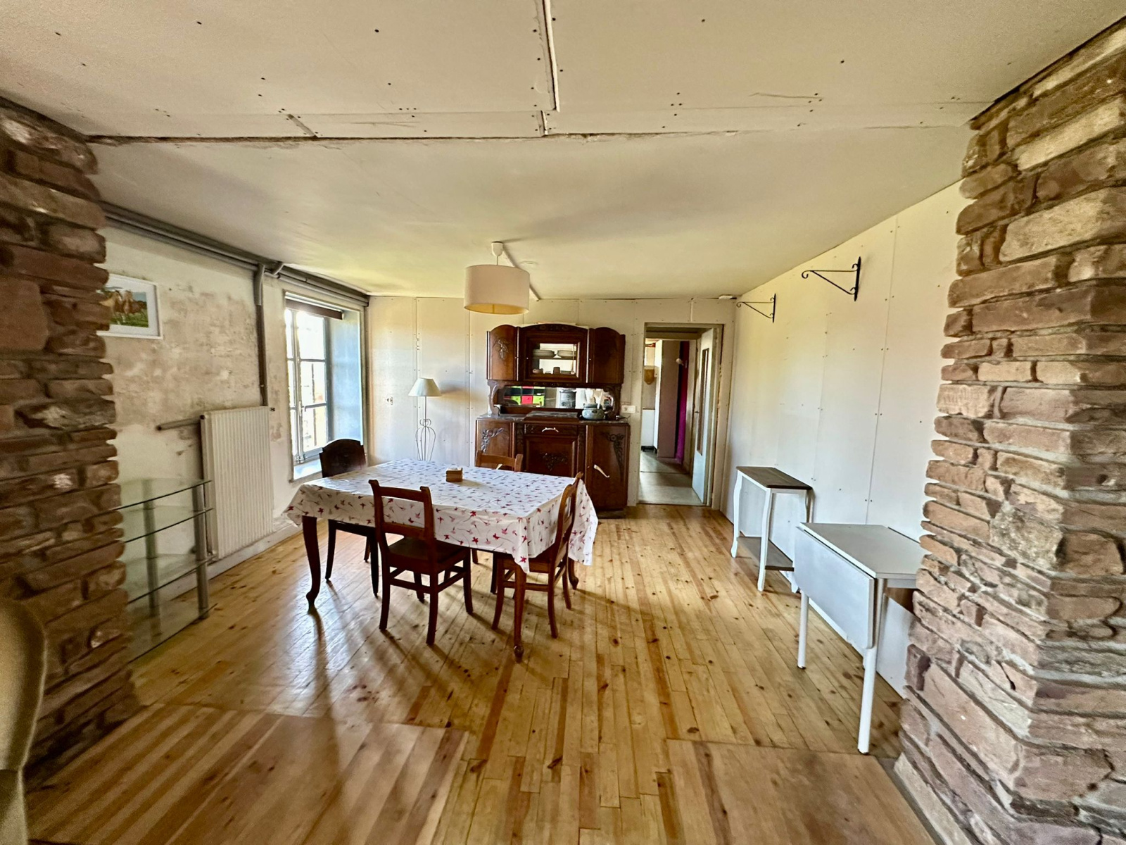 Au rez-de-chaussée : entrée sur véranda (3,5 m2 env), cuisine (18 m2 env) avec cuisinière à bois, salon/séjour (31 m2 env) avec poêle à bois, salle de bains/w.c (5 m2 env).