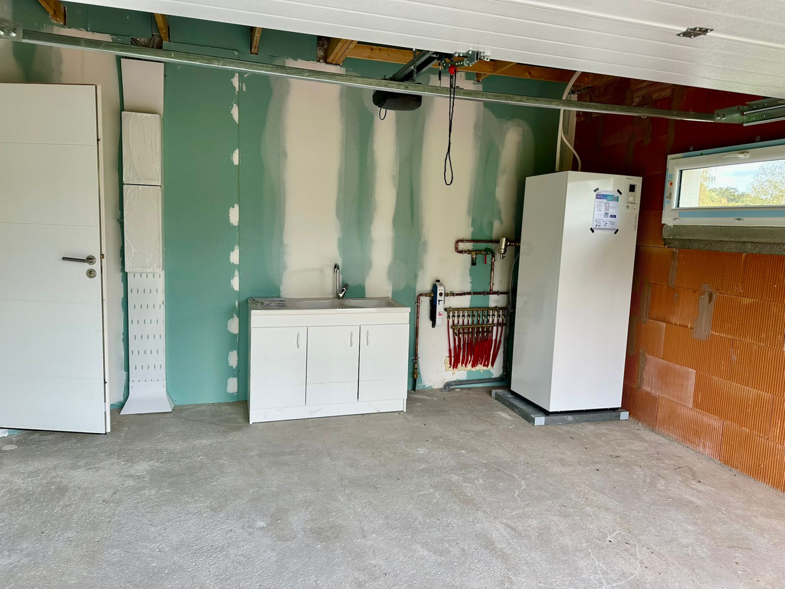 Garage (24 m2 env) avec motorisée, chaufferie et lavabo.