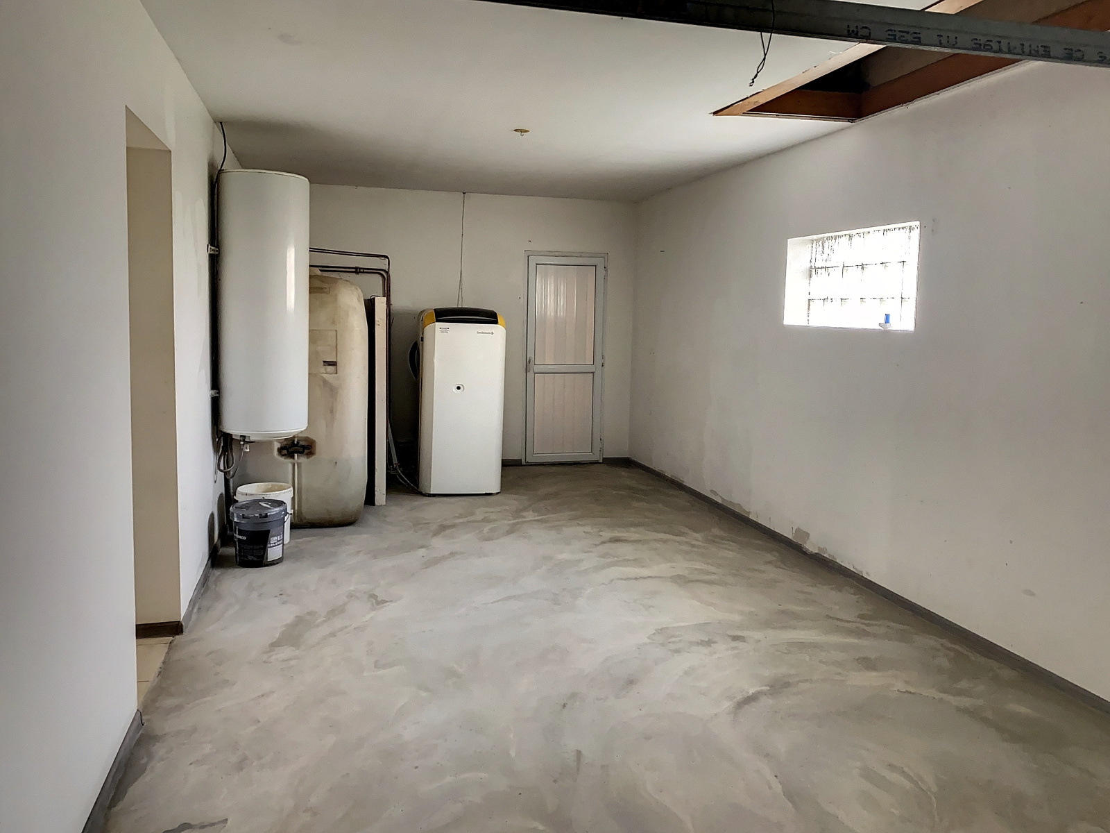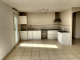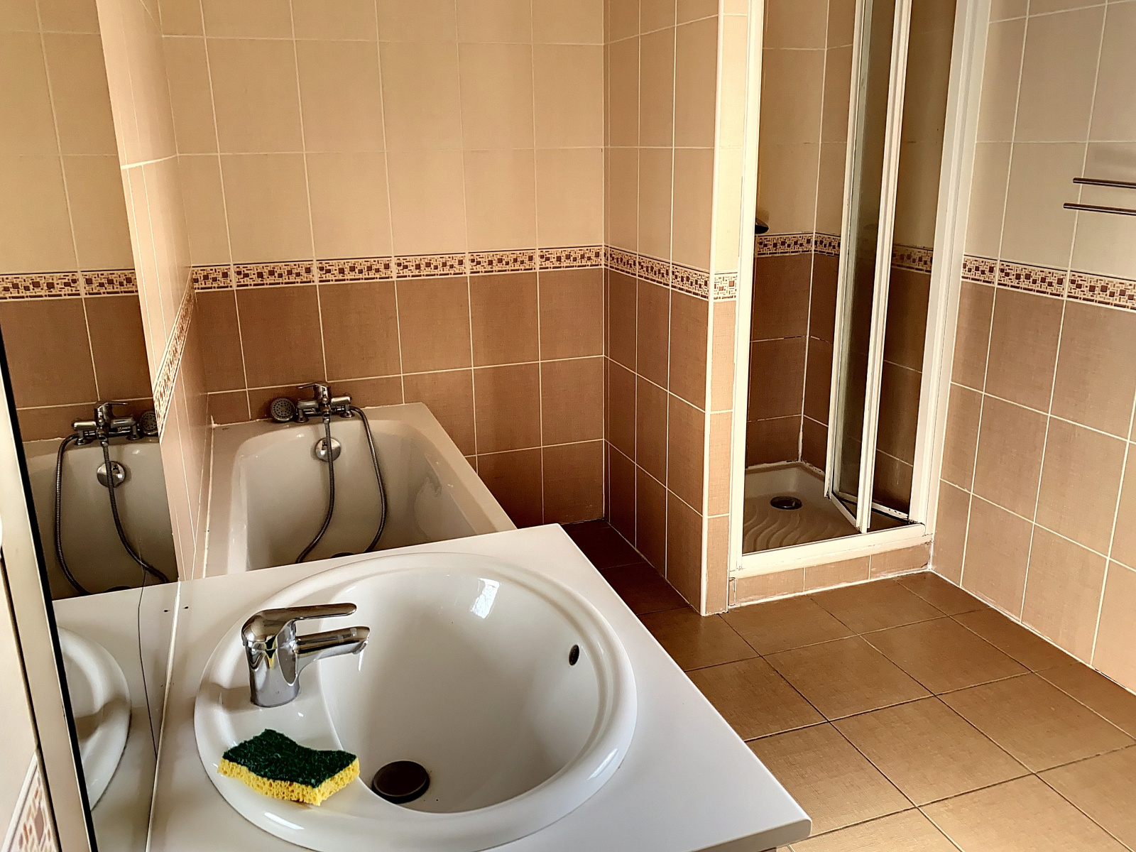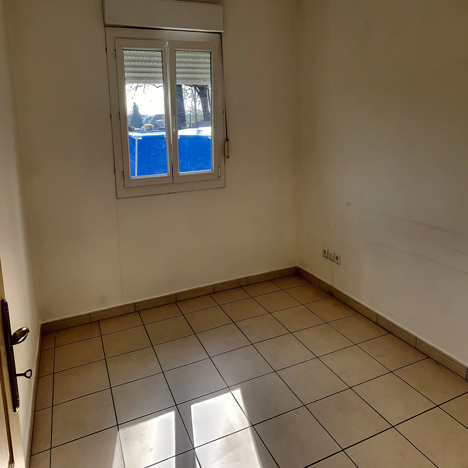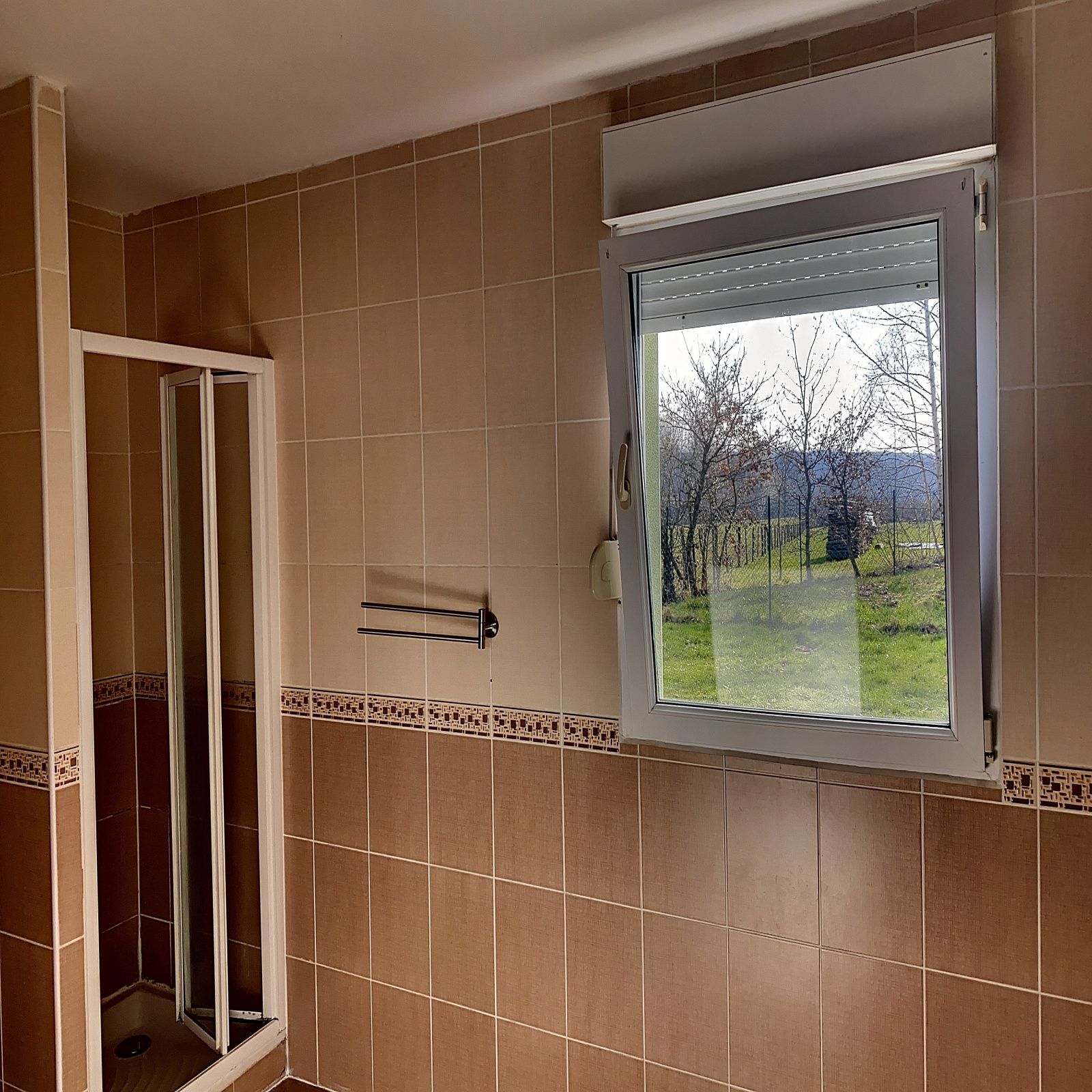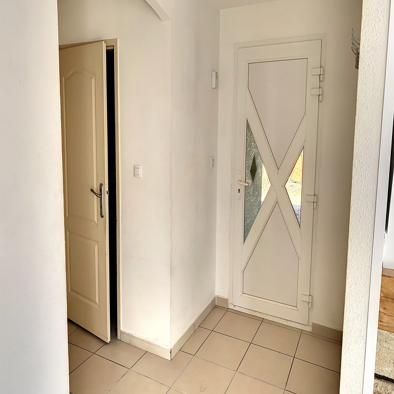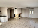 Entrée avec placard, cuisine meublée ouverte sur salle à manger / salon avec cheminée, 3 belles chambres, salle de bains, wc.