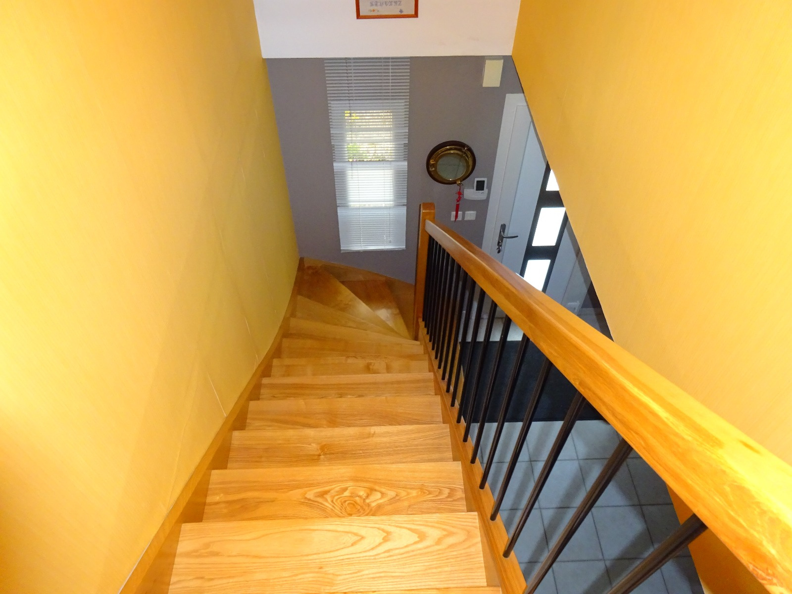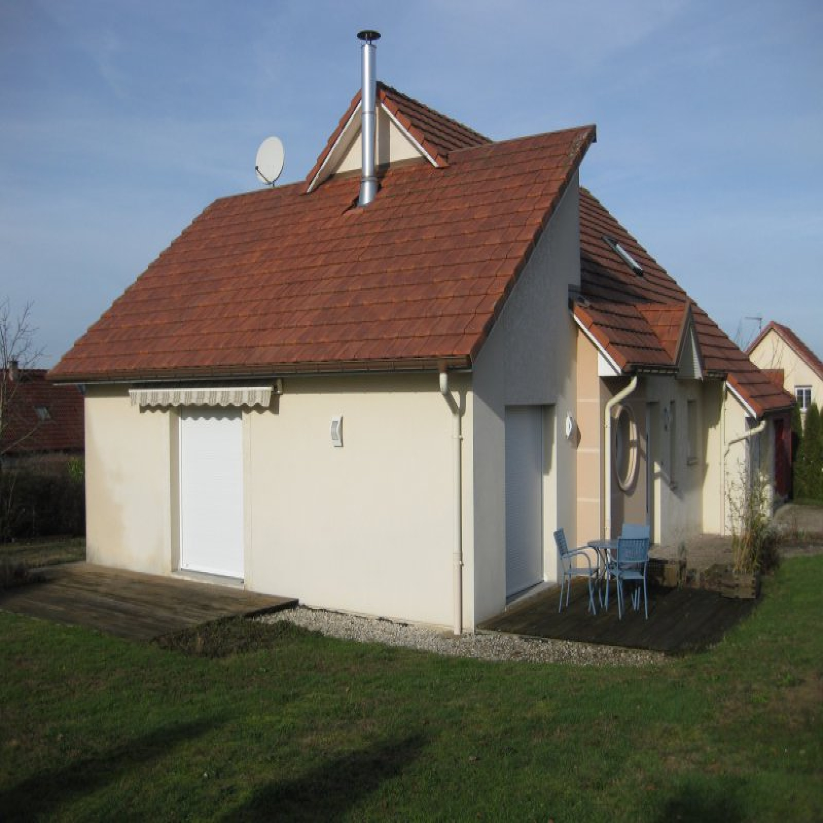 Au rez-de-chaussée : cuisine équipée ouverte sur salle à manger / salon, 2 chambres, salle de bains, wc, buanderie.