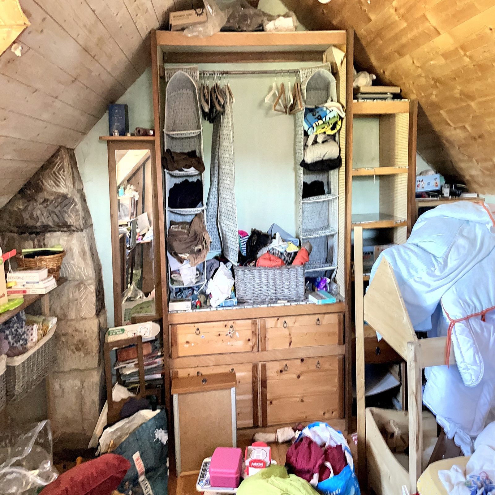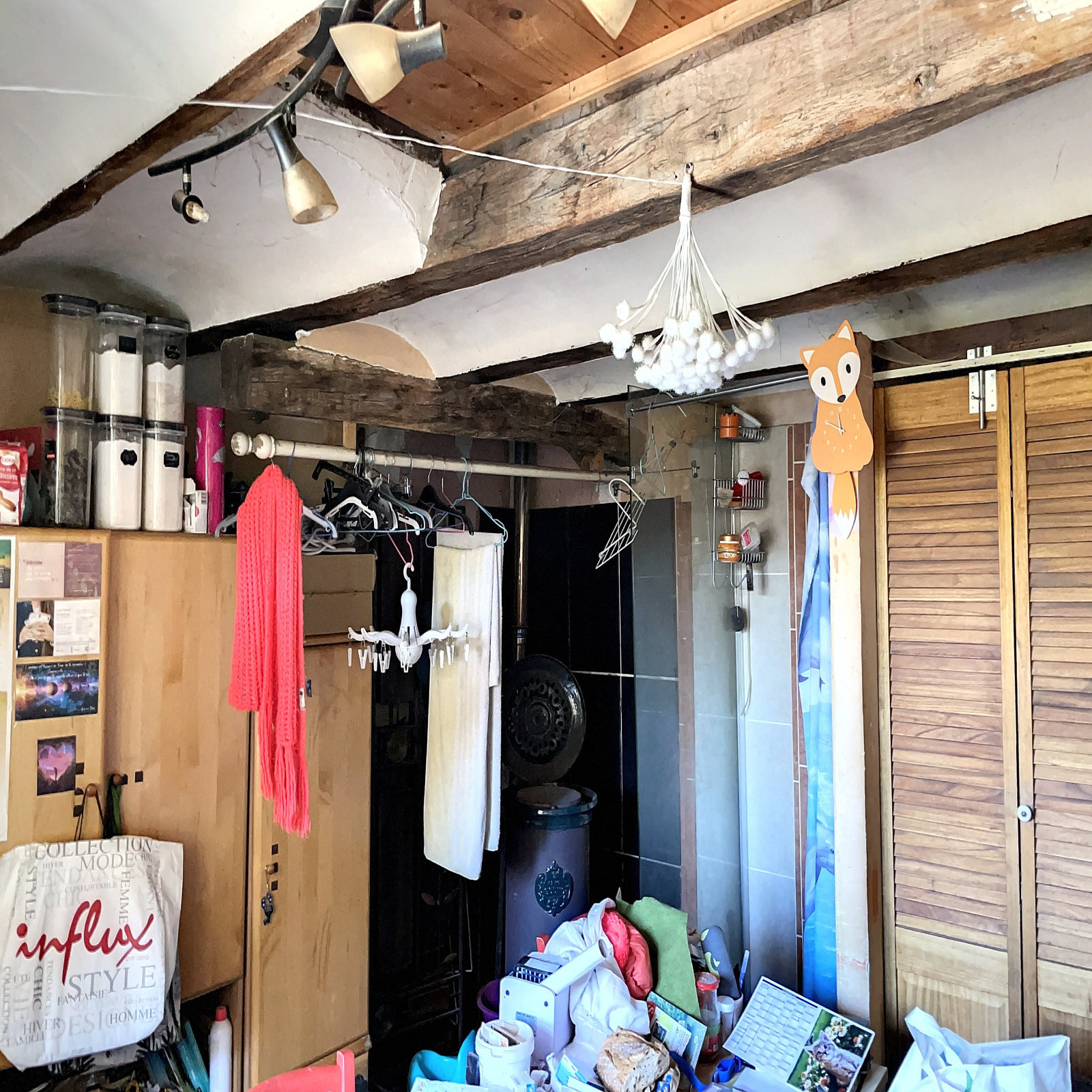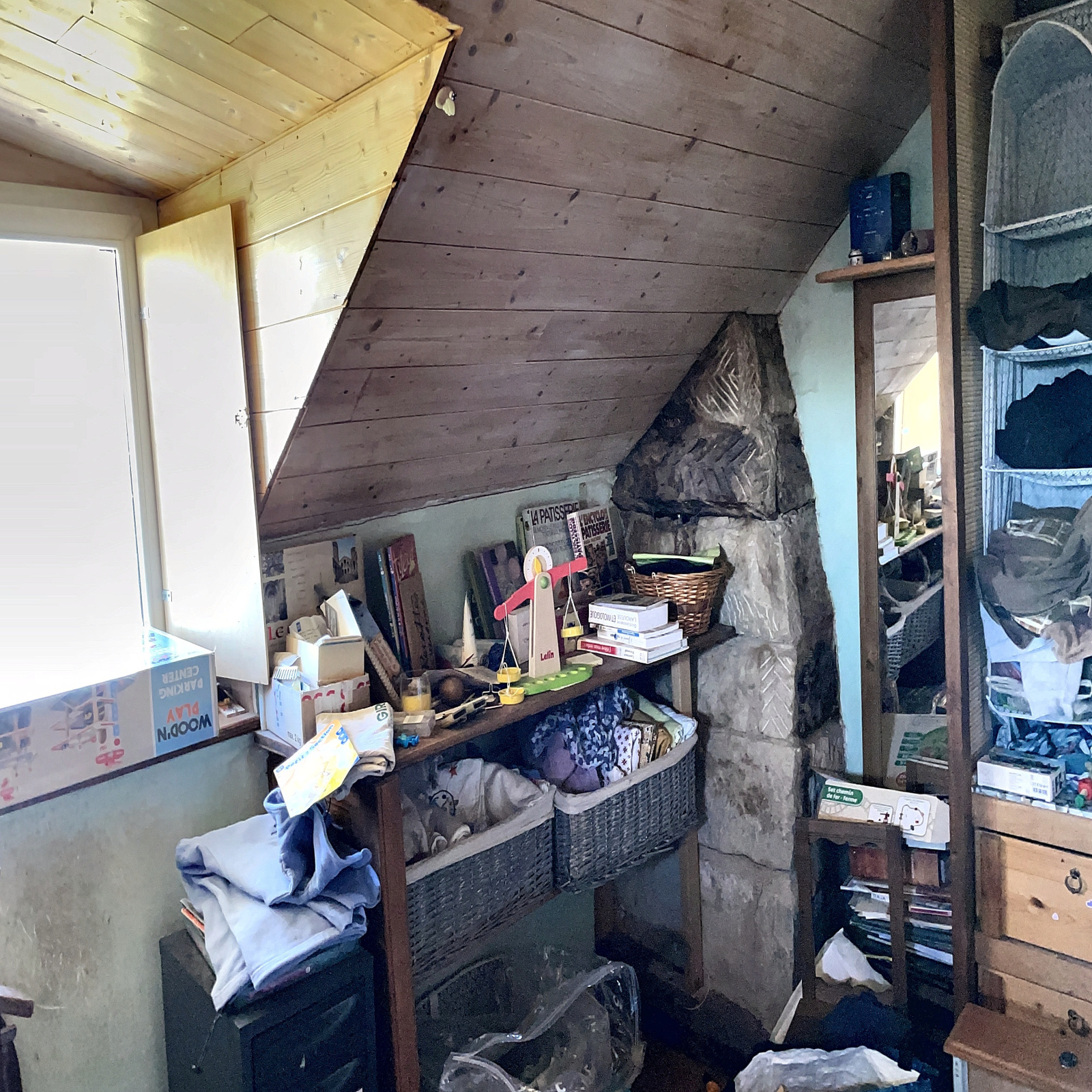 Un petit logement composé d'une cuisine de 16 m2 environ avec douche et wc sanibroyeur et une chambre mansardée de 9 m2 env.