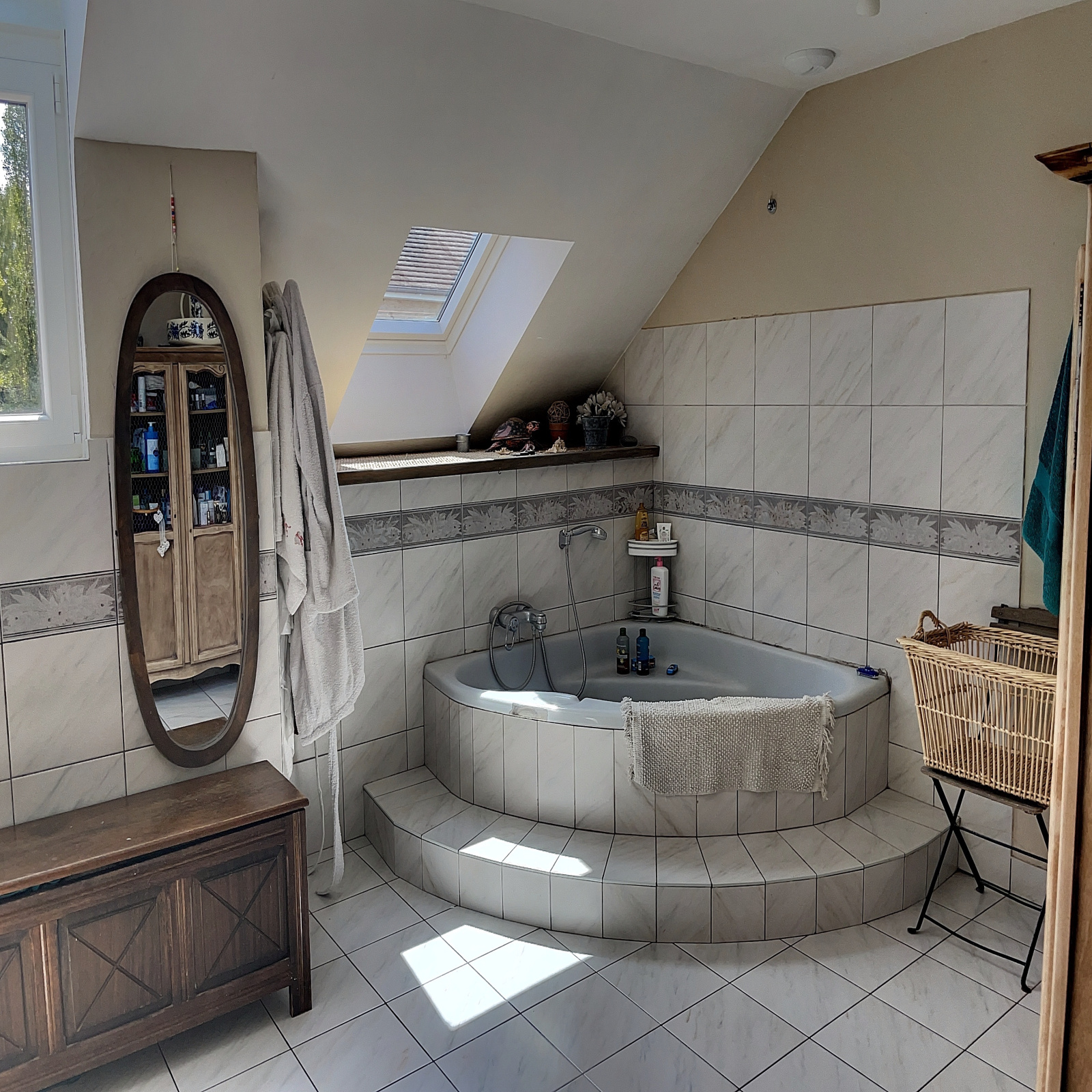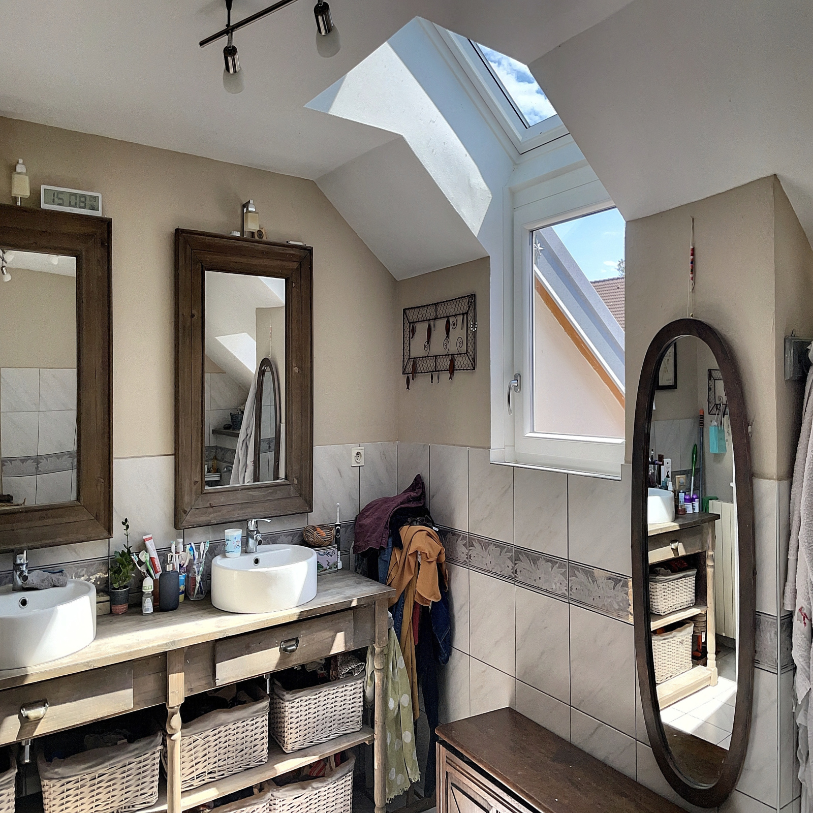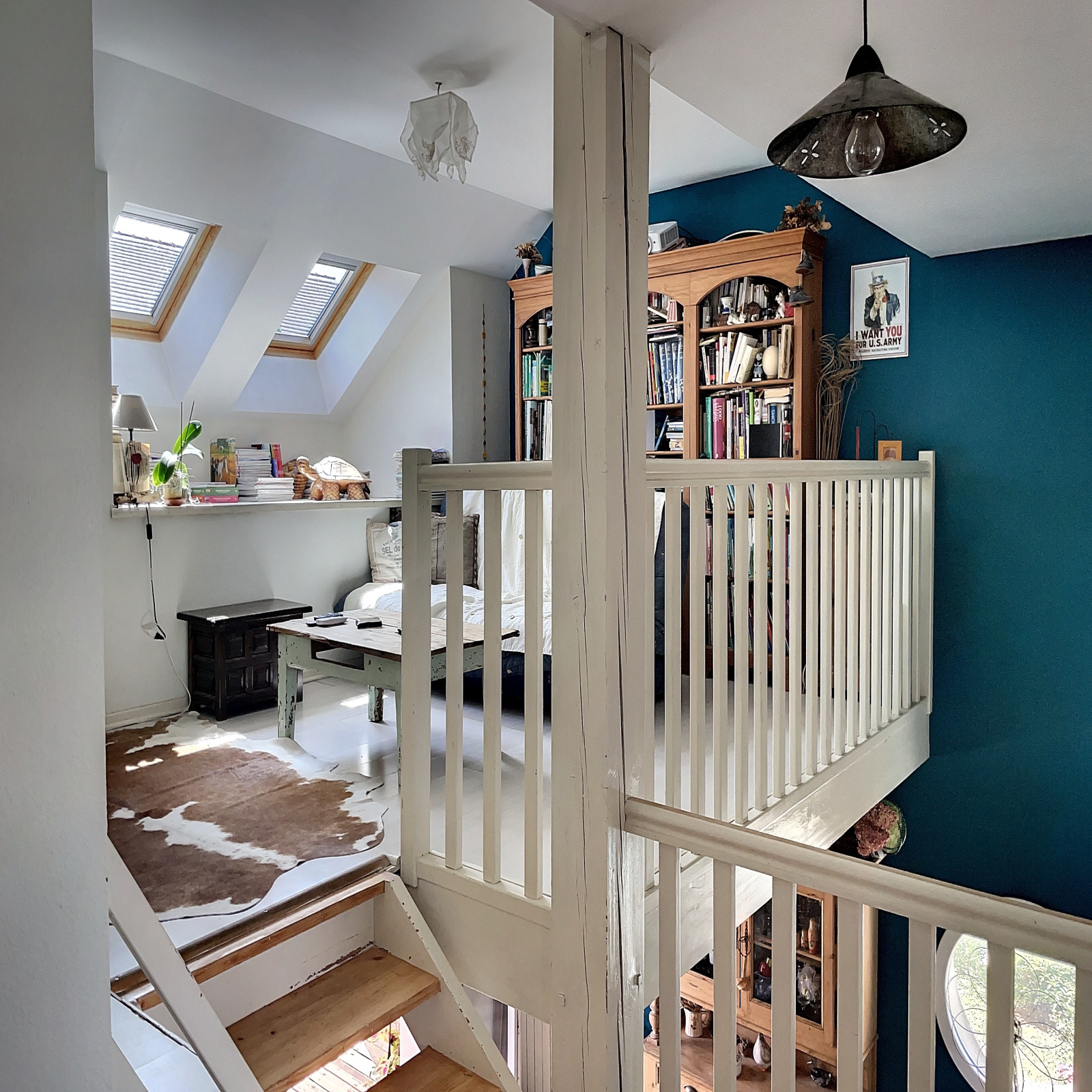 A l'étage : palier et mezzanine (16 m2 env), 3 chambres (8.5, 8.5 et 13.5 m2 env), dressing (4 m2 env), salle de bains (12 m2 env), wc.