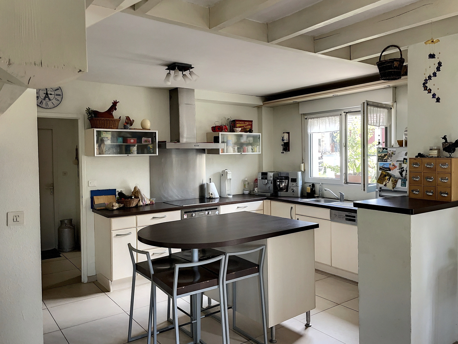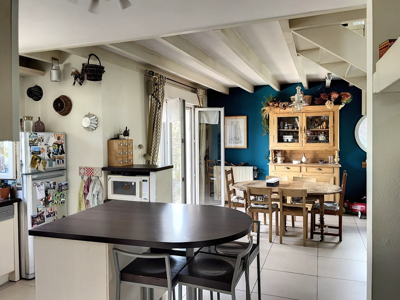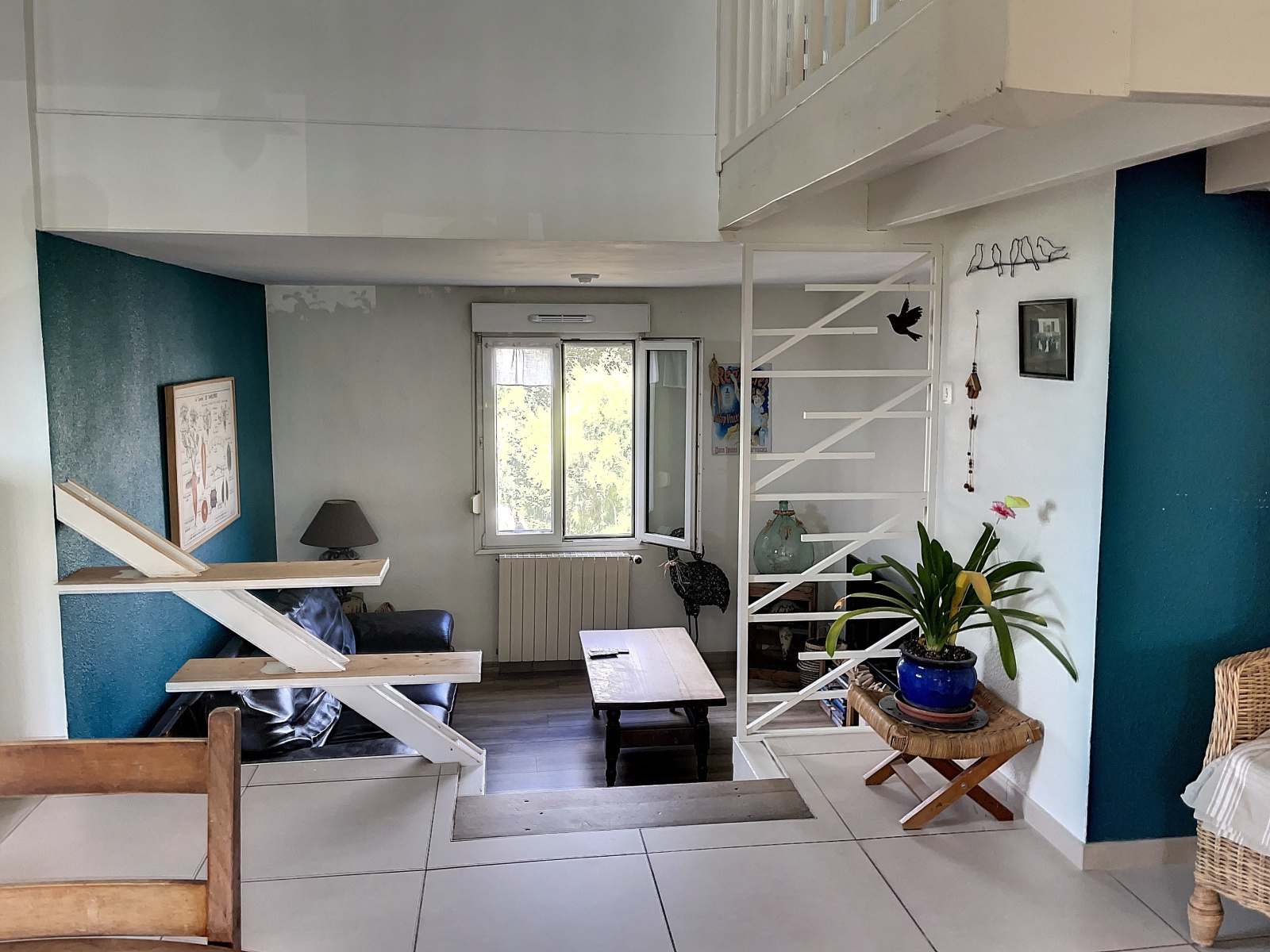 Au rez-de-chaussée : entrée (10 m2 env), cuisine ouverte sur salle à manger (36 m2 env), en contrebas un petit salon (11 m2 env), une chambre (11 m2 env), salle d'eau/wc (3 m2 env).