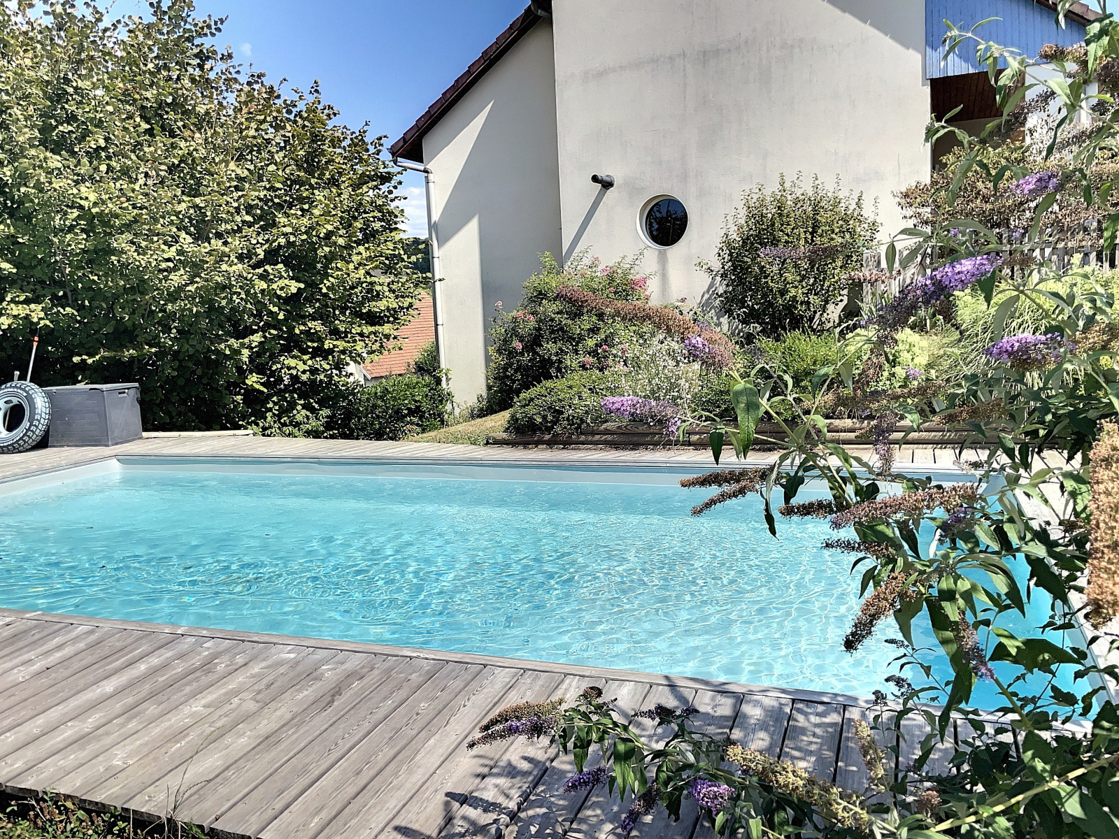 Notre agent Norbert Steiner vous propose de découvrir en exclusivité cette jolie maison semi plain-pied de 1993, sur son terrain de 10,62 ares surplombant le village, elle comprend :