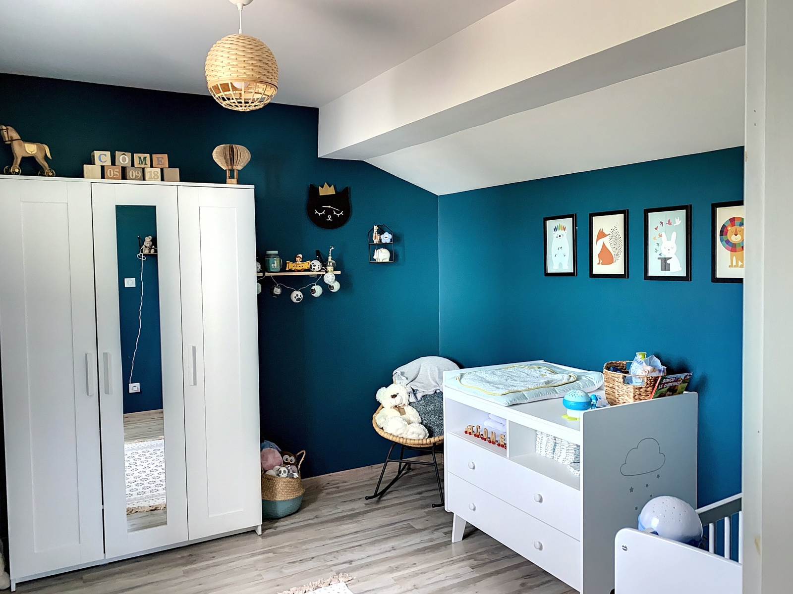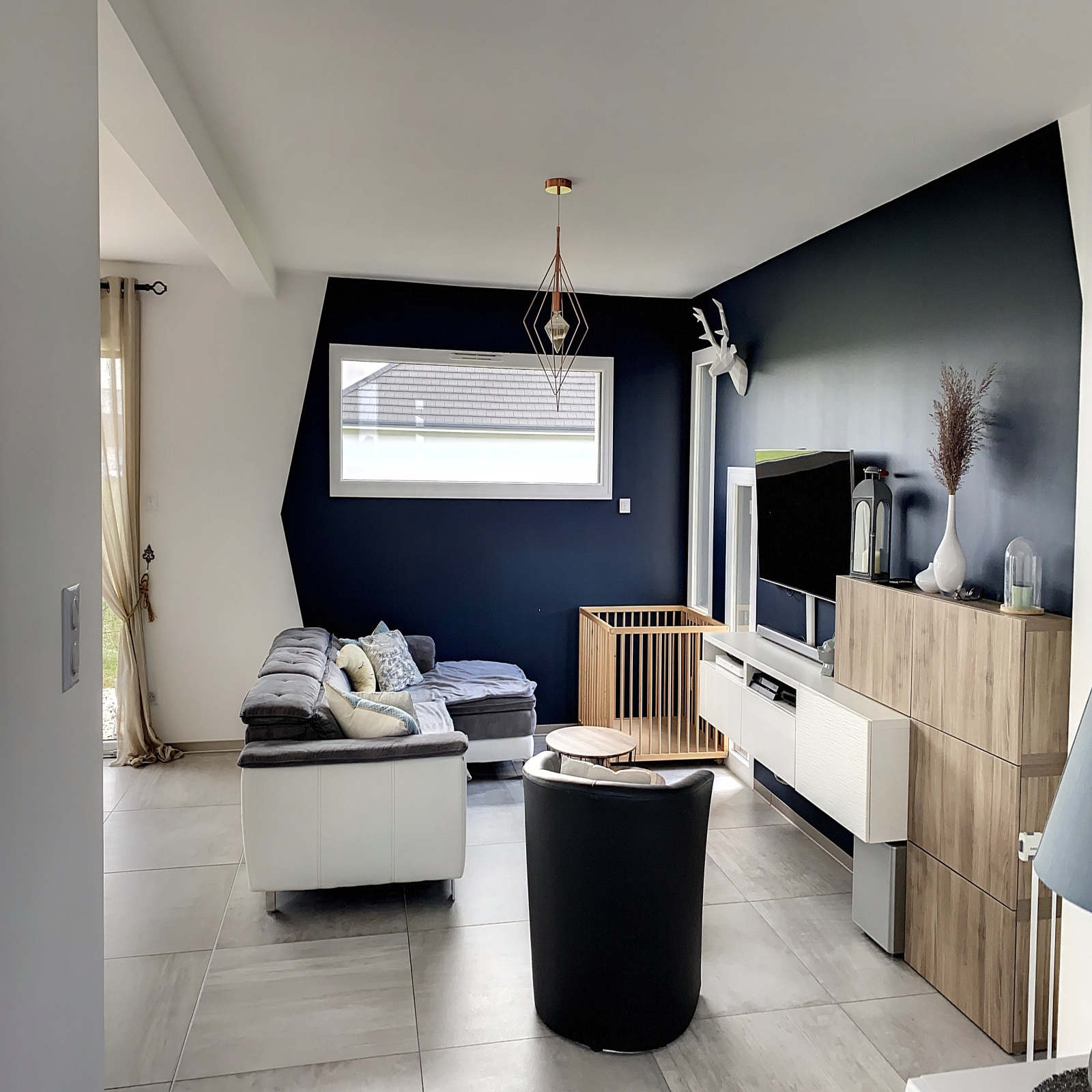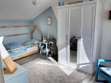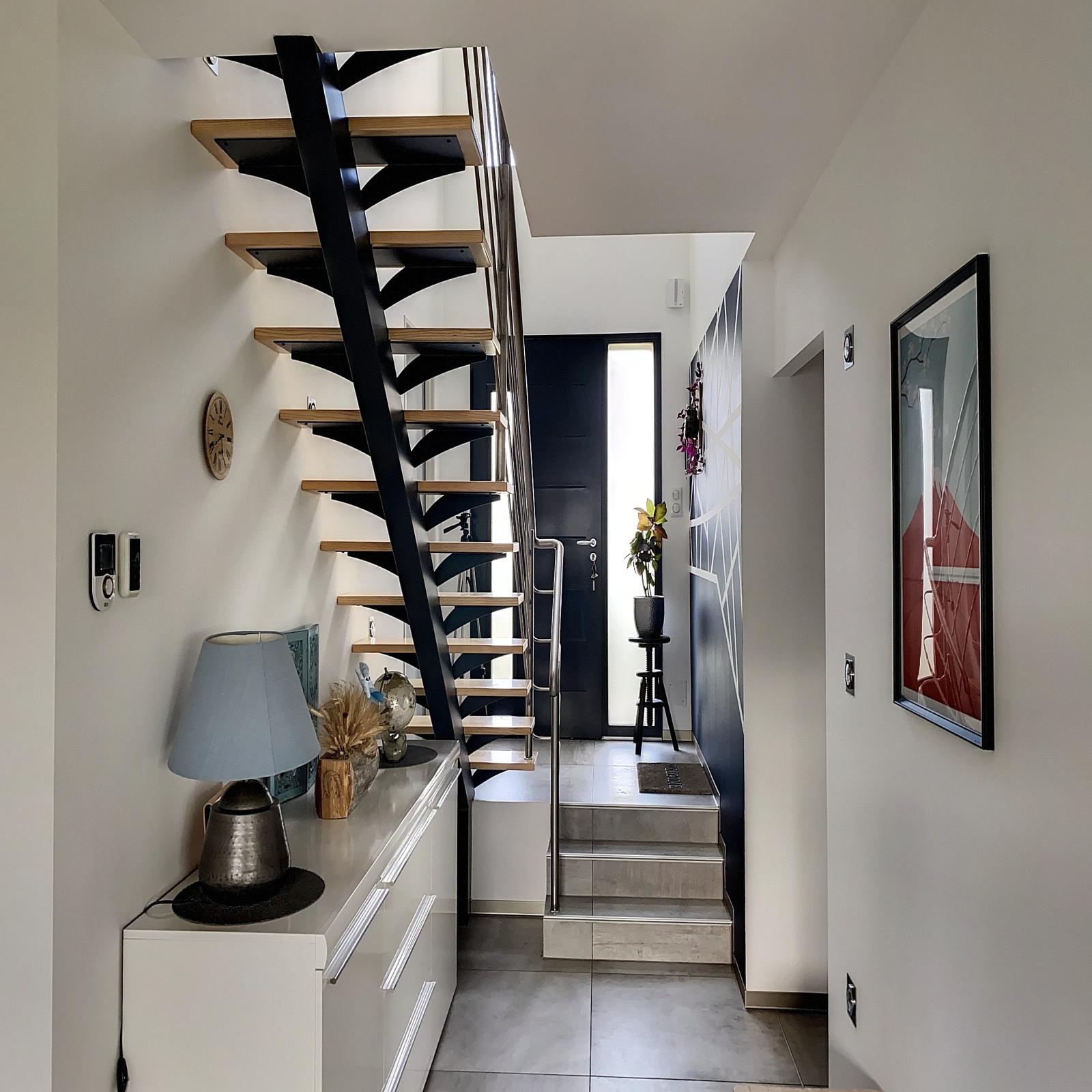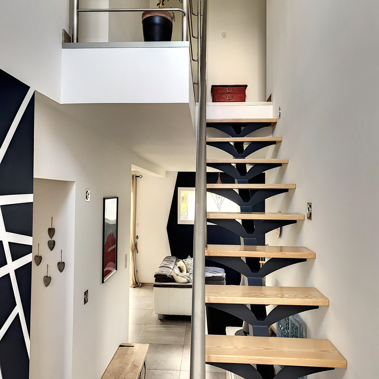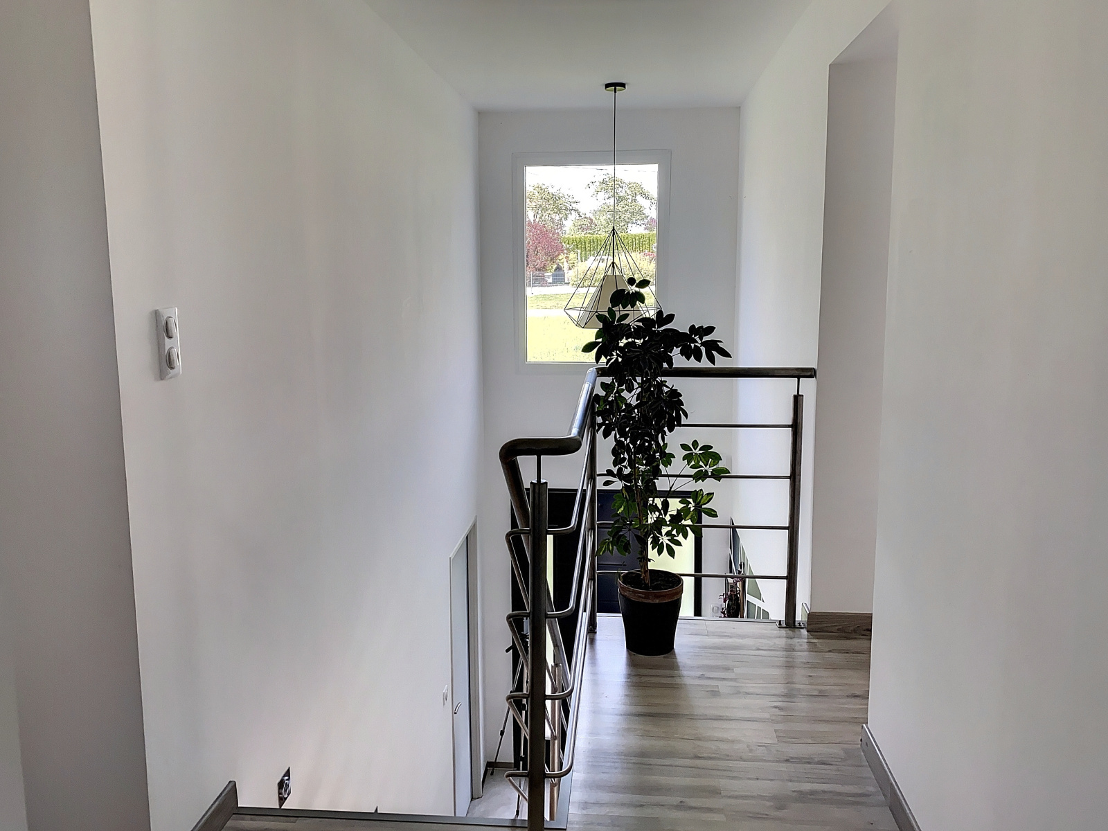 Elle se compose d'une cuisine équipée ouverte sur salon/séjour (44 m² env) avec poêle pellets, une chambre parentale avec salle de bains/wc et dressing (20 m² env), un bureau (9 m² env) au rez-de-chaussée ; mezzanine (8m² env), 2 chambres avec placard (10, 10 m² env), salle d'eau avec wc (4.90 m² env) à l'étage.