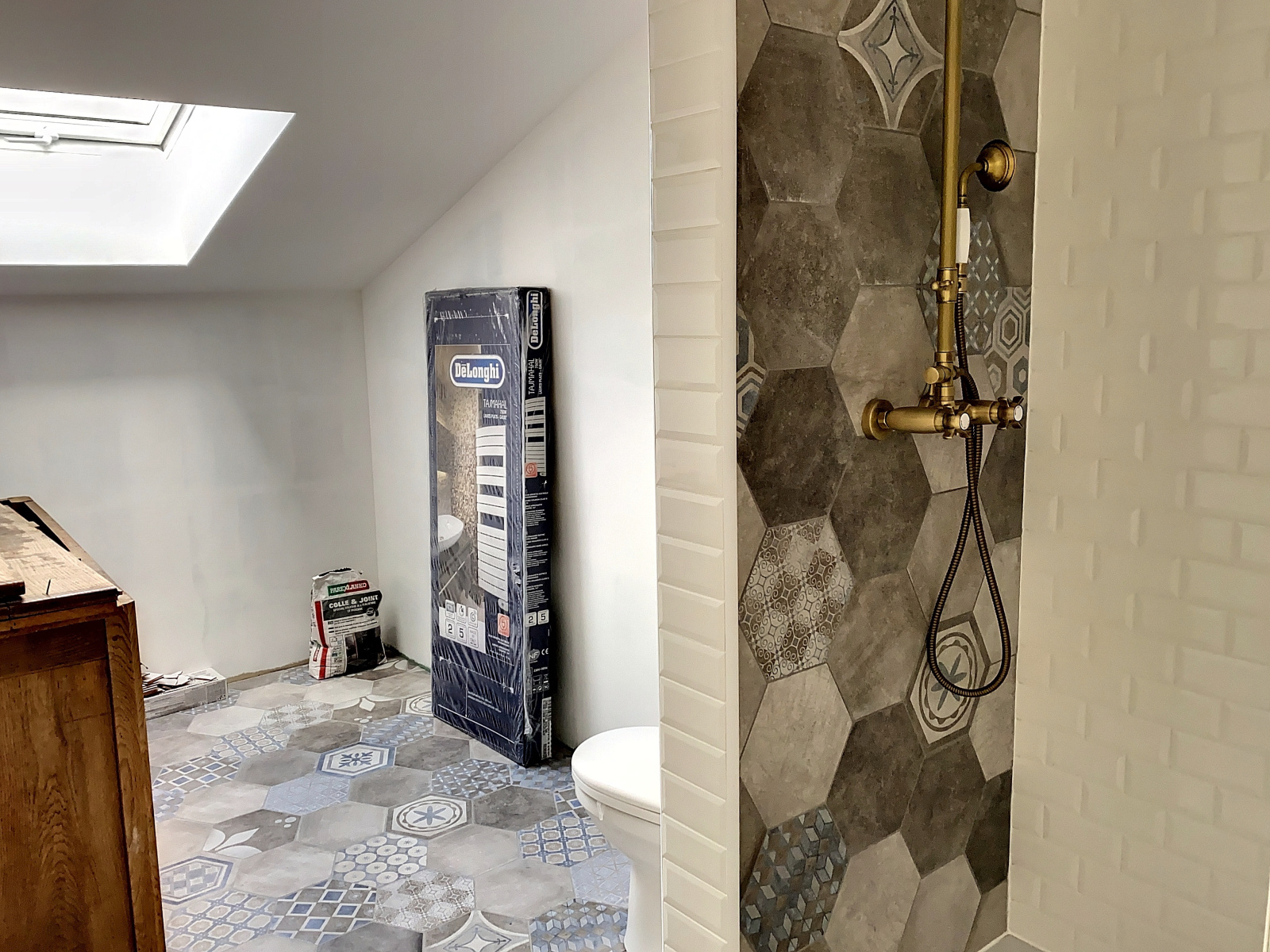 Chauffage : poêle à pellets + radiateur sèche-serviettes (salle de bains et salle d'eau)
