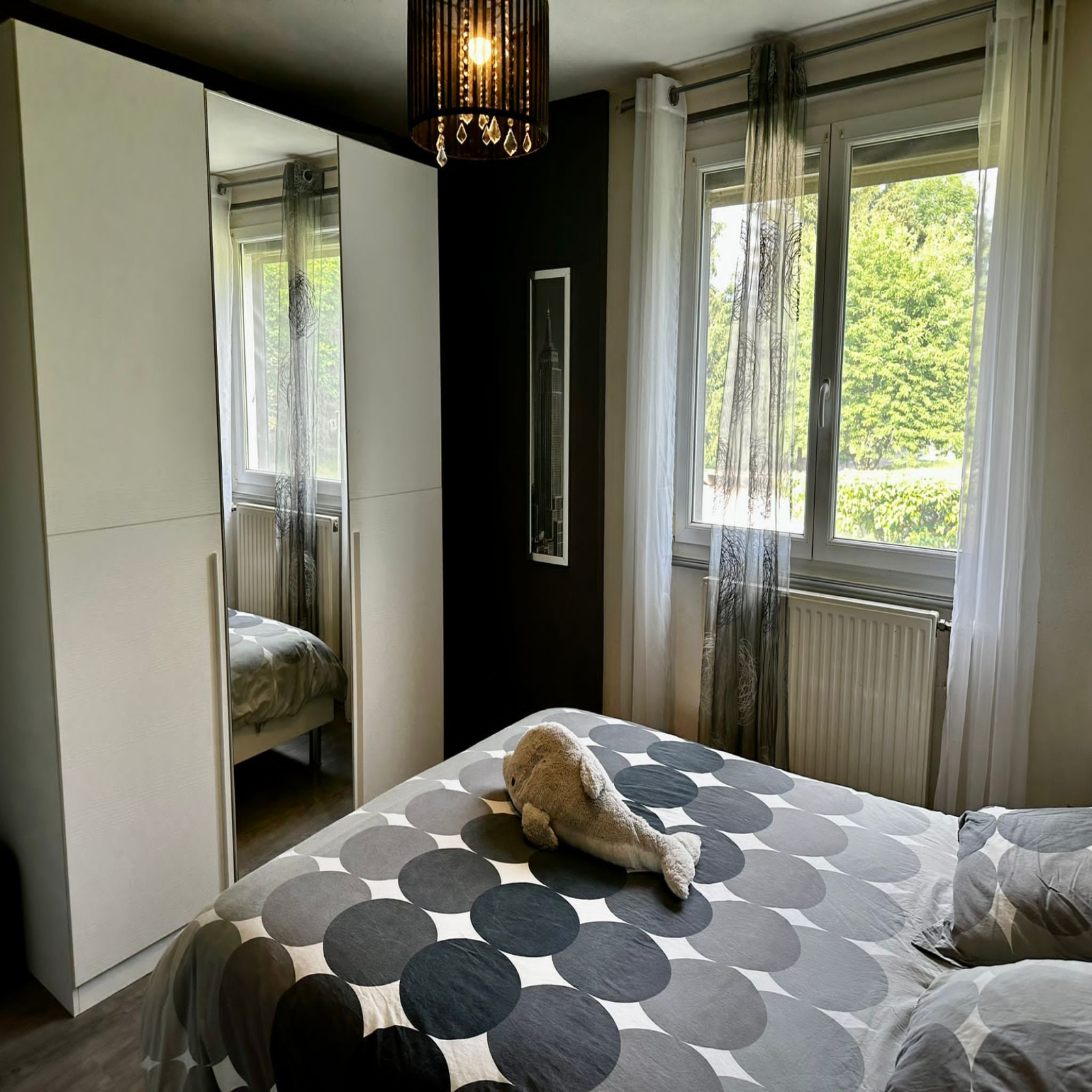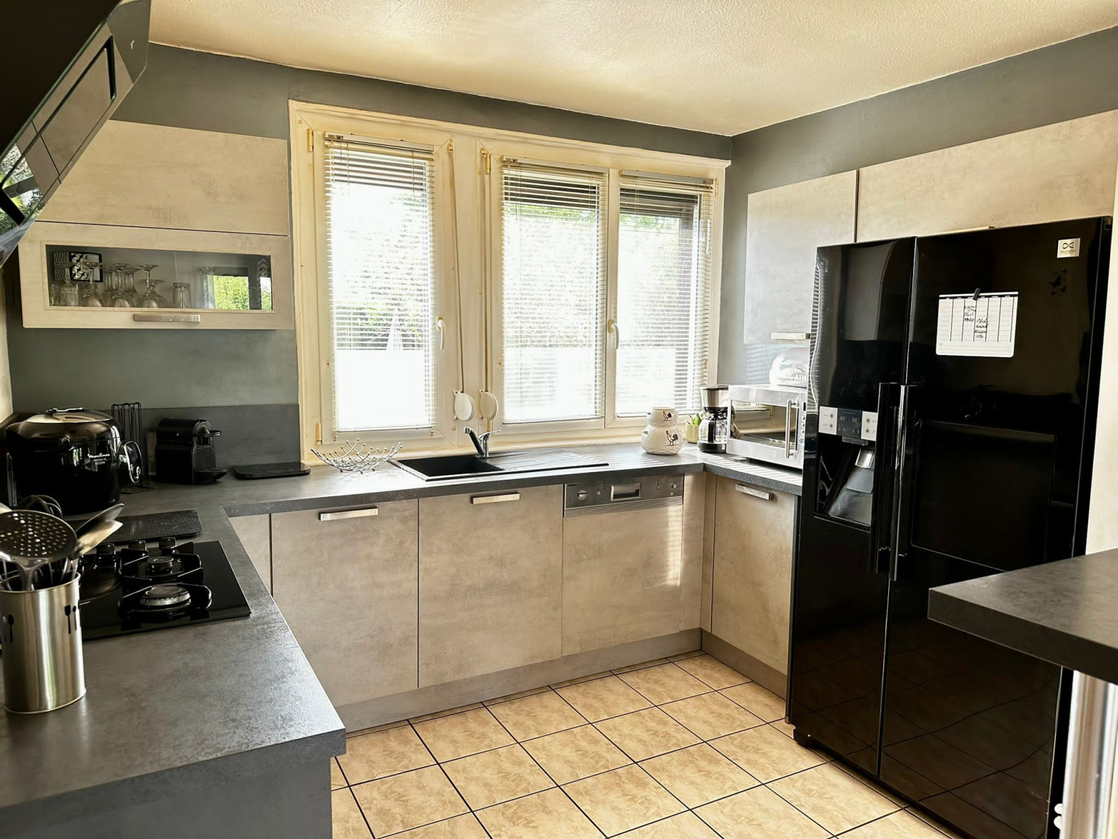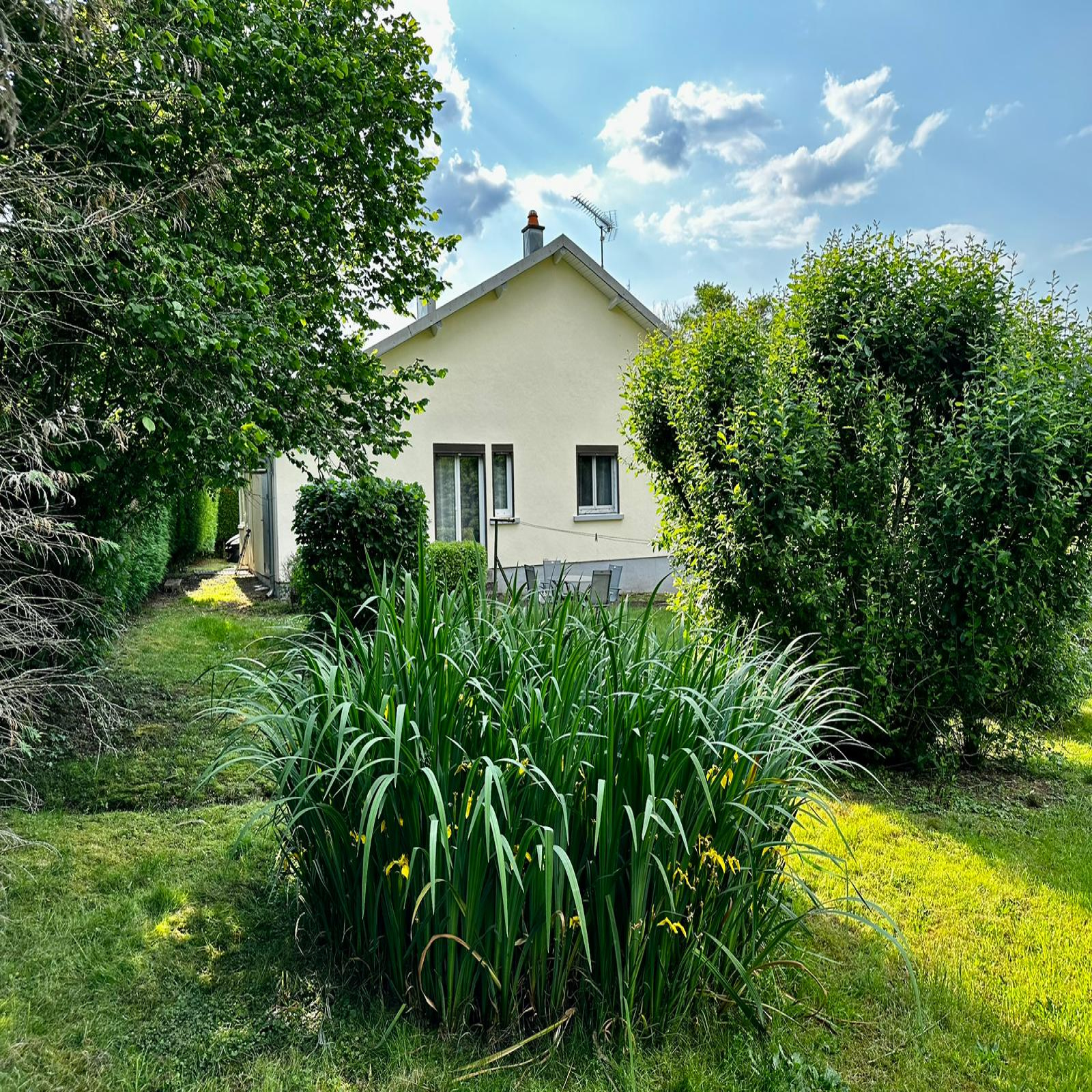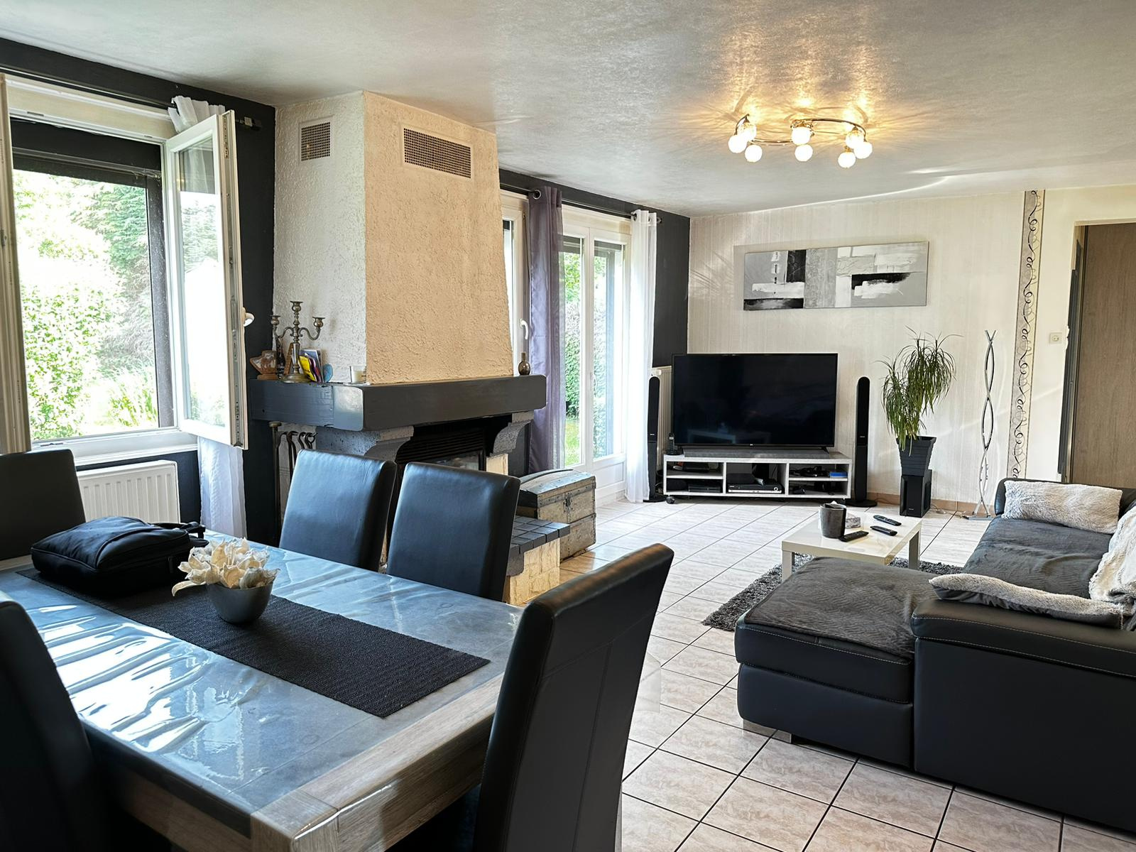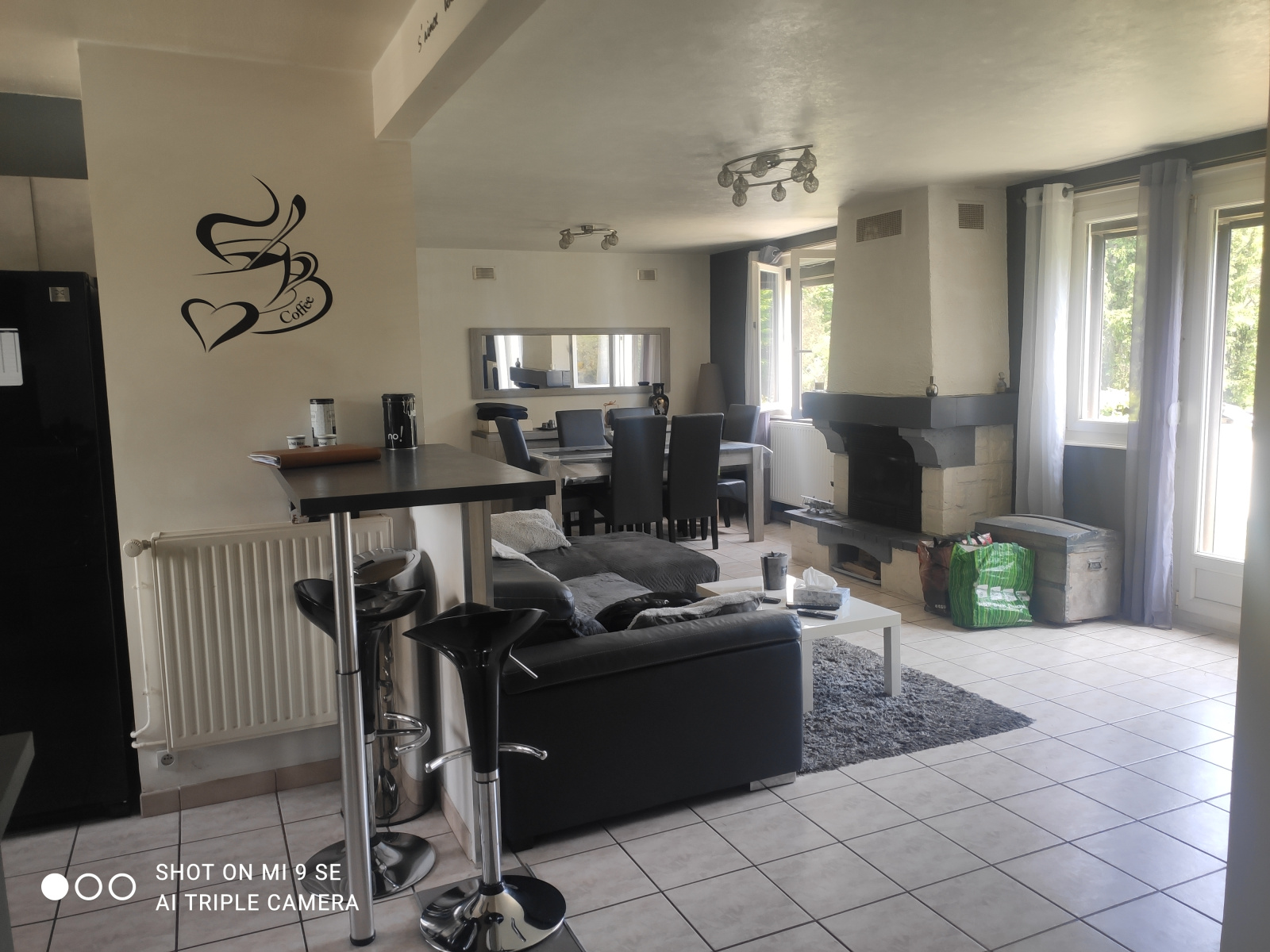 Une petite véranda (4 m2 env), entrée (3 m2 env), cuisine équipée ouverte (7 m2 env) sur salon/séjour (30 m2 env) avec insert, 3 chambres (9, 9 et 10 m2 env), salle d'eau (5 m2 env), w.c, chaufferie (6 m2 env), combles aménageables.