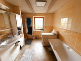A l'étage : dégagement, 3 chambres (9, 11, 12 m2 env), salle de bains (7 m2 env), w.c.