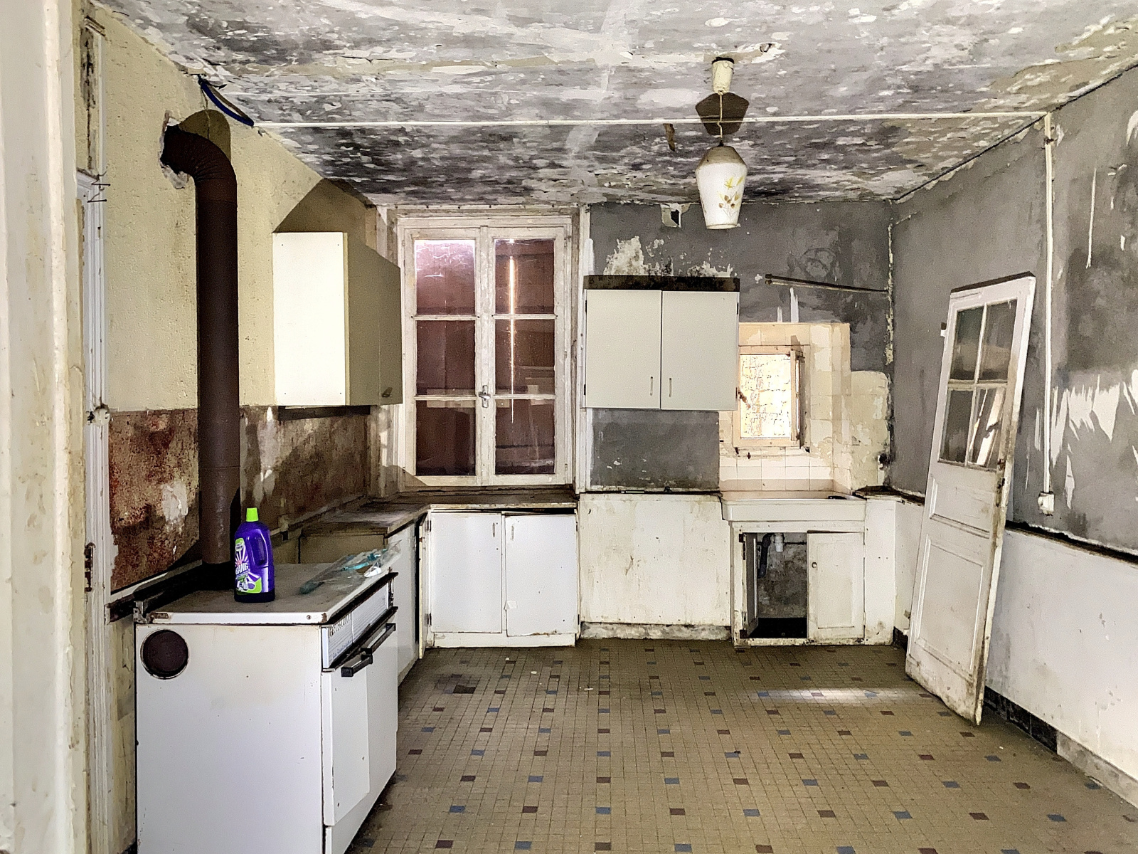 Maison de village mitoyenne des 2 côtés à rénover entièrement sur terrain de 2 ares comprenant :