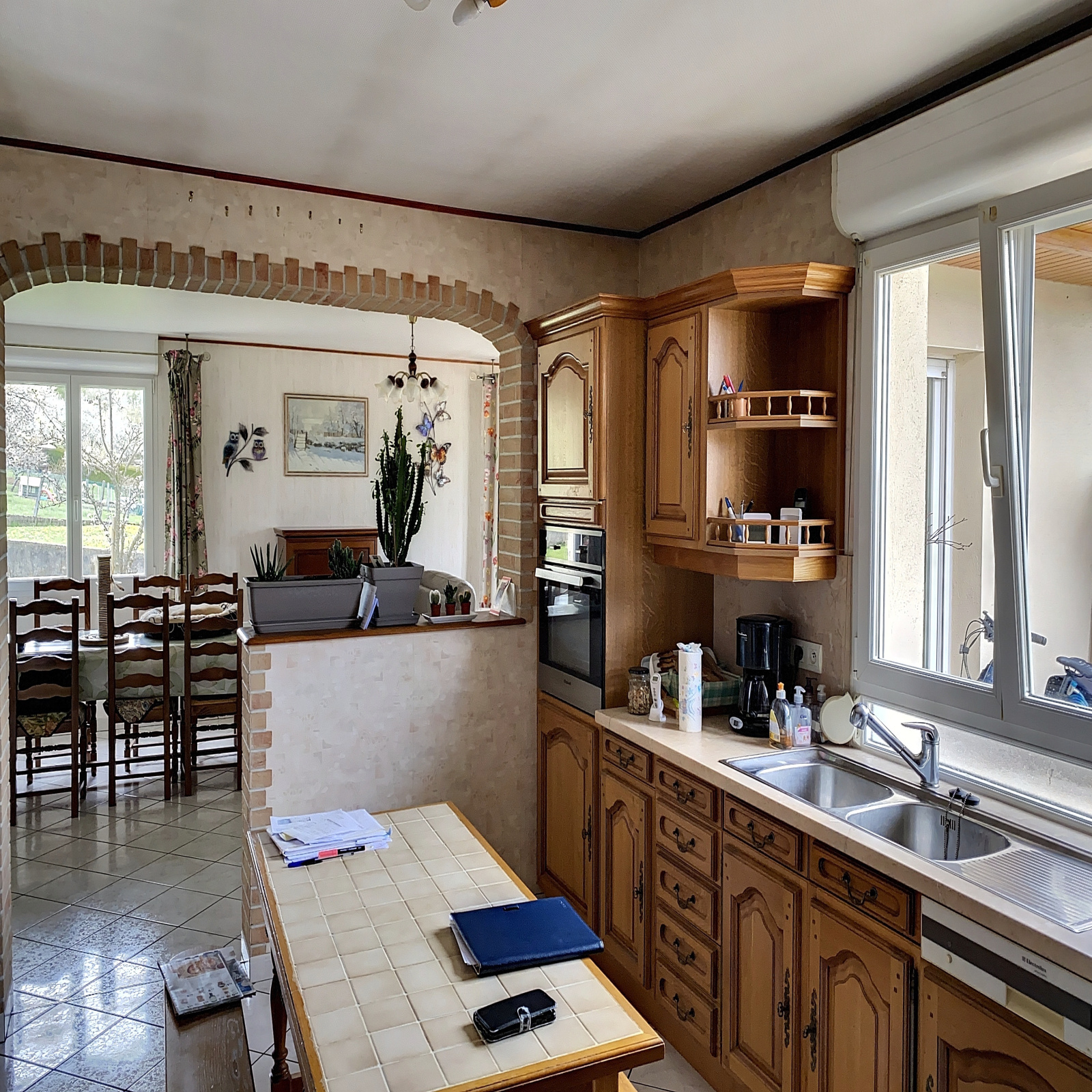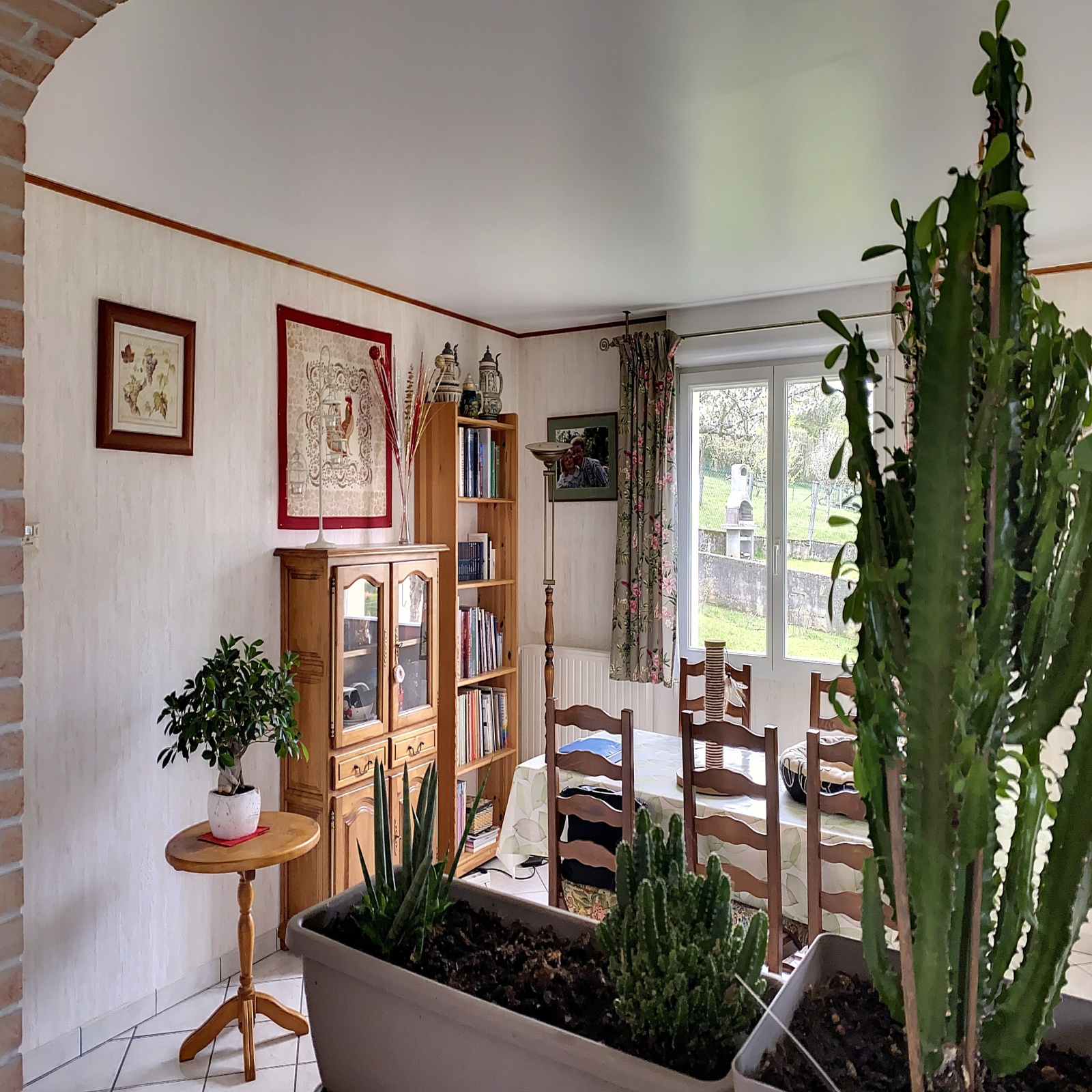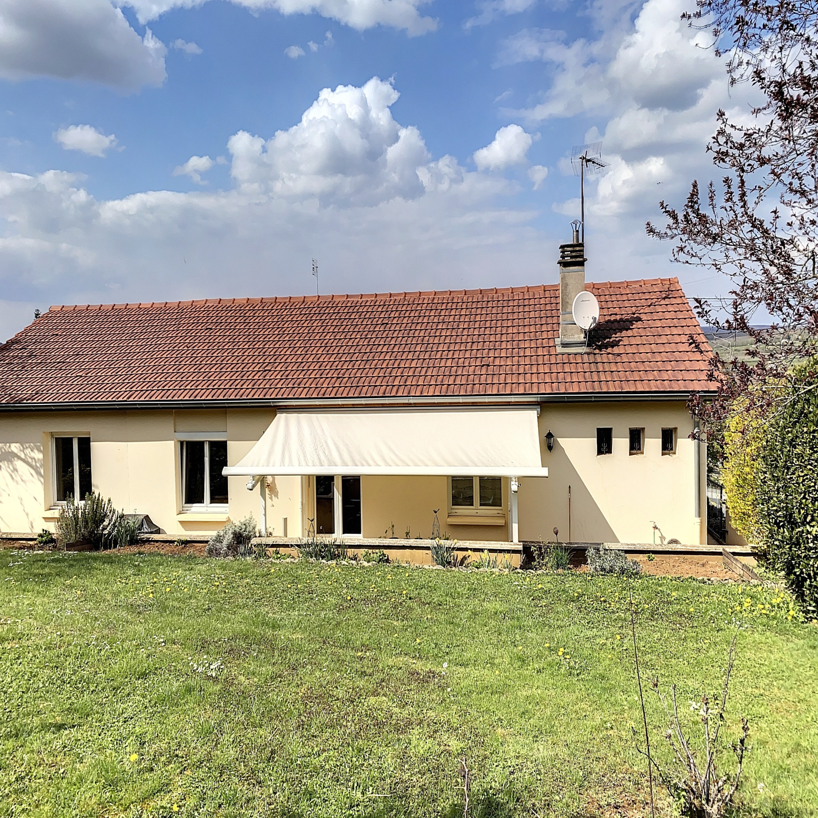 Joli pavillon plain-pied d’environ 110 m² avec terrain de 10 a 75 ca sur les hauteurs d’une dynamique commune chef-lieu de canton à proximité à pieds des commerces et du centre. il comprend :