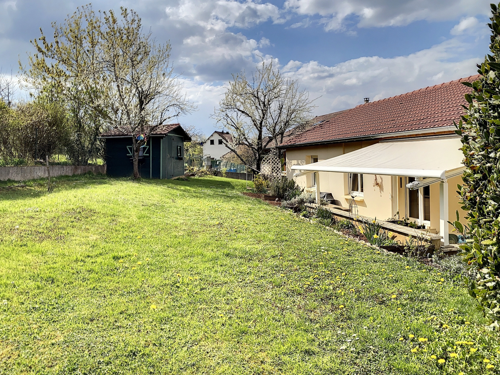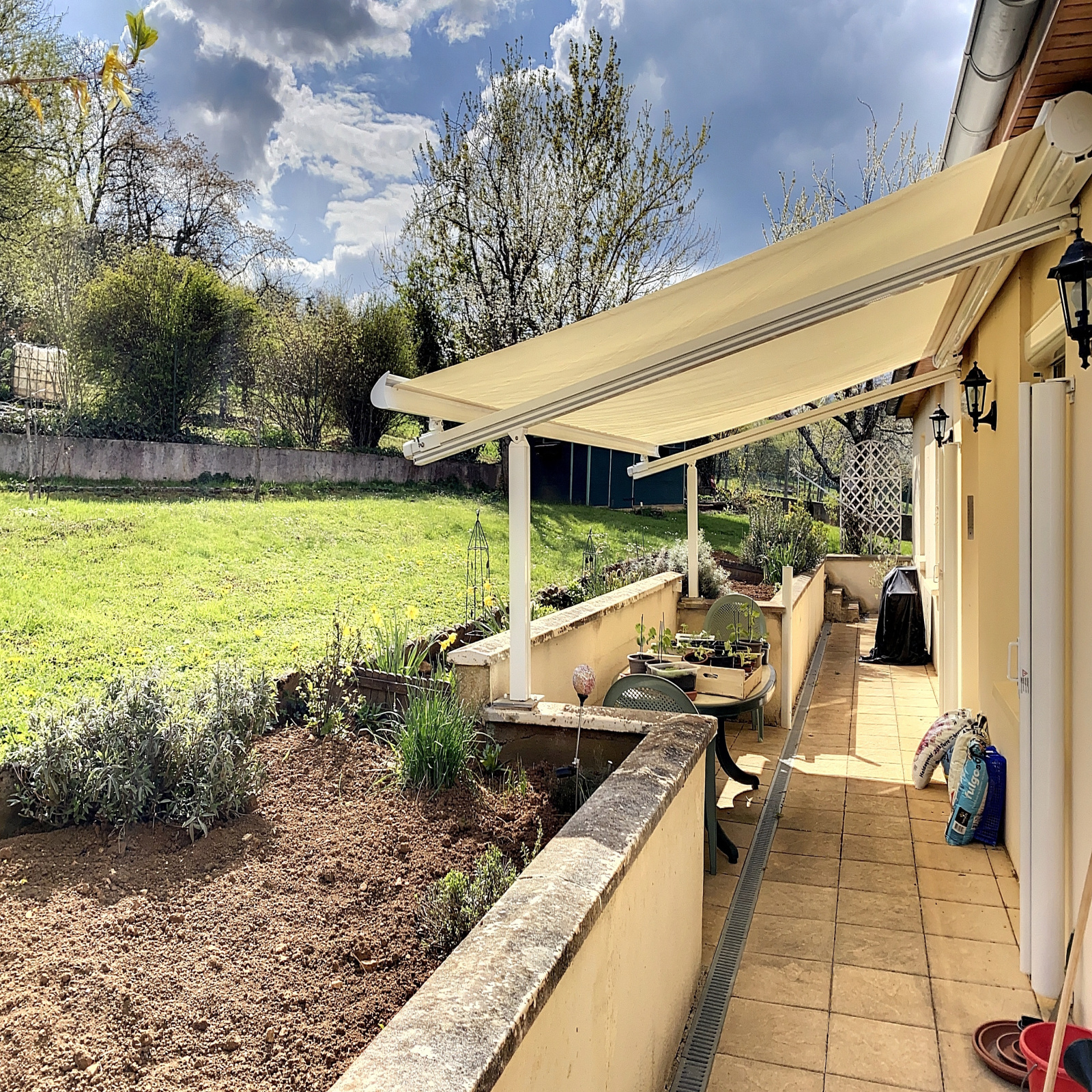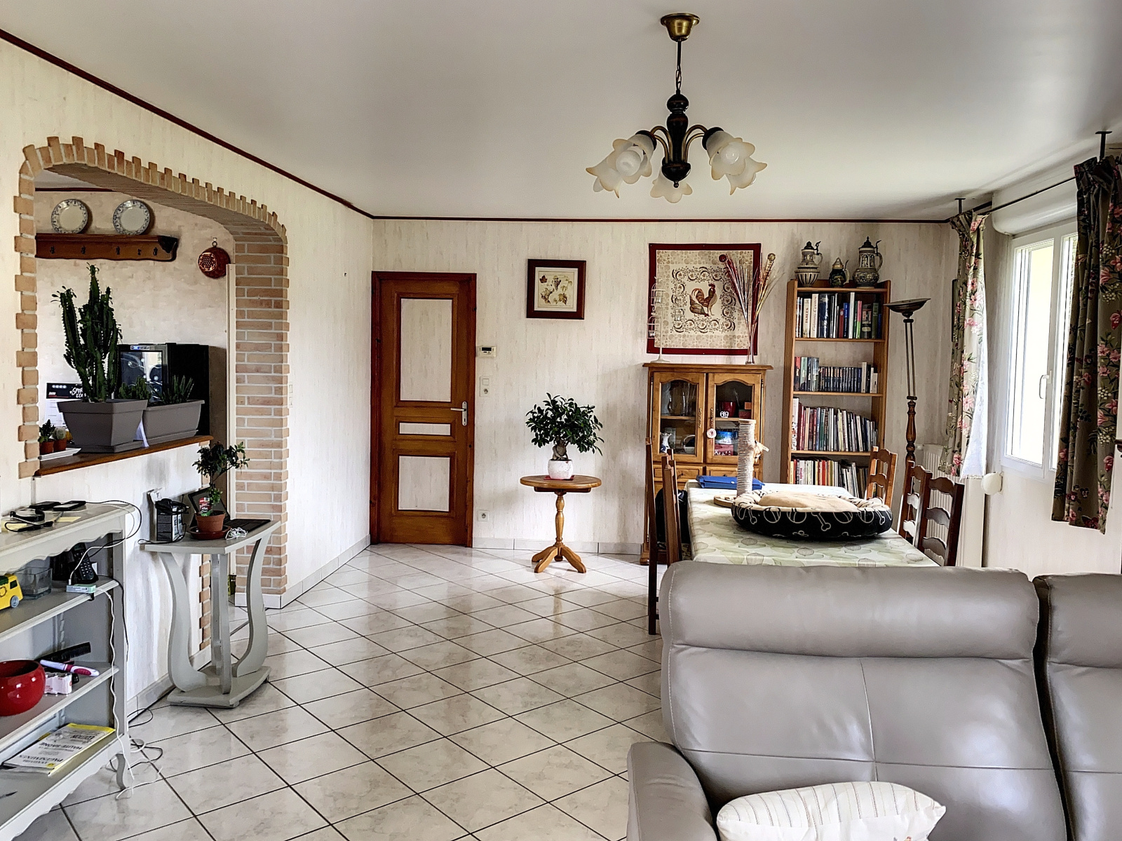 Joli pavillon plain-pied d’environ 110 m² avec terrain de 10 a 75 ca sur les hauteurs d’une dynamique commune chef-lieu de canton à proximité à pieds des commerces et du centre. il comprend :