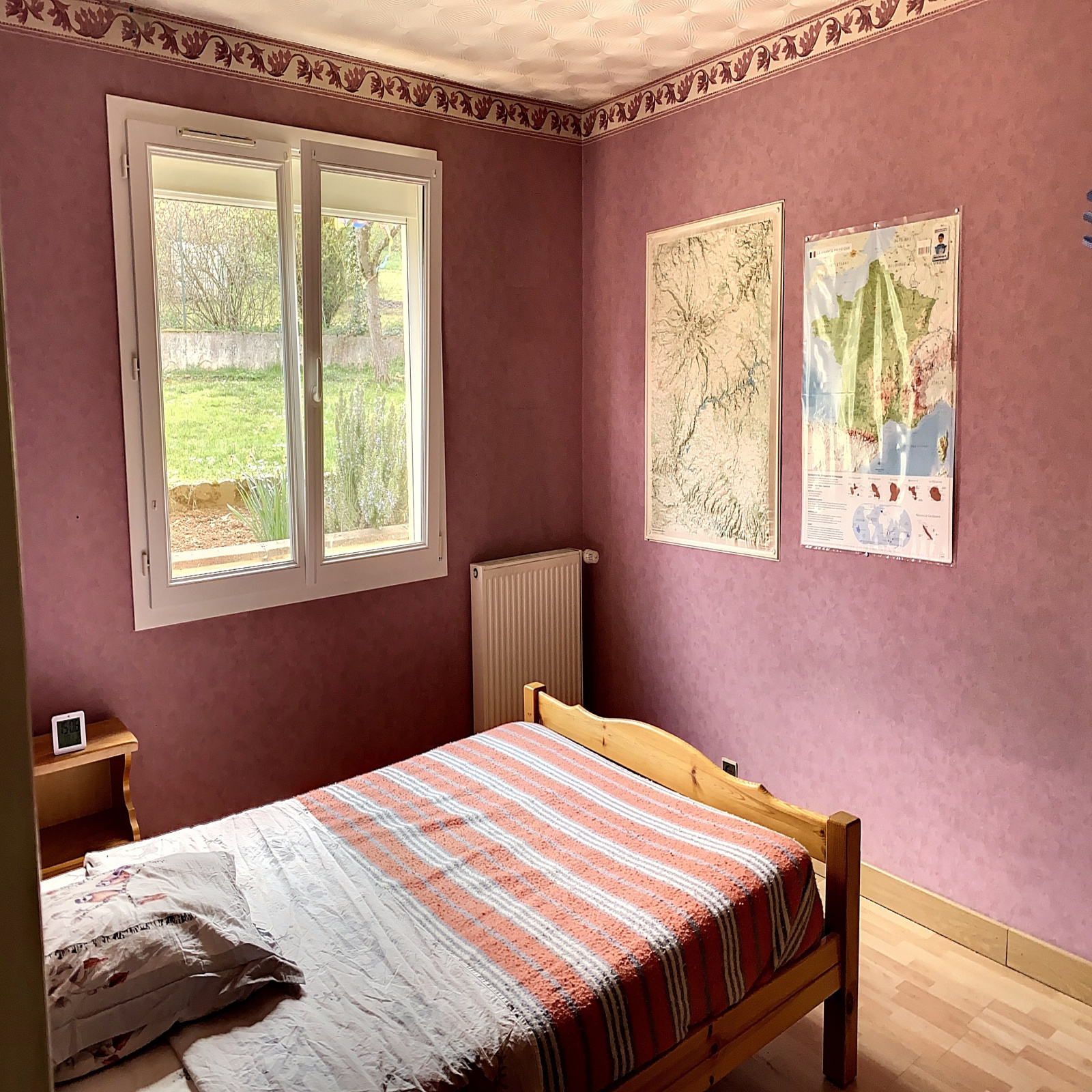 Une entrée, cuisine ouverte sur salon /salle à manger, 3 chambres spacieuses, bureau avec un grand placard donnant accès sur terrasse avec pergola et jardin, buanderie, garage/chaufferie, salle de bains, wc séparé.