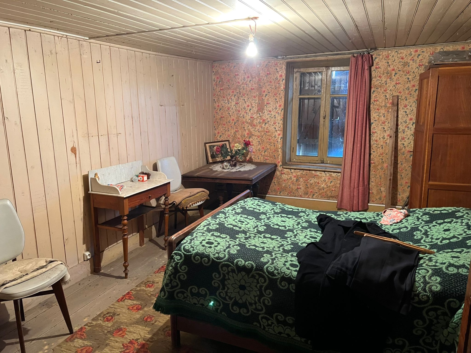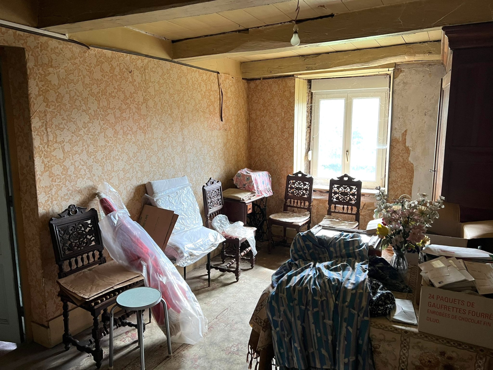 A l'étage : une chambre (20 m2 env).