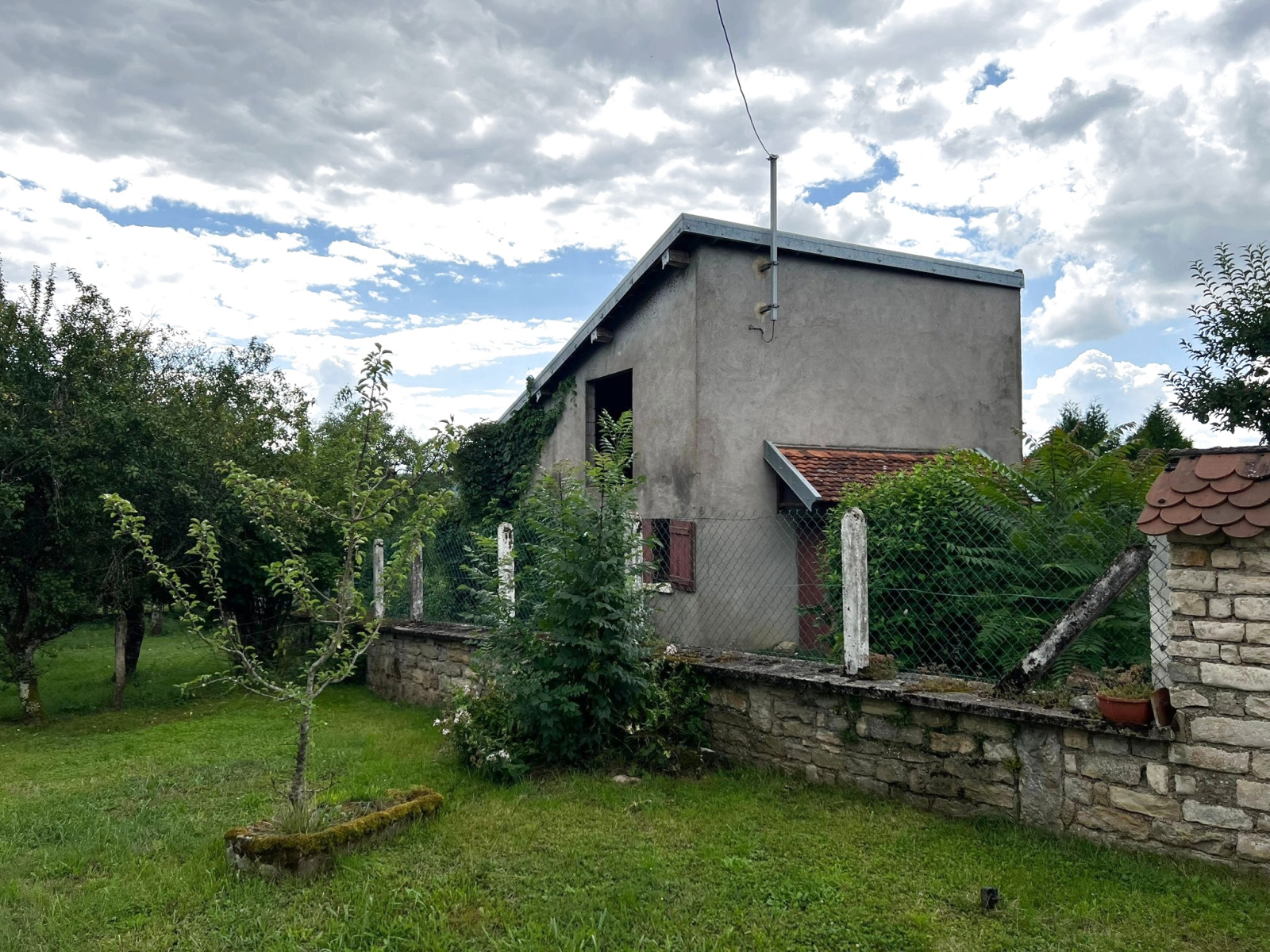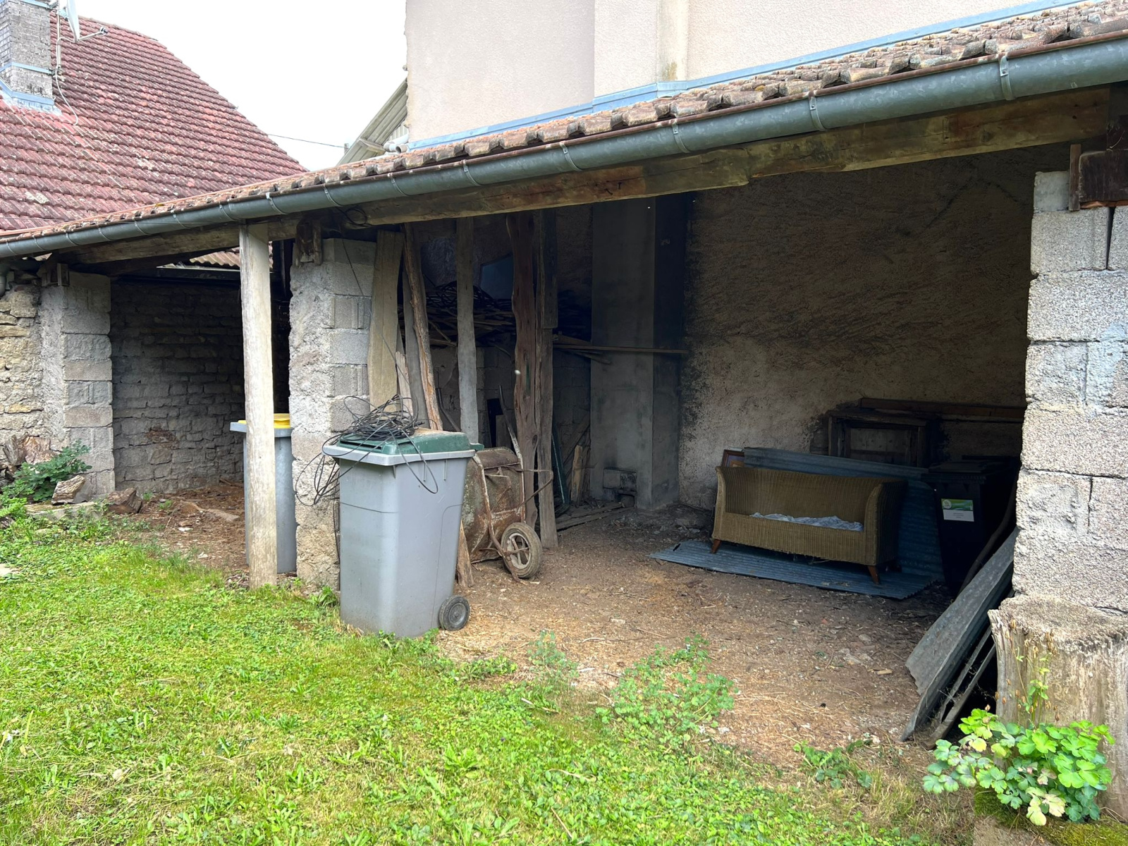Grange (70 m2 env), garage espace de stockage, appentis (30 m2 env), cave (40 m2 env).
