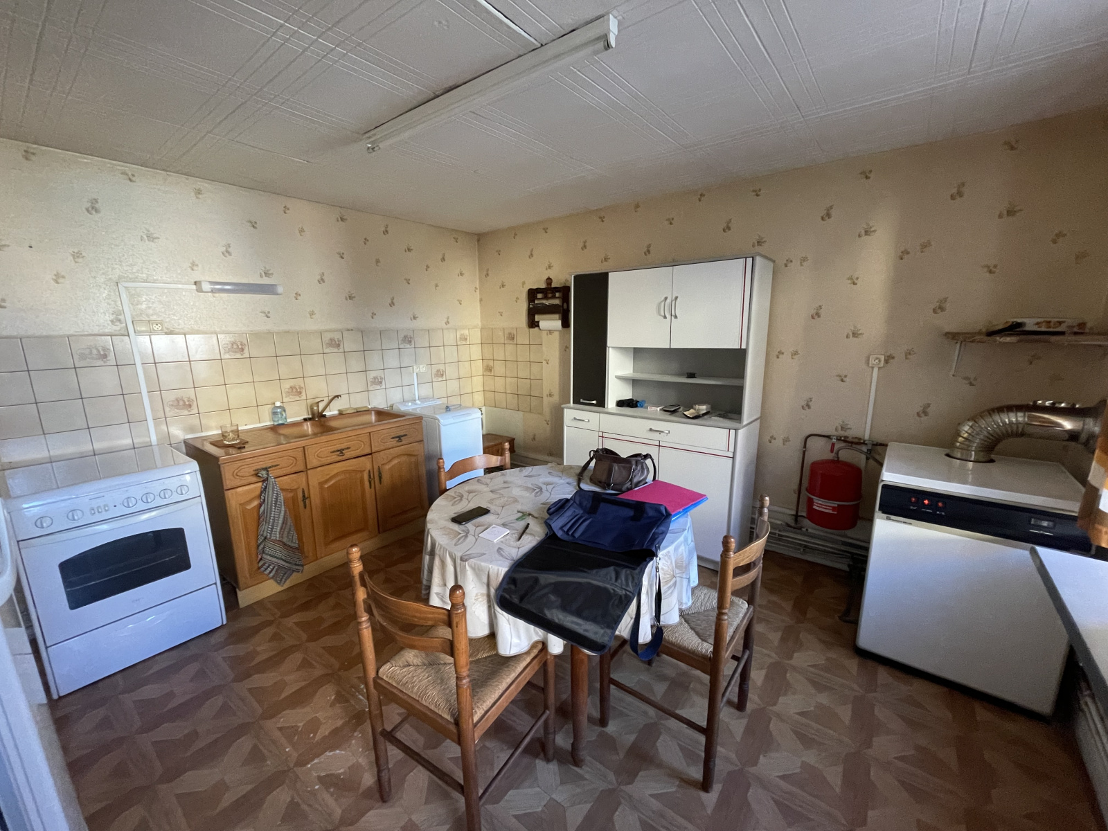 Aui rez-de-chaussée : entrée, séjour (20 m2 env), cuisine avec chaudière (14 m2 env), une chambre (17 m2 env), salle d'eau, wc.