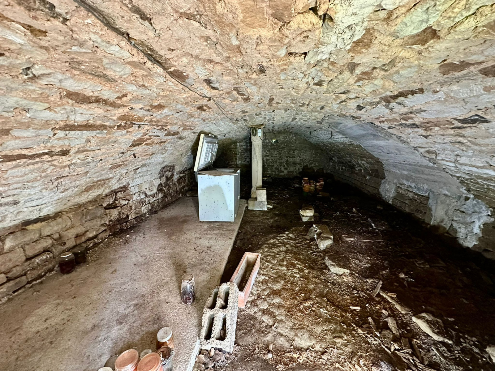 Une 2ème maison en pierre composée d'une cave voûtée, garage (32 m2 env), 45 m2 au sol avec une pierre à eau et une ancienne cheminée