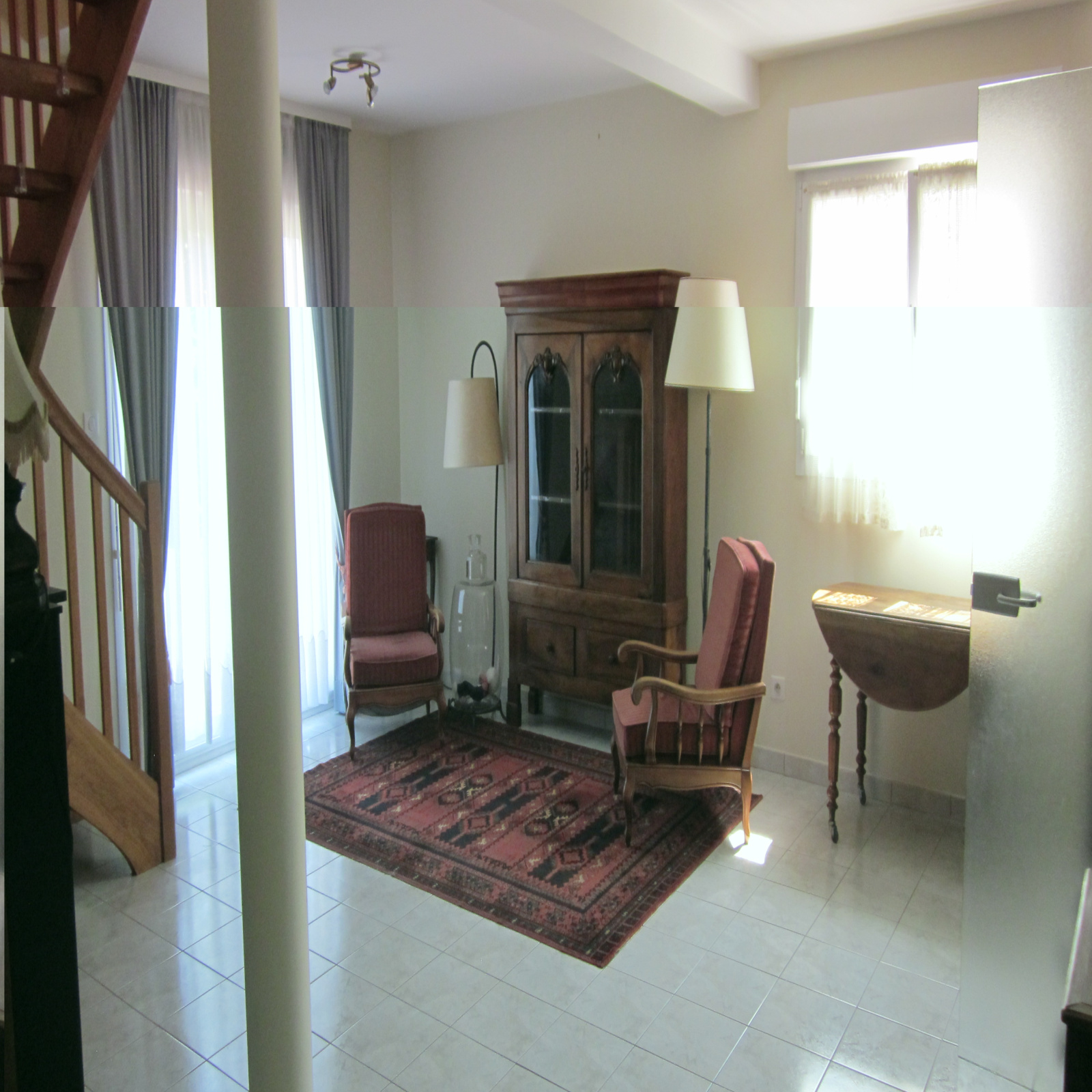 Au rez-de-chaussée : entrée avec placard, cuisine équipée, salle à manger / salon, salle d'eau, wc,.