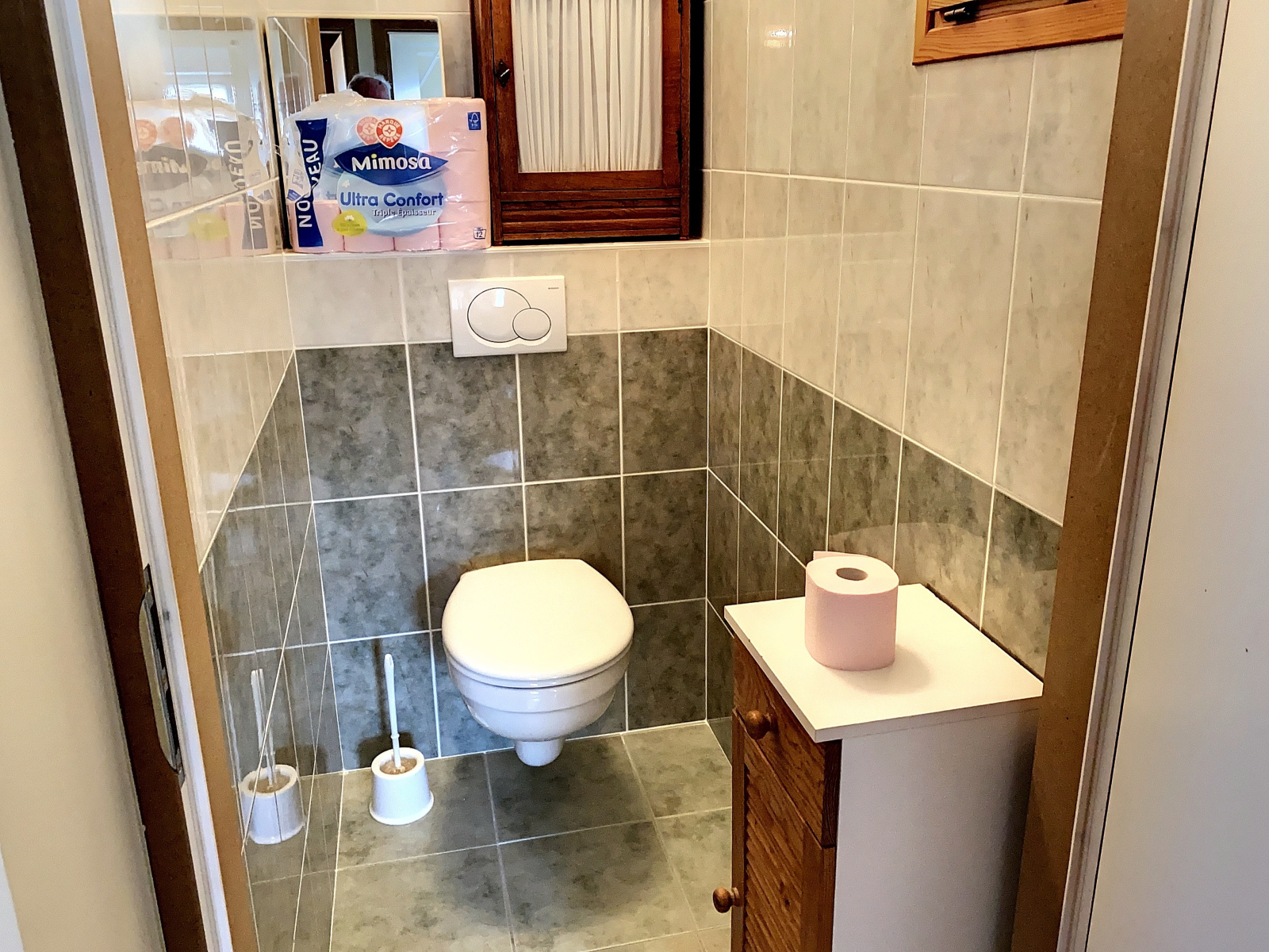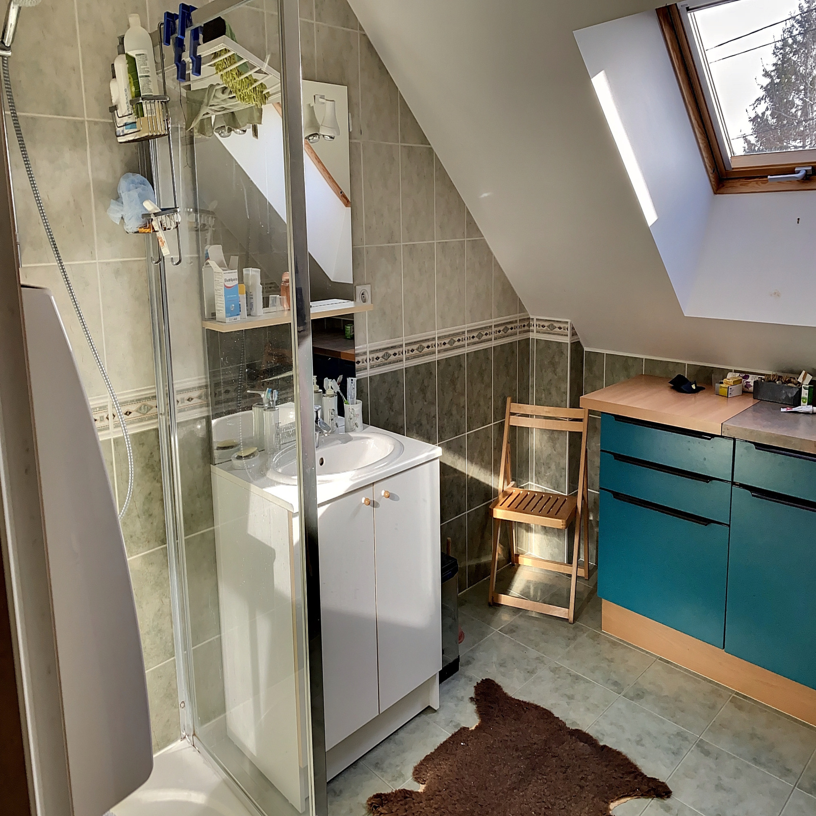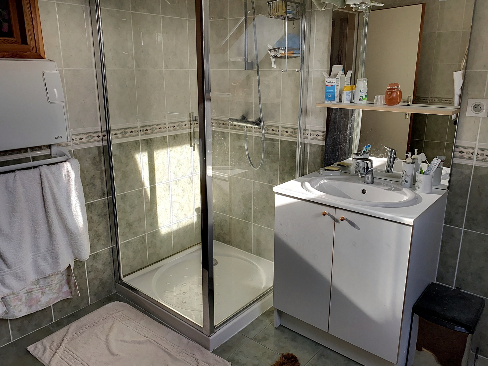 A l'étage : dégagement, 3 belles chambres, salle de bains avec wc.