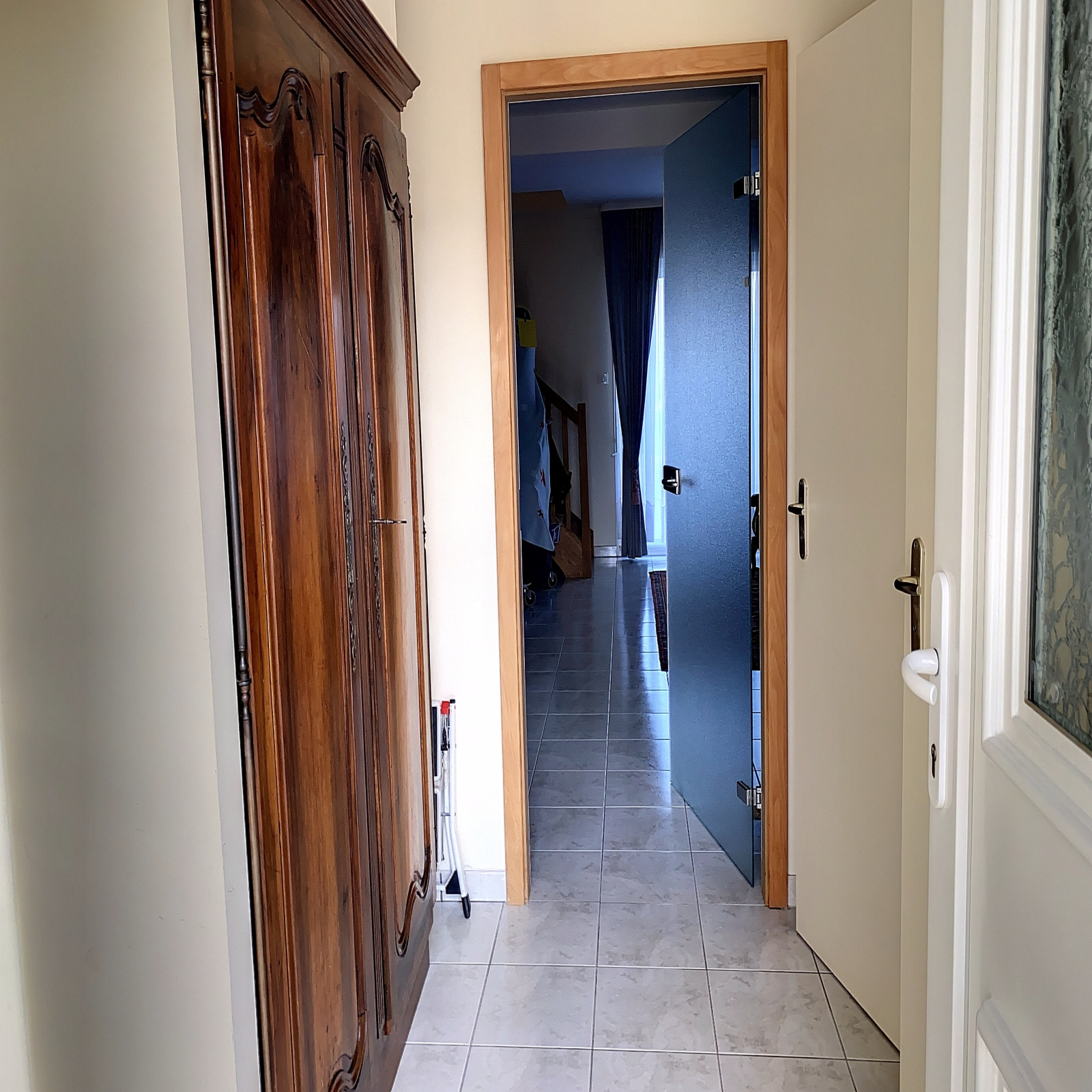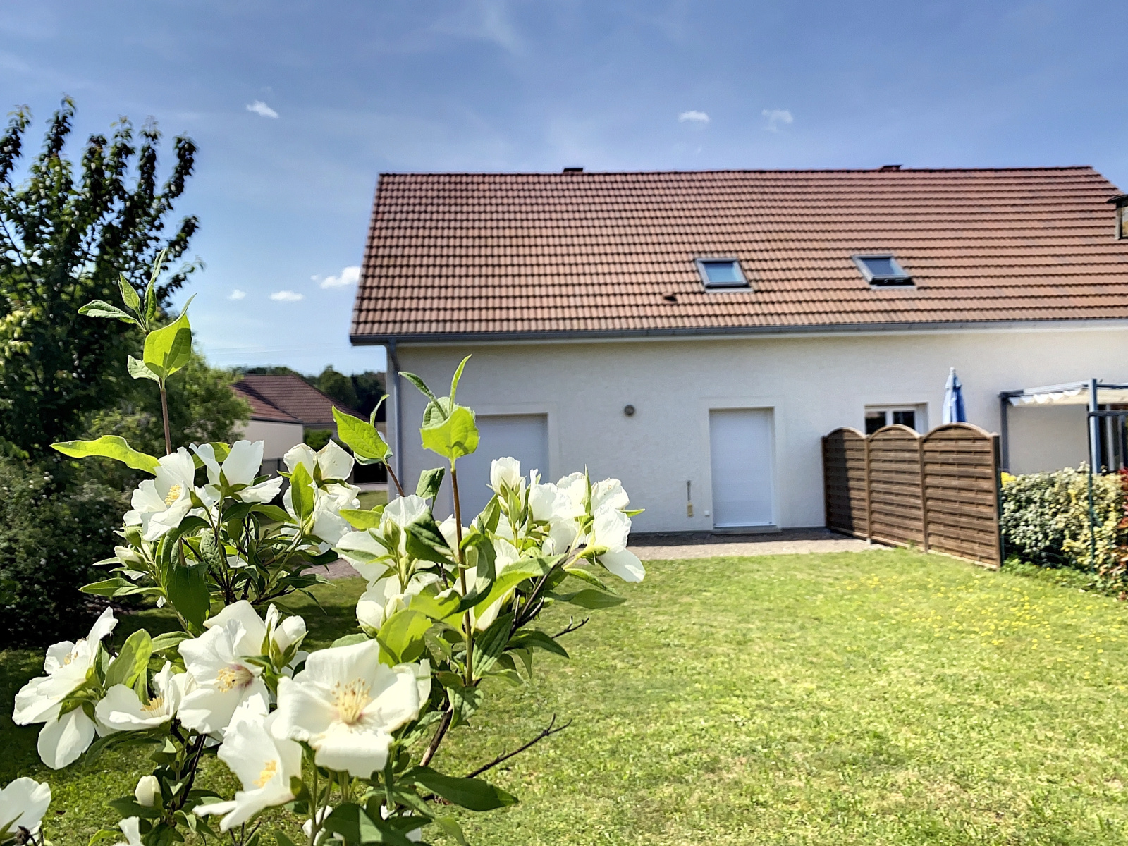 Nos agents Hélène Valette et Solène Boucard vous proposent de visiter ce joli pavillon de 2010, mitoyen par le garage, sur terrain clos et arboré de 4 a 59 ca comprenant :
