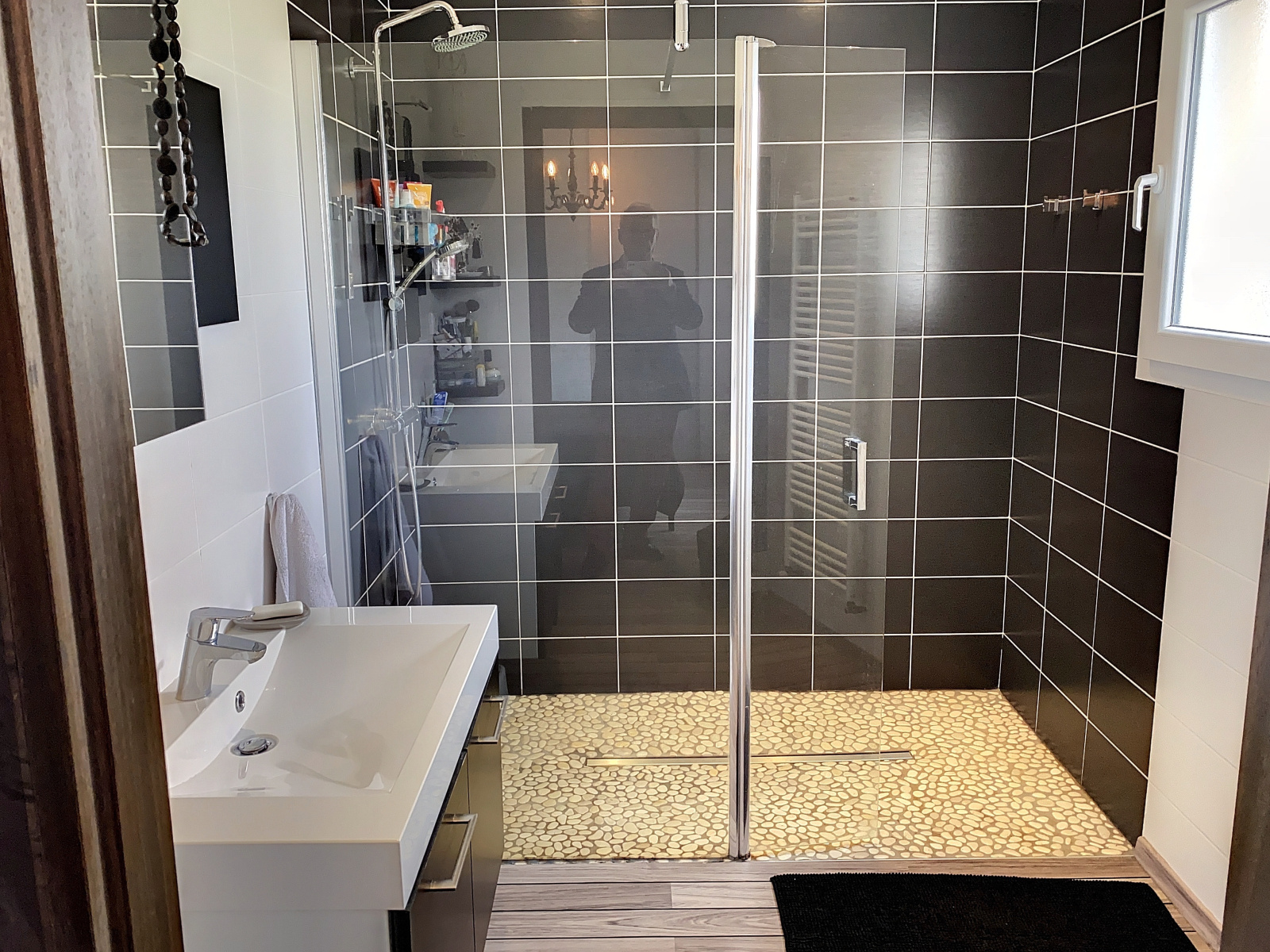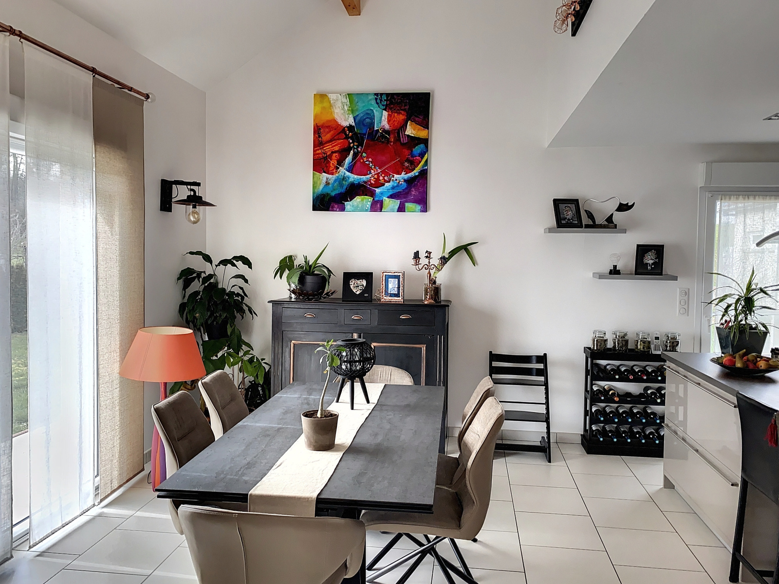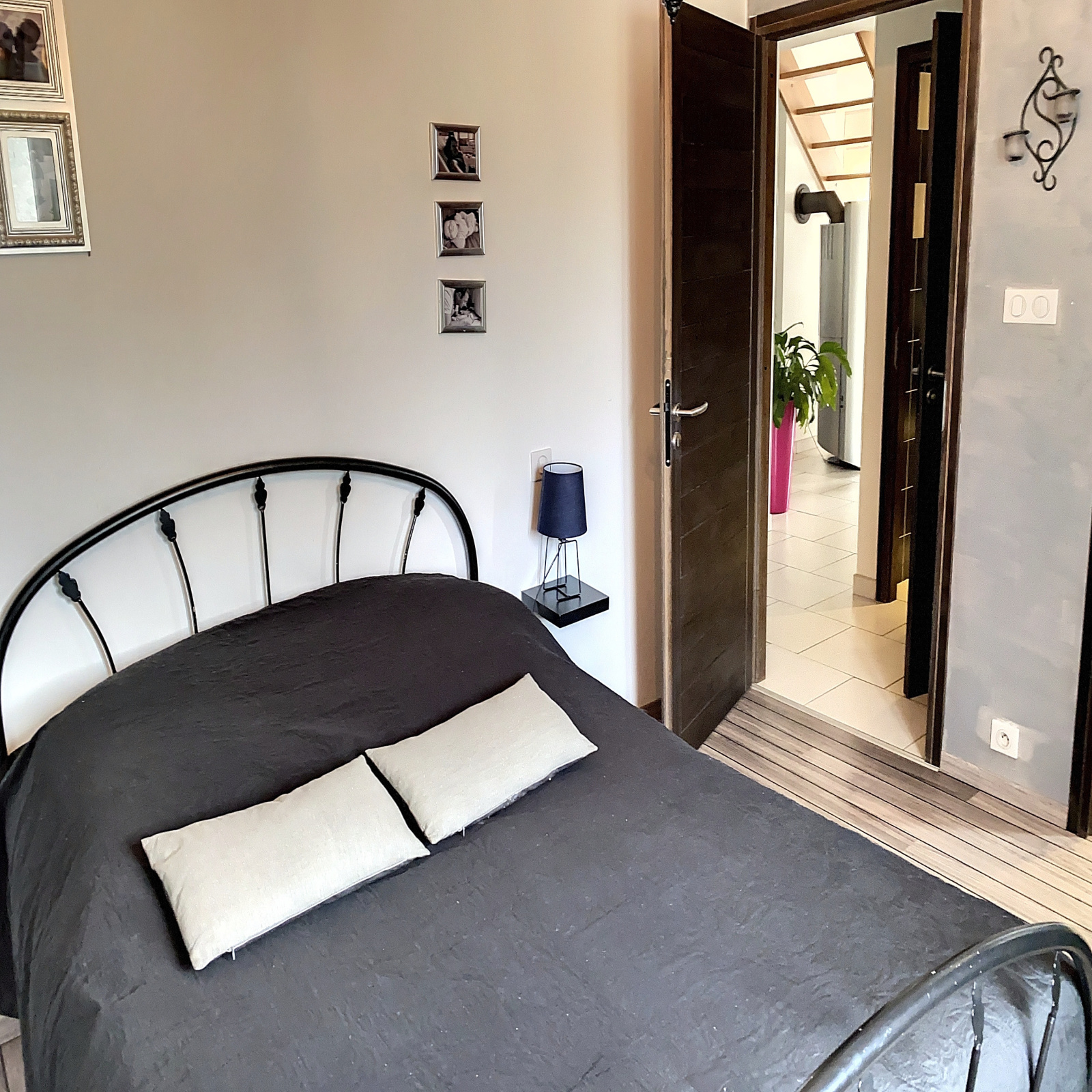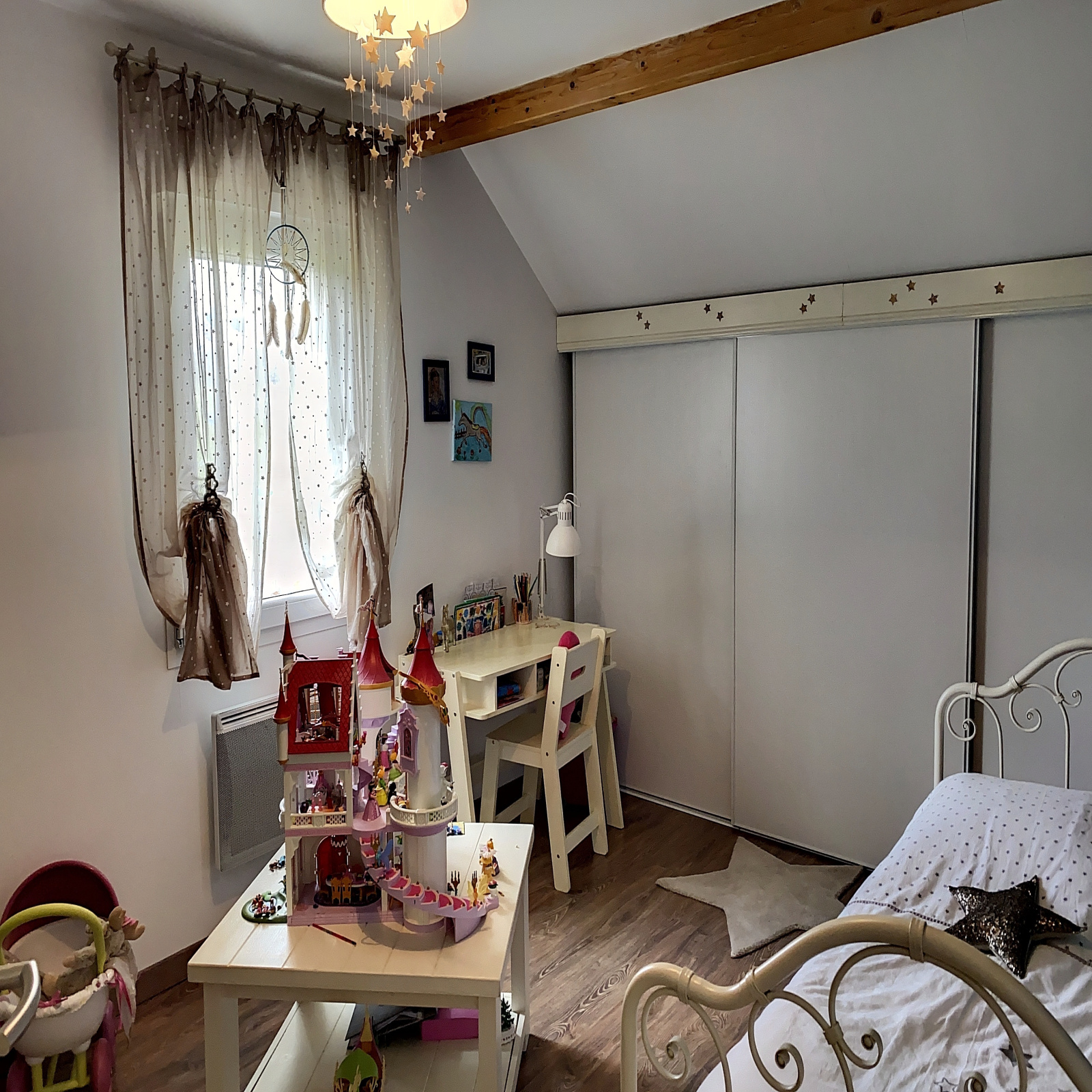 L'espace intérieur mesurant environ 130m² est composé d'une cuisine équipée ouverte sur salle à manger / salon, 3 chambres dont une au rez-de-chaussée (possibilité d'en créer facilement une 4ème). Le luxe pour une famille avec enfants, une salle de bains ainsi qu'une salle d'eau vous facilitera l'organisation de la toilette.
