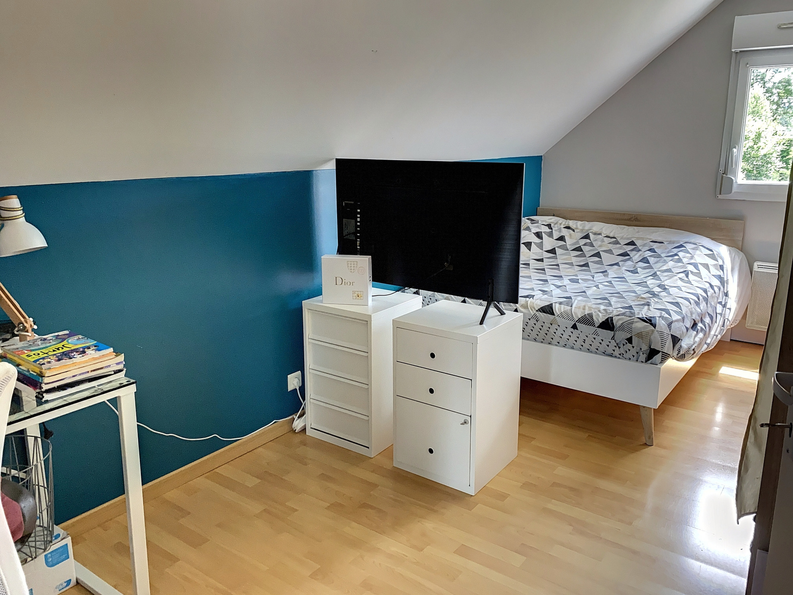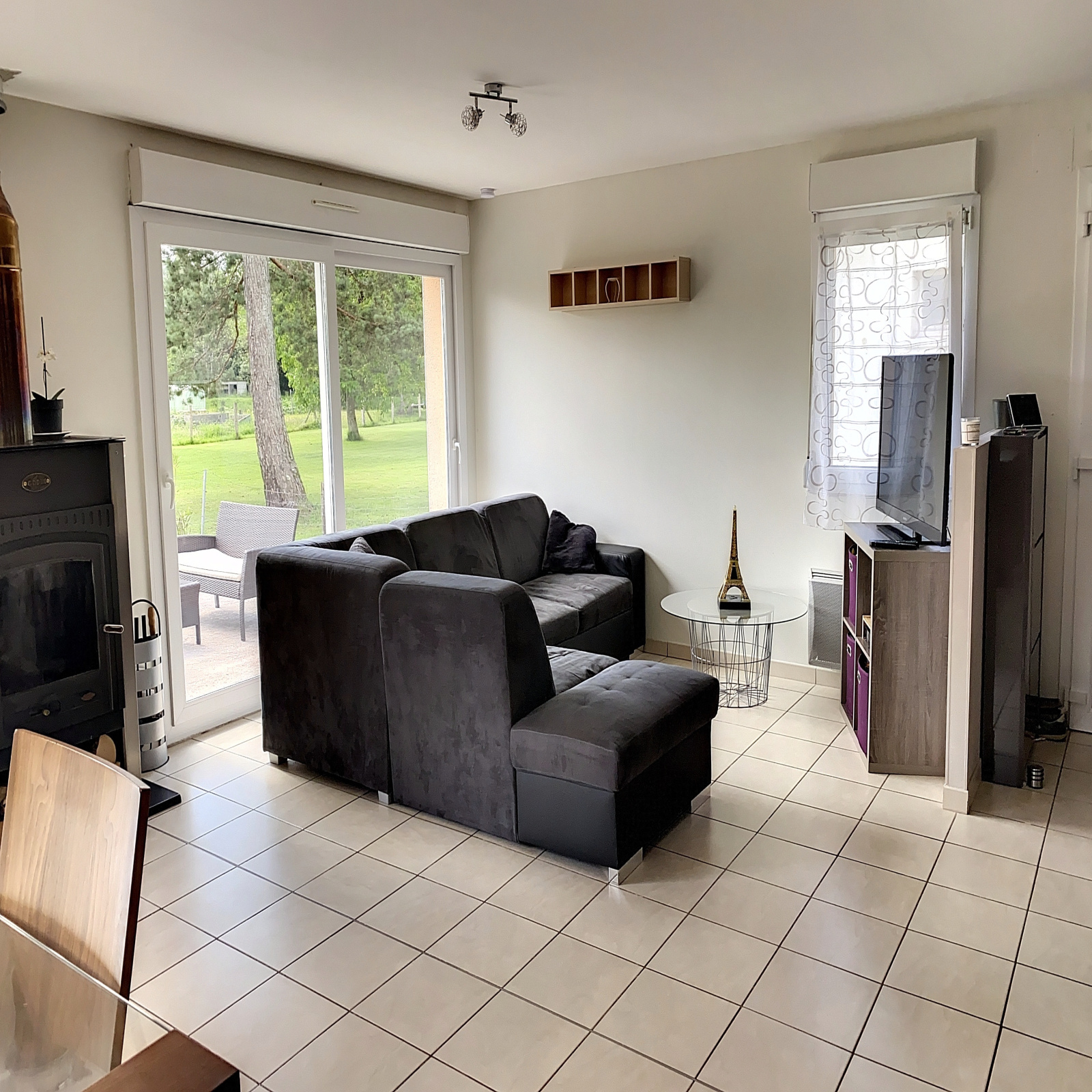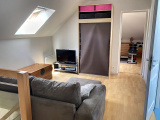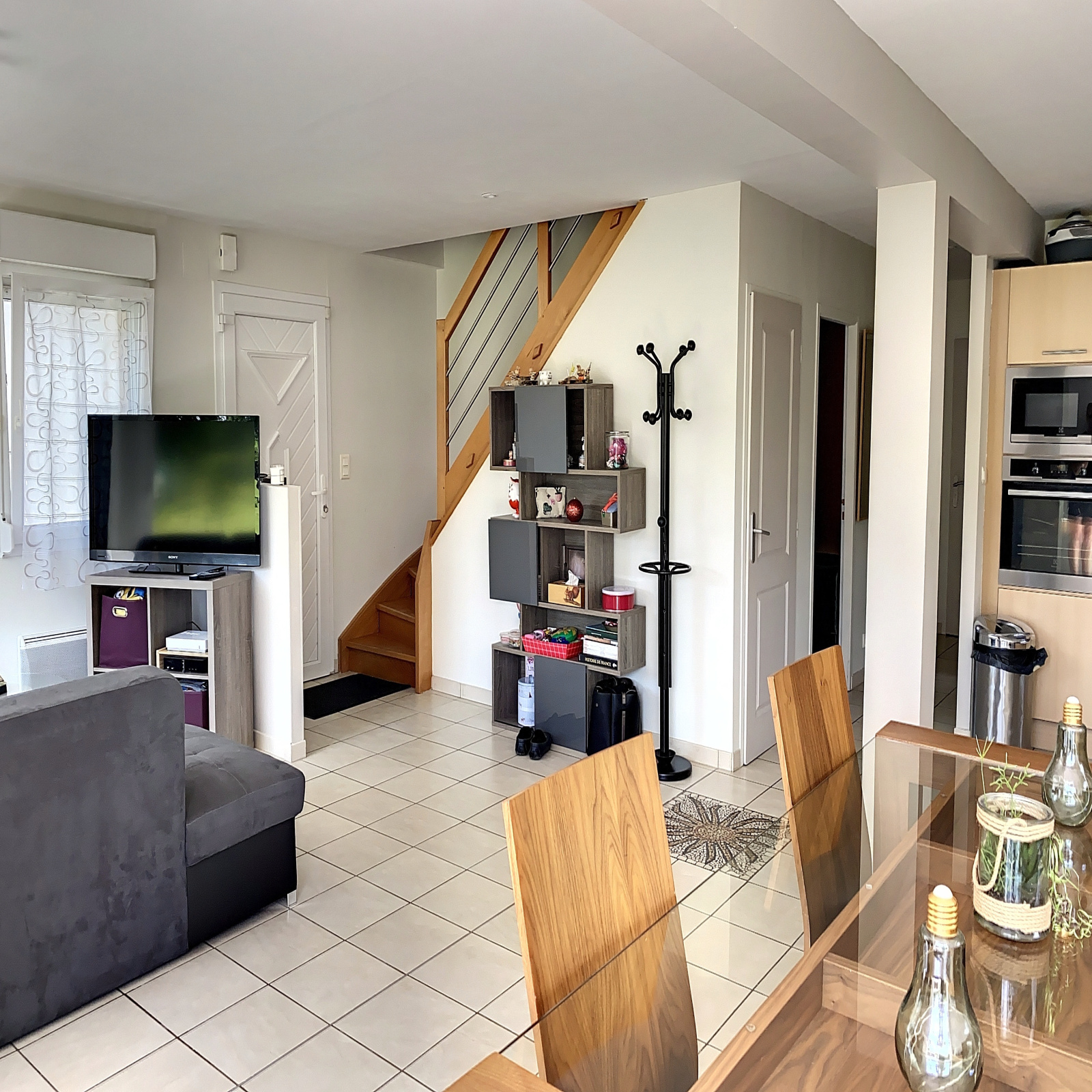 Au rez-de-chaussée : entrée sur salle à manger / salon ouverte sur cuisine équipée, une chambre, salle d'eau, wc.